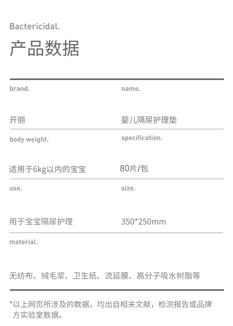 开丽(Kaili)婴儿一次性隔尿垫80片25*35cm透气防水尿垫婴儿护理垫