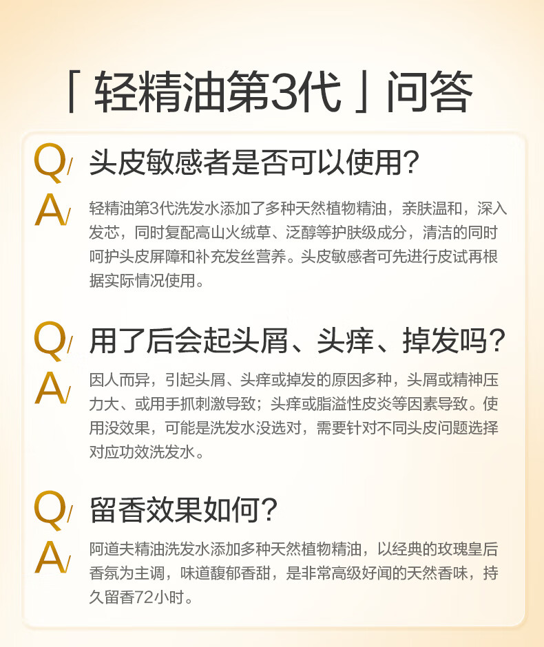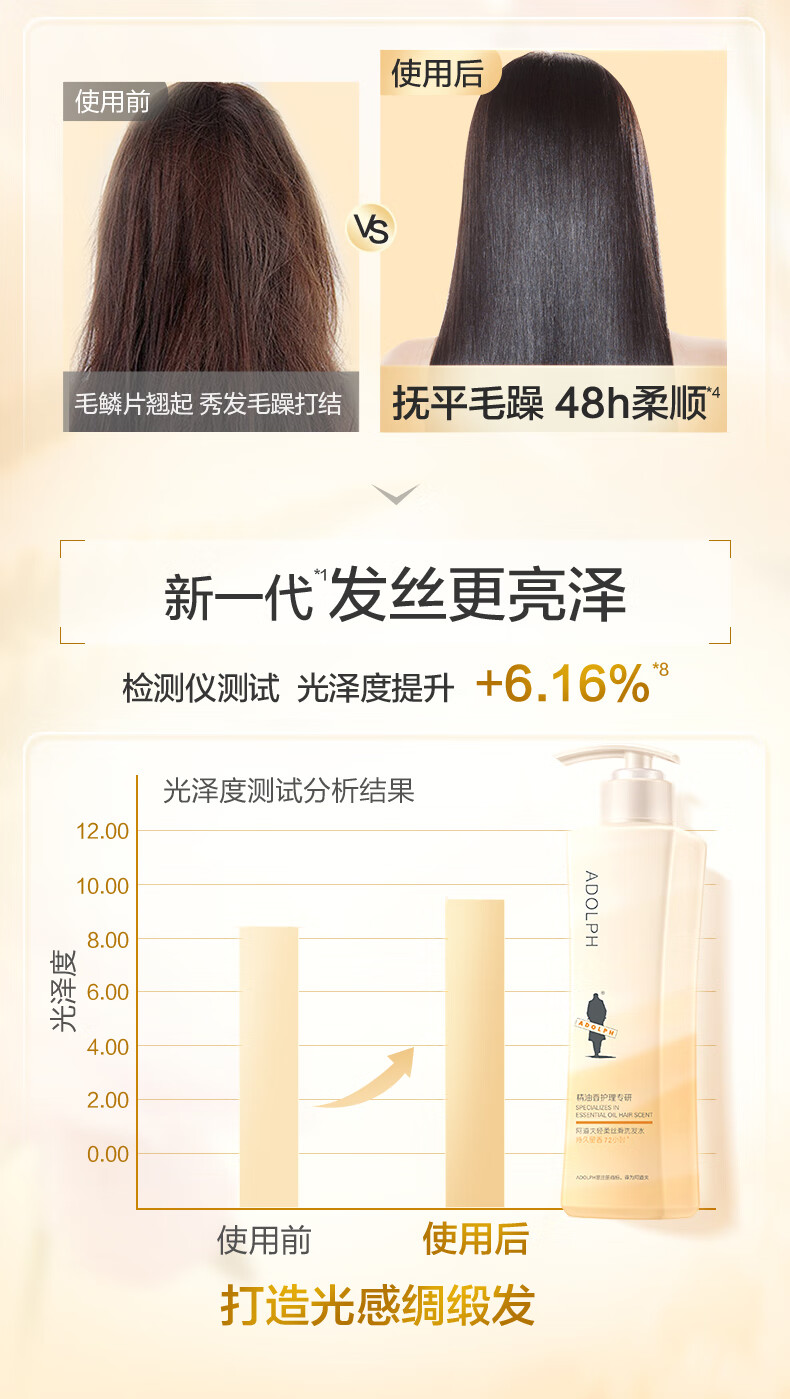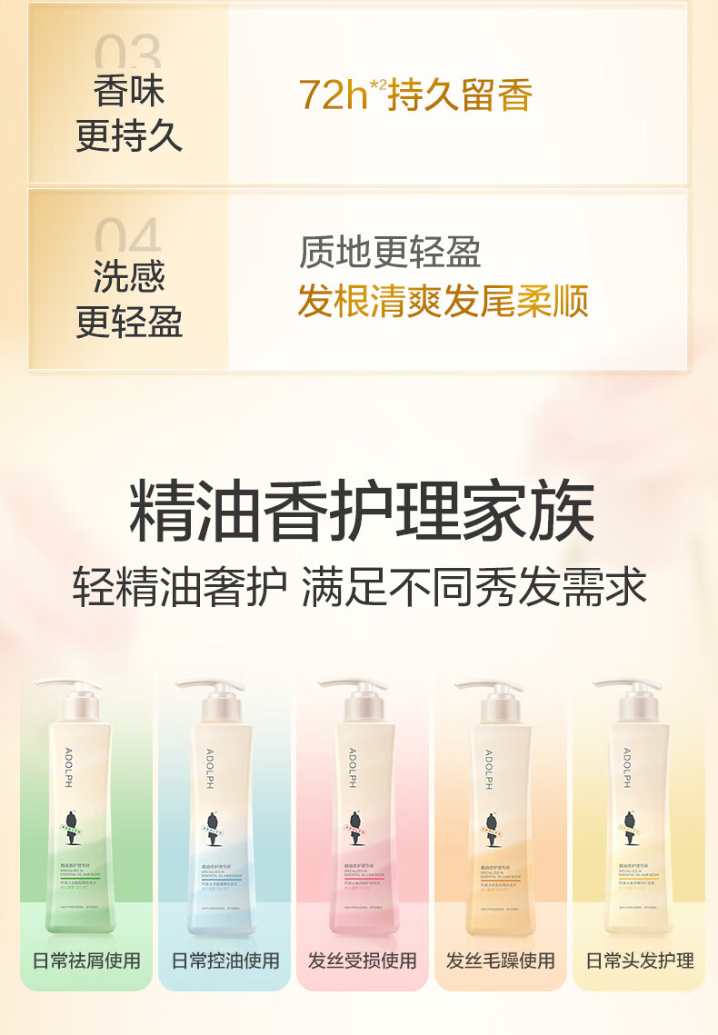 阿道夫轻柔丝滑洗发水420ml 抚顺毛躁 精油香氛洗发露热门商品