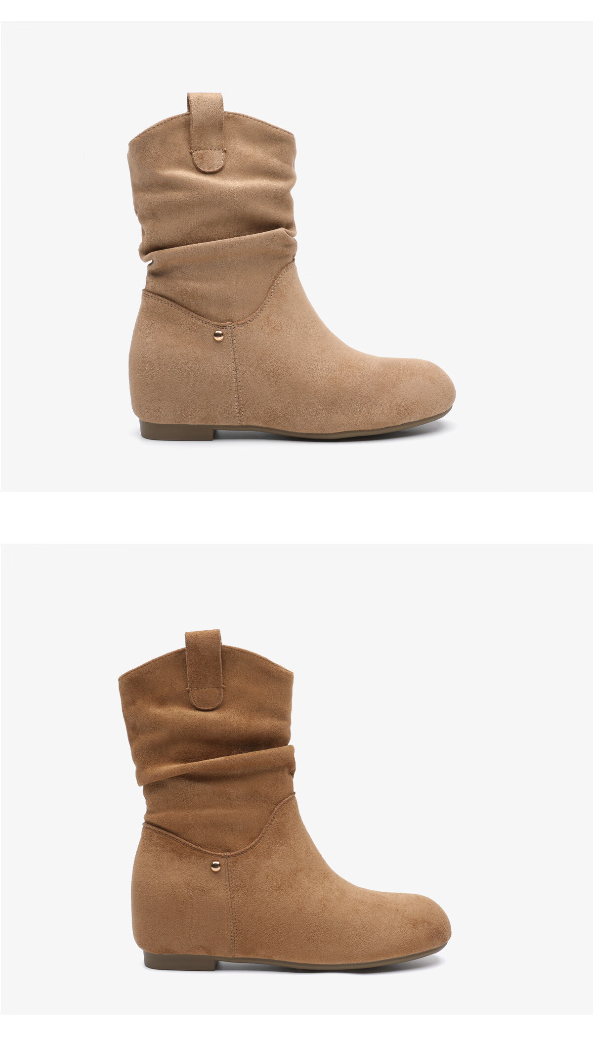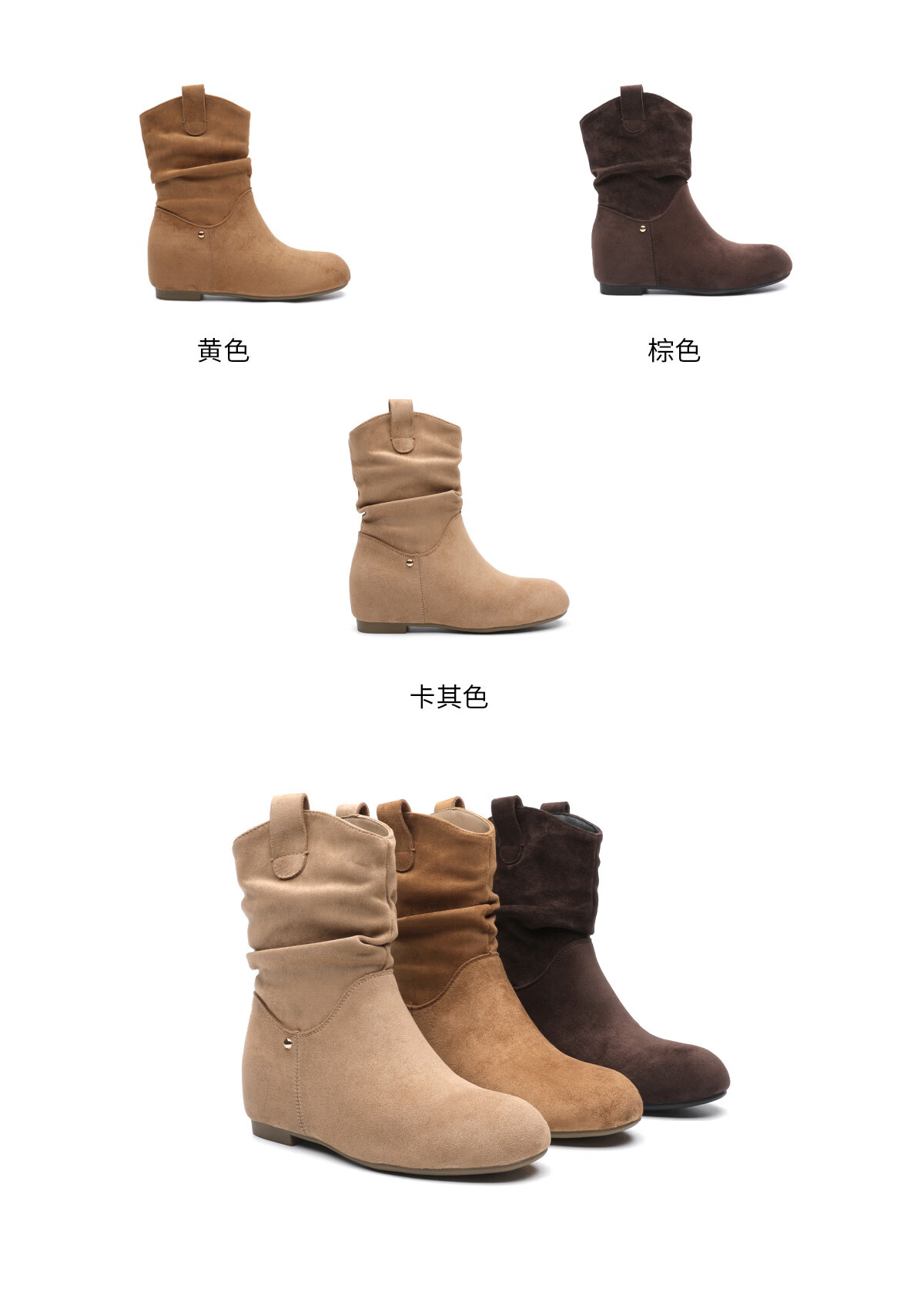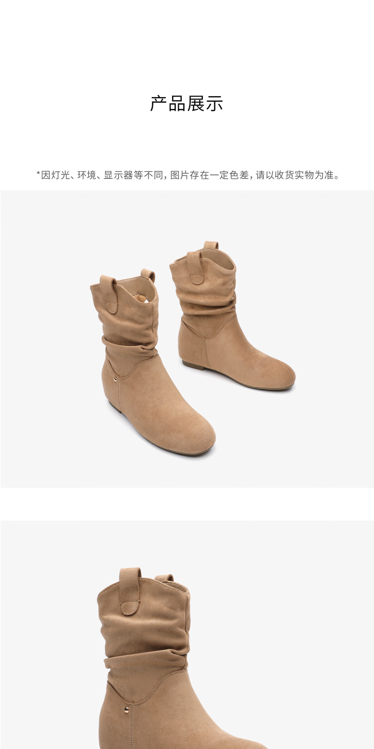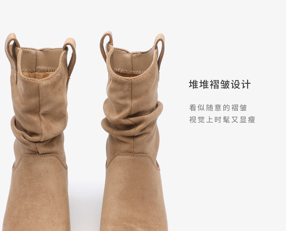 月芽儿2025冬季新款靴子女中筒靴绒里时装靴堆堆靴通勤西部牛仔靴 绒里棕色03T 34