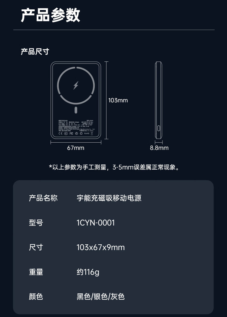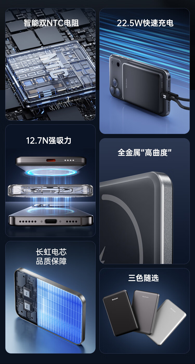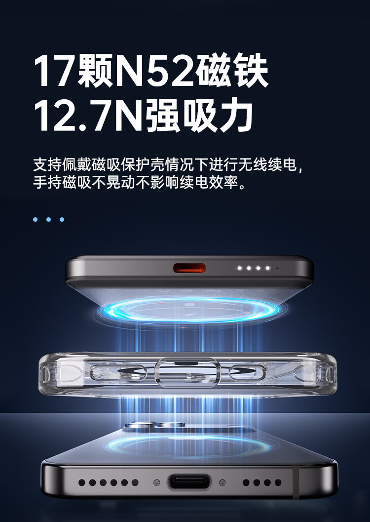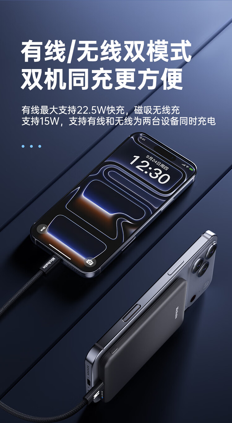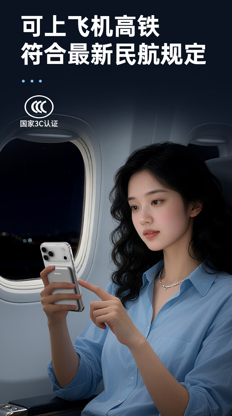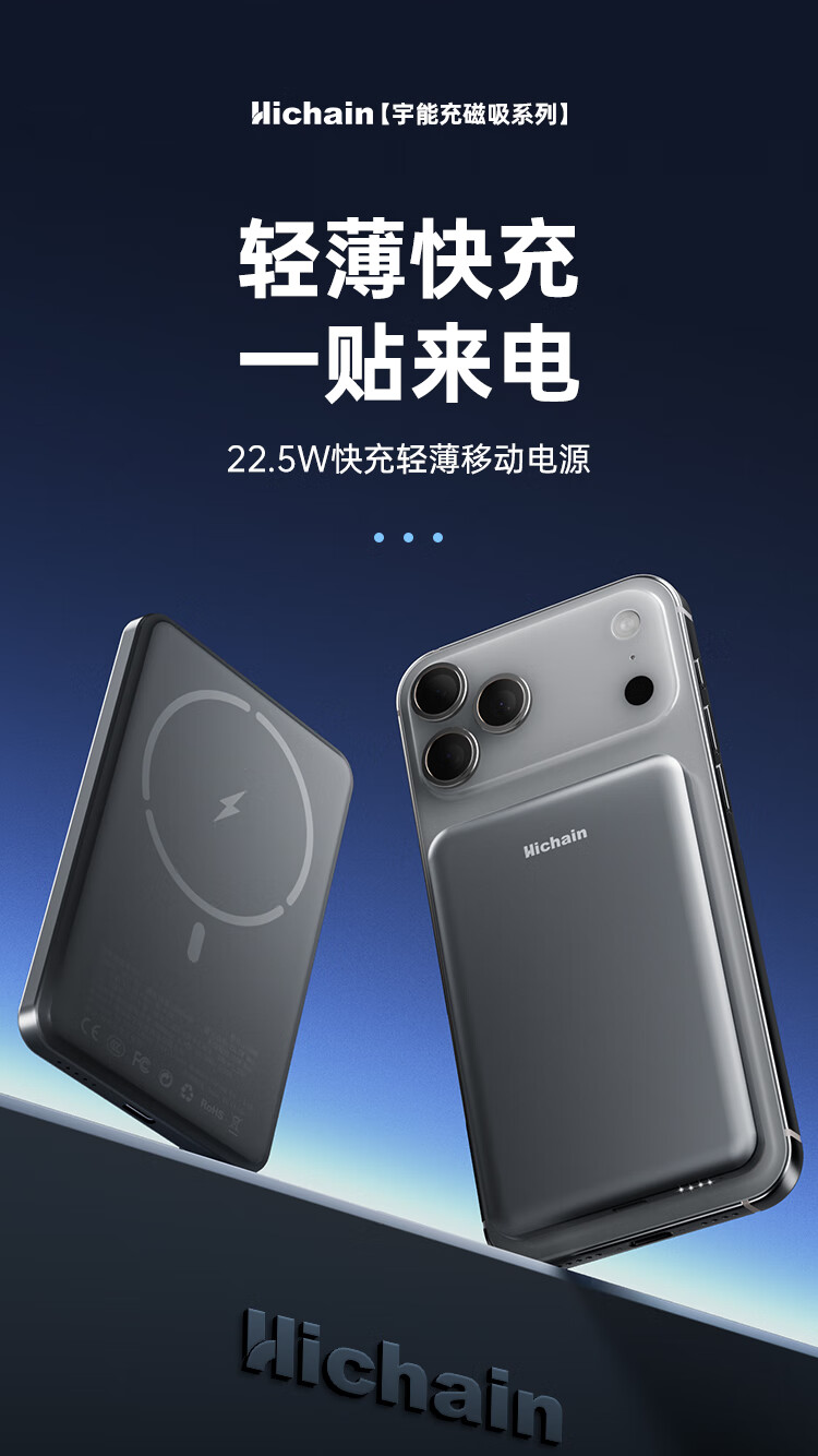 Hichain和昌3C认证苹果充电宝22.5W快充磁吸无线Magsafe5000mAh移动电源可上飞机适用iPhone17/16华为小米