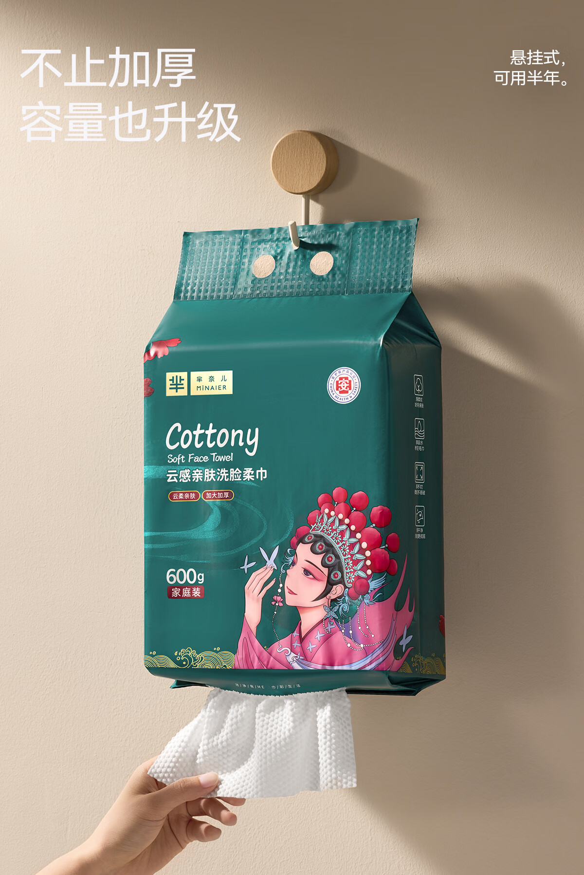 芈奈儿一次性洗脸巾毛巾干湿两用擦脸绵柔巾洁面巾悬挂式约160抽*4提