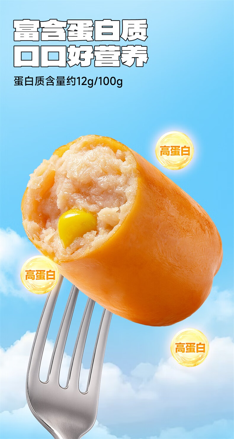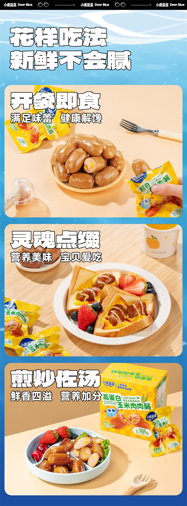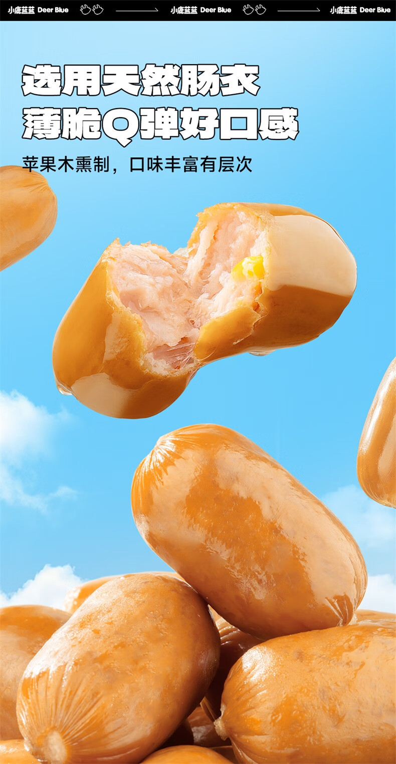 小鹿蓝蓝高蛋白玉米肉肉肠香肠露营出游小吃脆皮肠宝宝儿童零食即食240g