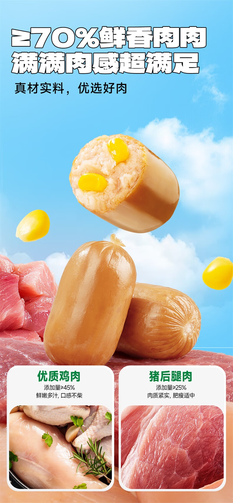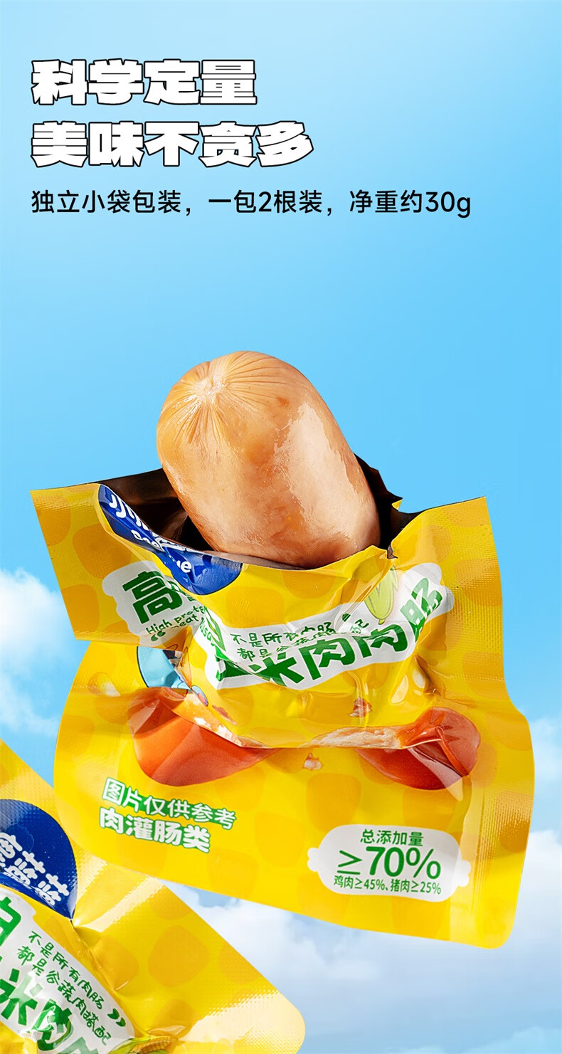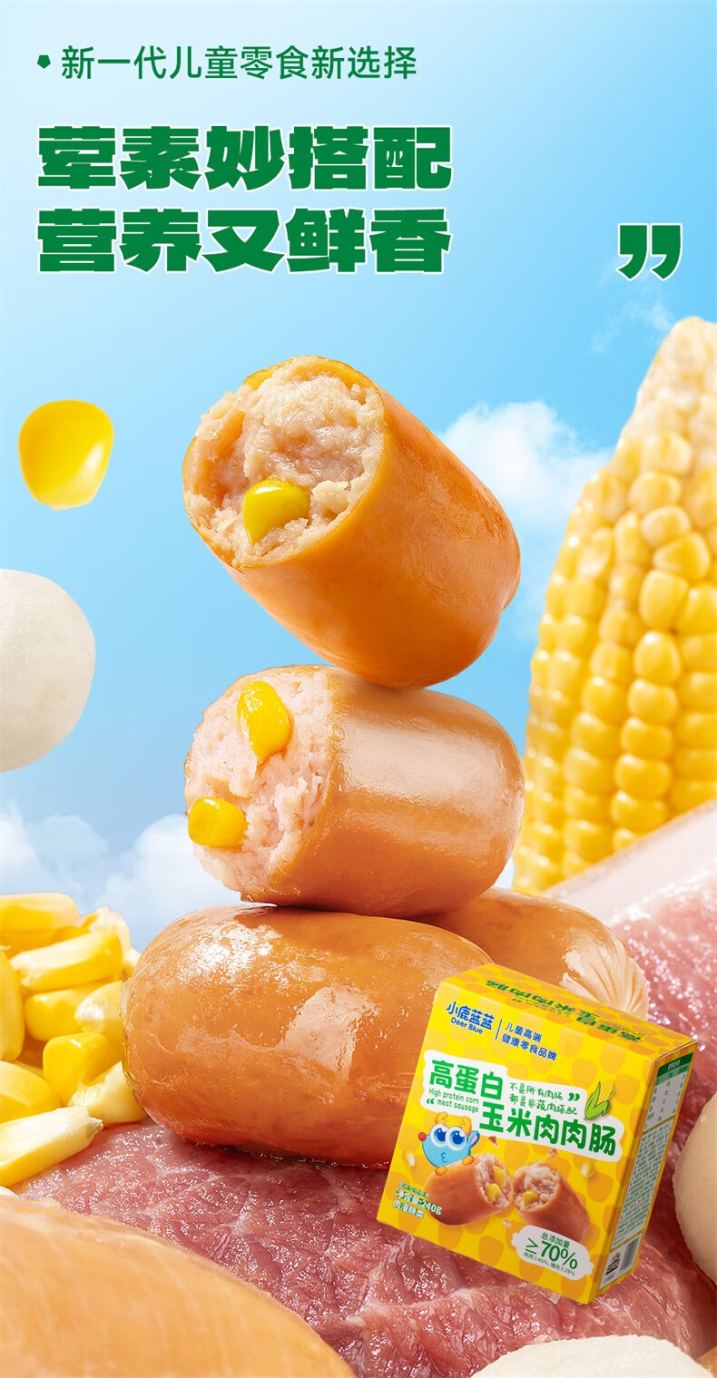 小鹿蓝蓝高蛋白玉米肉肉肠香肠露营出游小吃脆皮肠宝宝儿童零食即食240g
