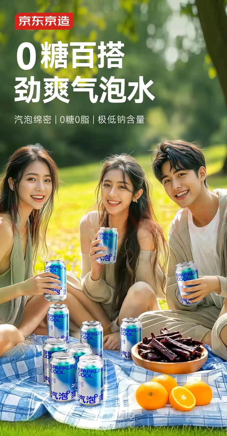 京东京造苏打水气泡水饮料330ml*24罐0糖0脂0卡原味整箱更优惠