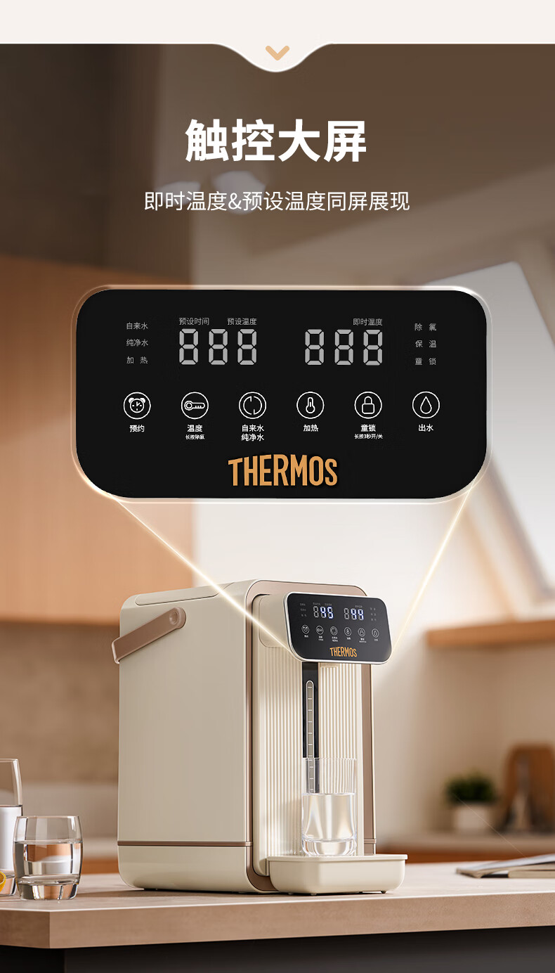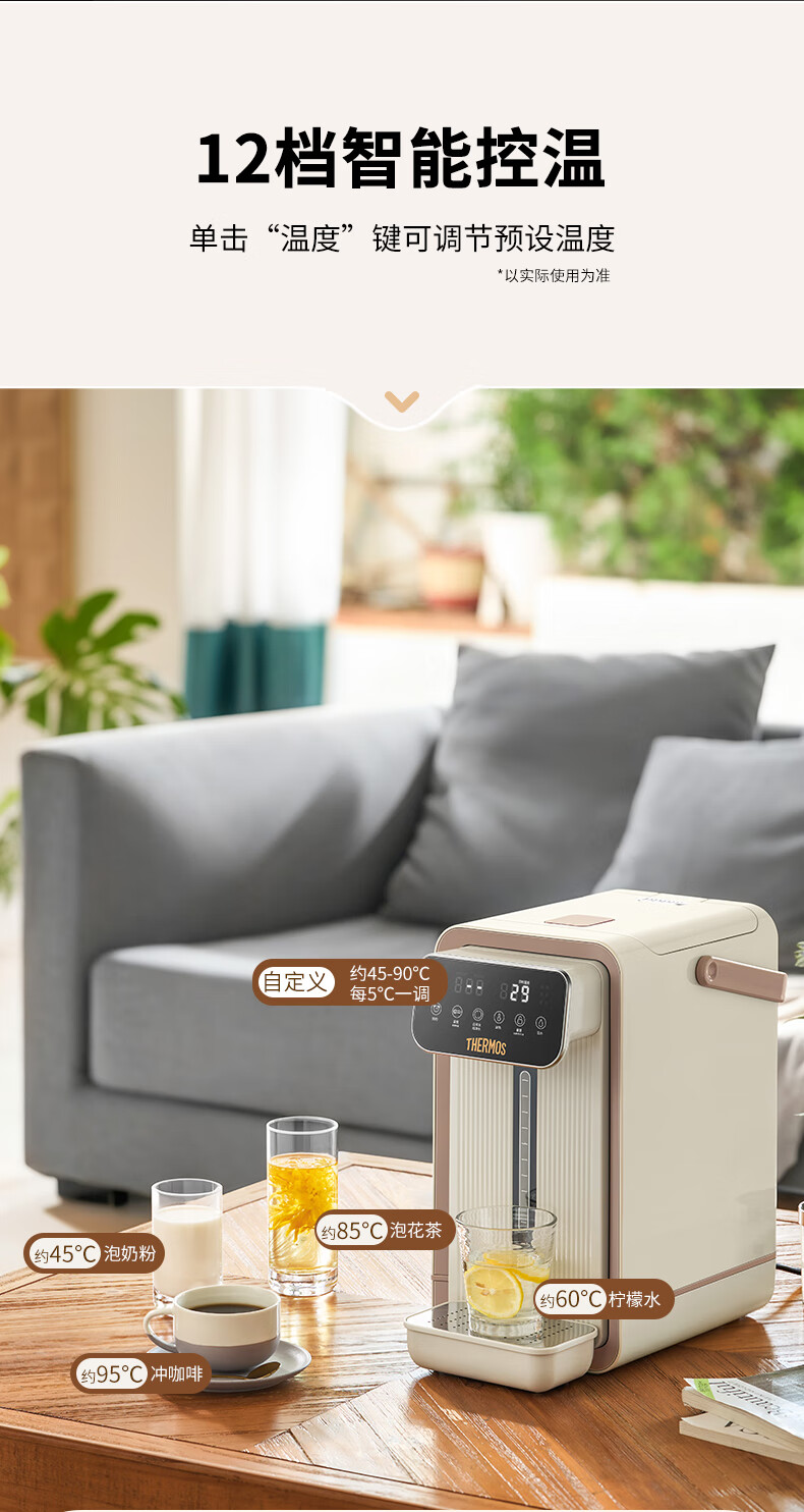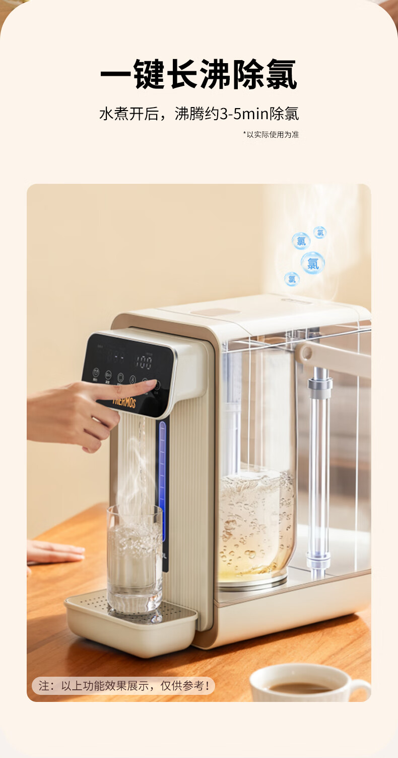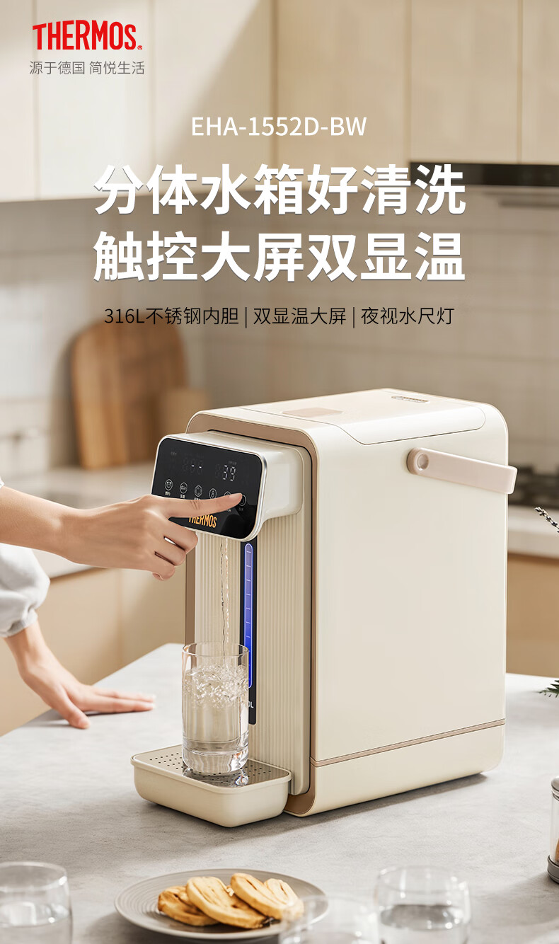 膳魔师(THERMOS)家用电热开水瓶饮水机不锈钢内胆沸腾除氯调温保温 智能可预约电热水壶大容量烧水壶 EHA-1552D-BW