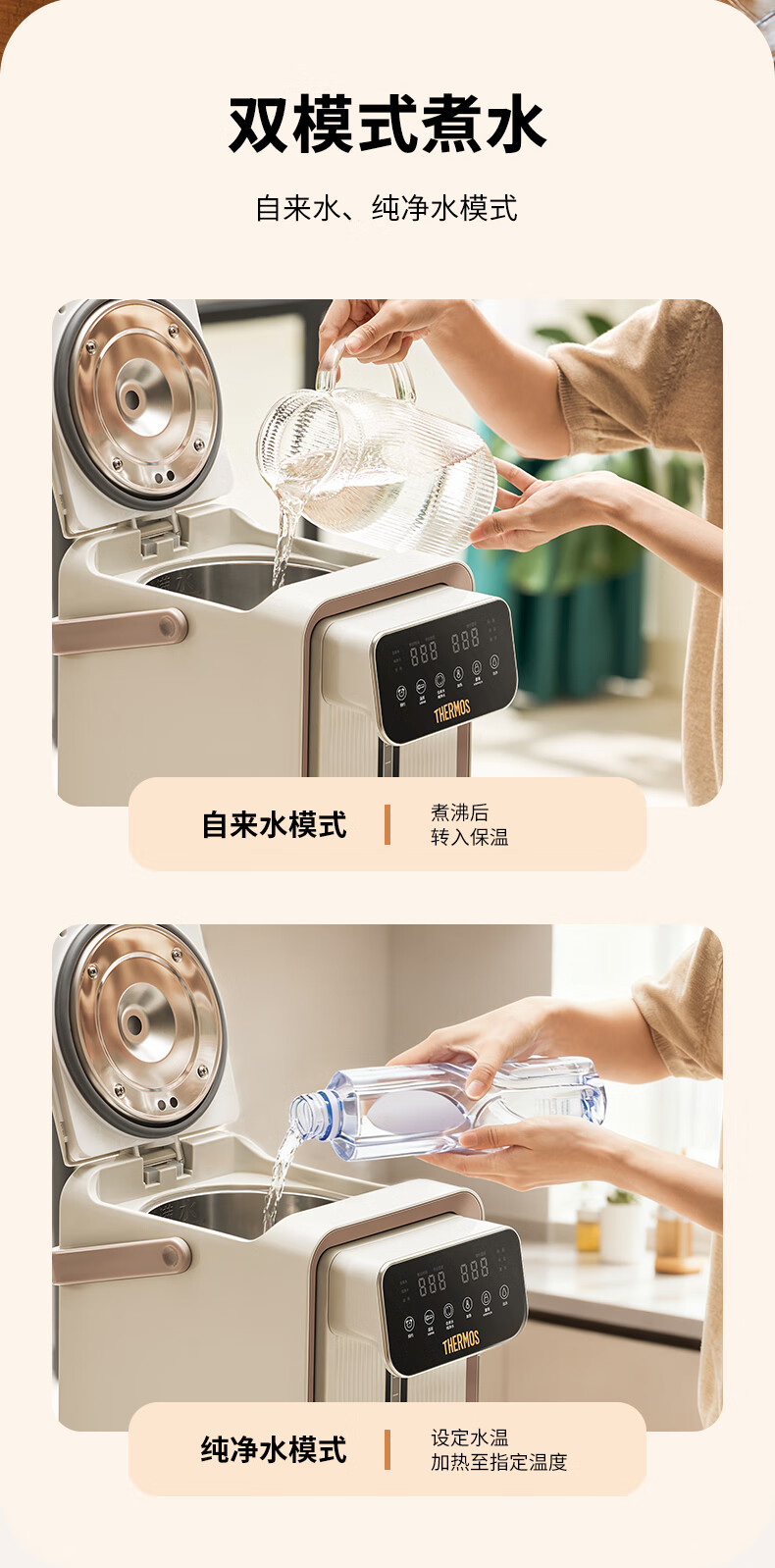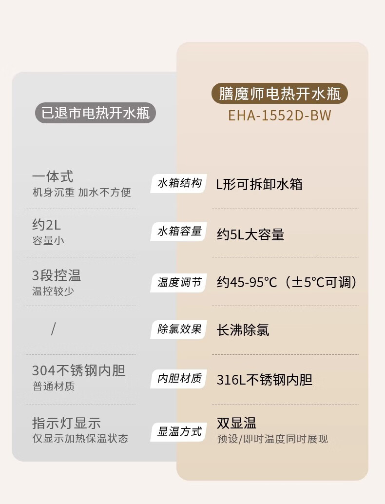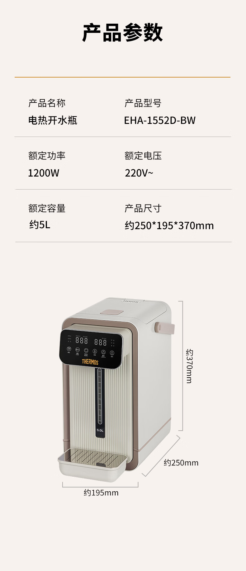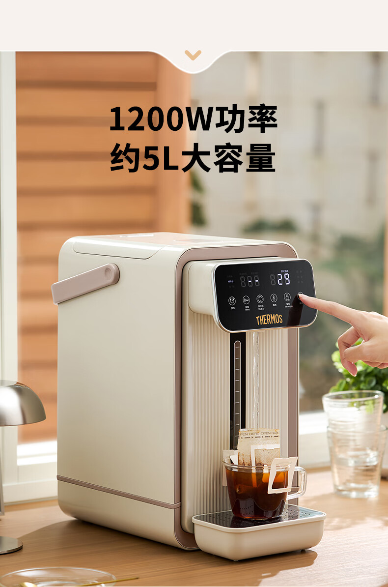 膳魔师(THERMOS)家用电热开水瓶饮水机不锈钢内胆沸腾除氯调温保温 智能可预约电热水壶大容量烧水壶 EHA-1552D-BW