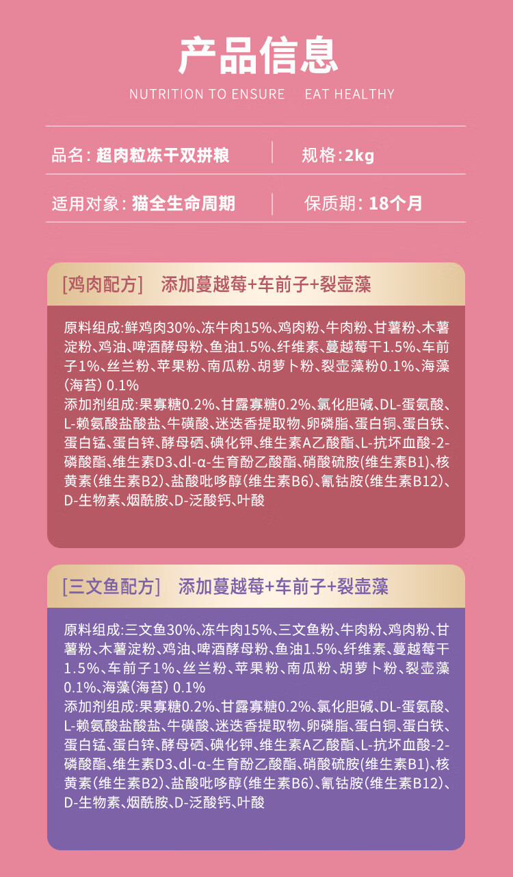 麦富迪猫粮 超肉粒无谷冻干粮高蛋白成幼猫粮低敏益肠 鸡肉2kg