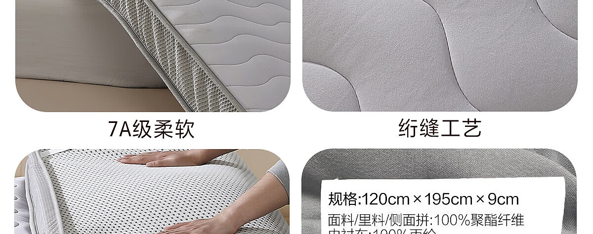 百丽丝出品床垫柔软面料茶茶抗菌乳胶复合床垫透气支撑回弹床垫 茶茶抗菌乳胶复合床垫(中款) 90cm×195cm