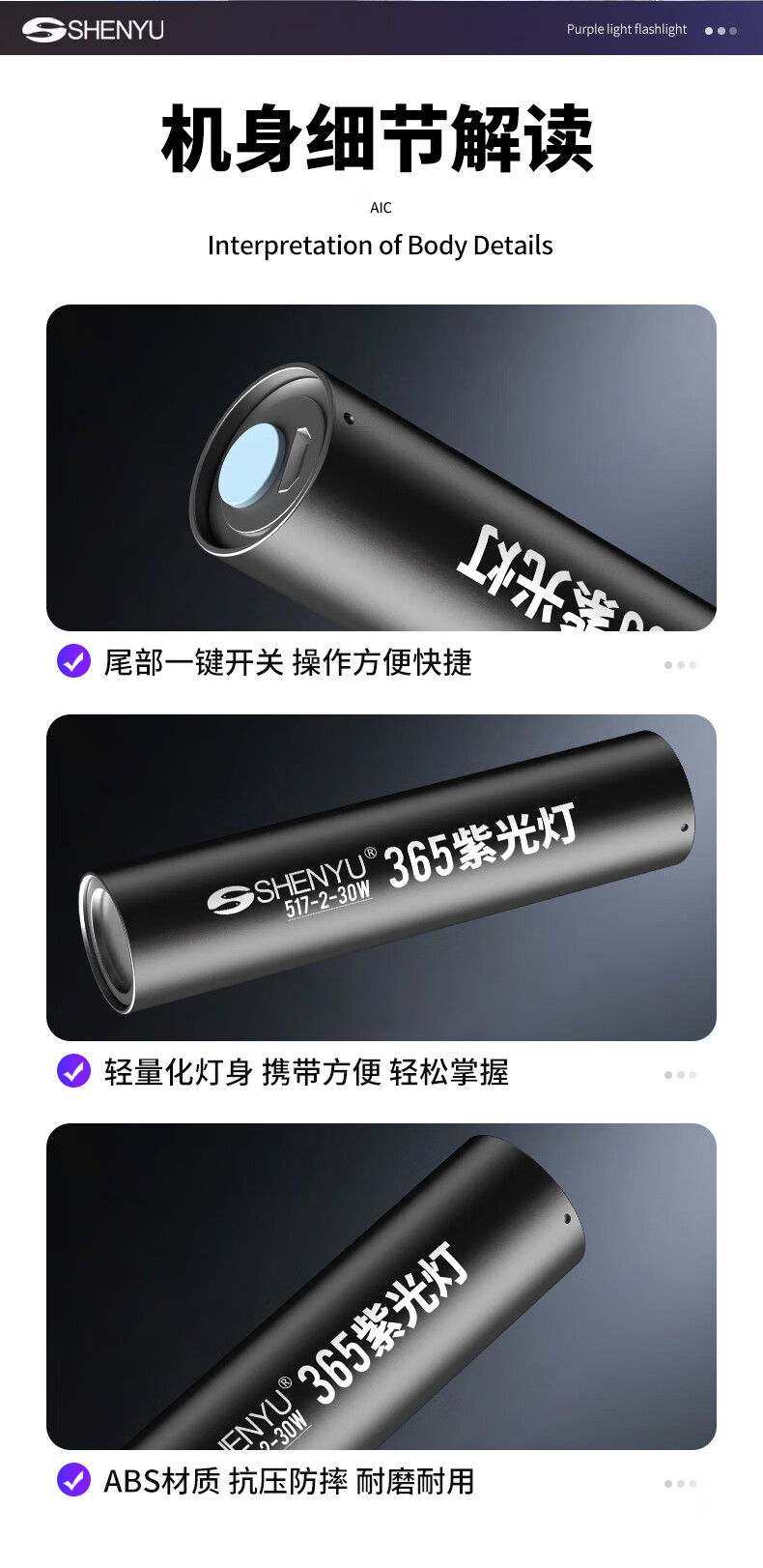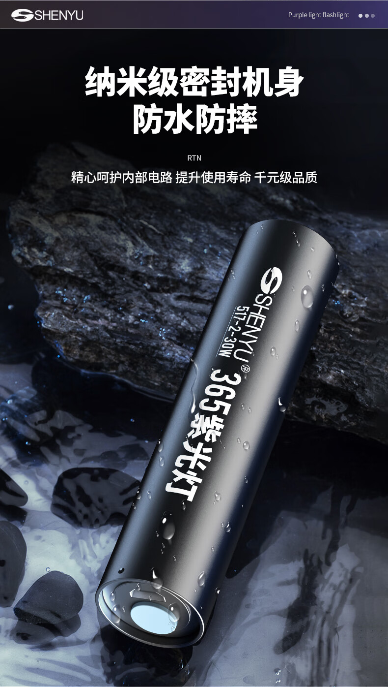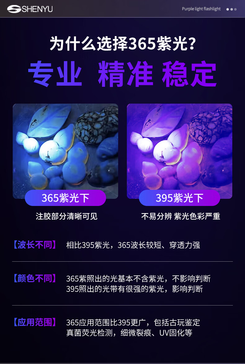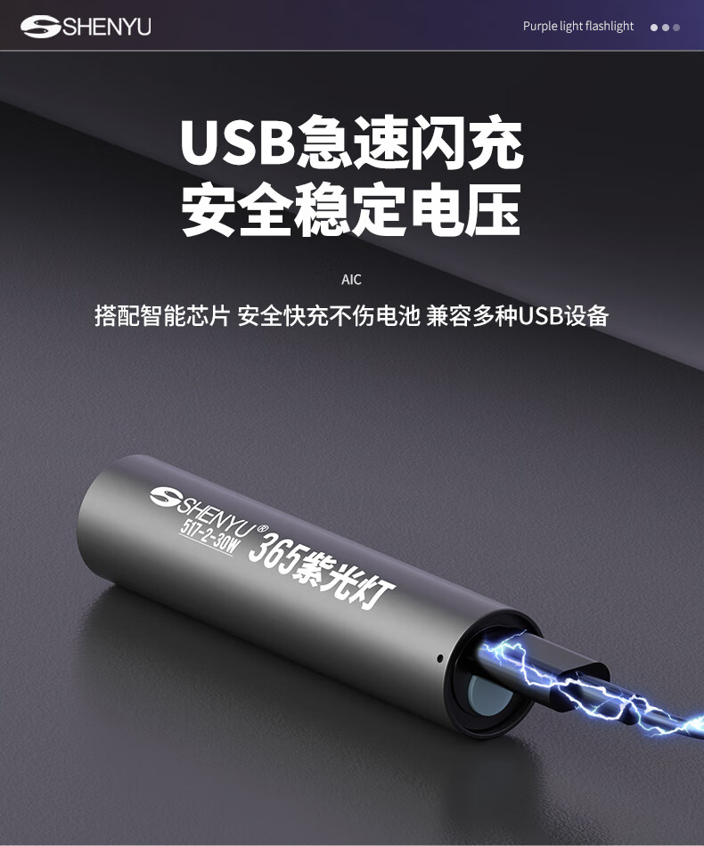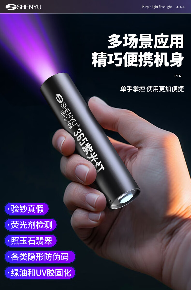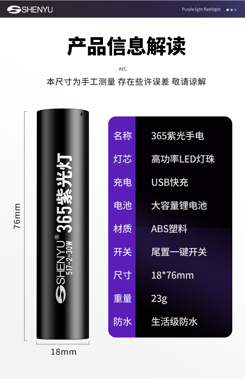 Aic紫光灯检测照烟酒专用验钞鉴定玉石翡翠365nm紫外线手电筒 紫光鉴定手电筒365NM