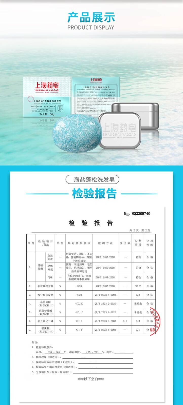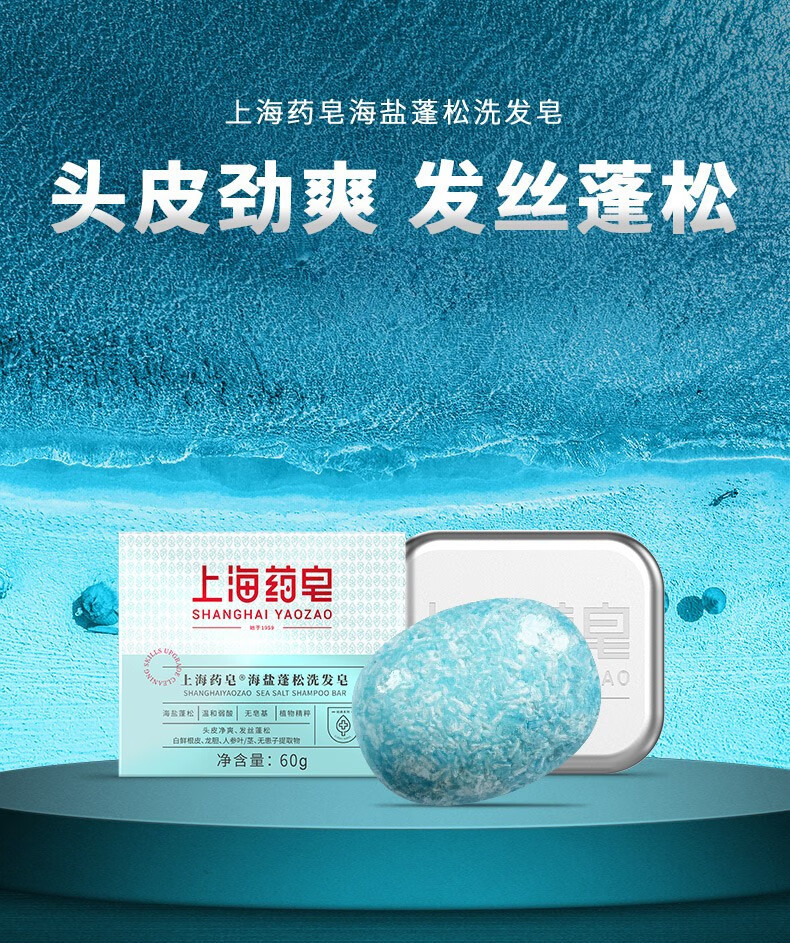 上海药皂洗发皂海盐蓬松浓缩型控油温和弱酸性洗头发去油头学生男女通用 海盐蓬松 60克