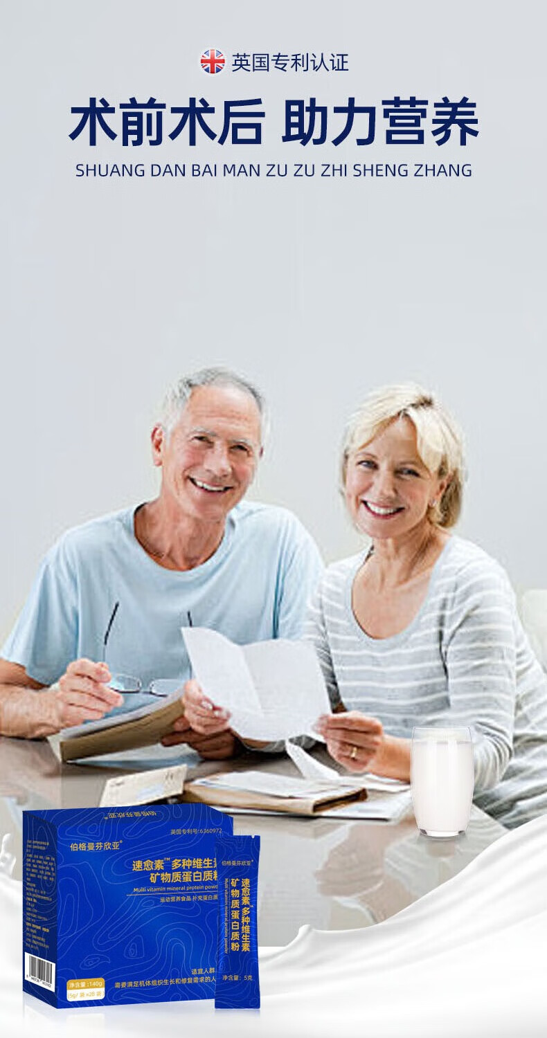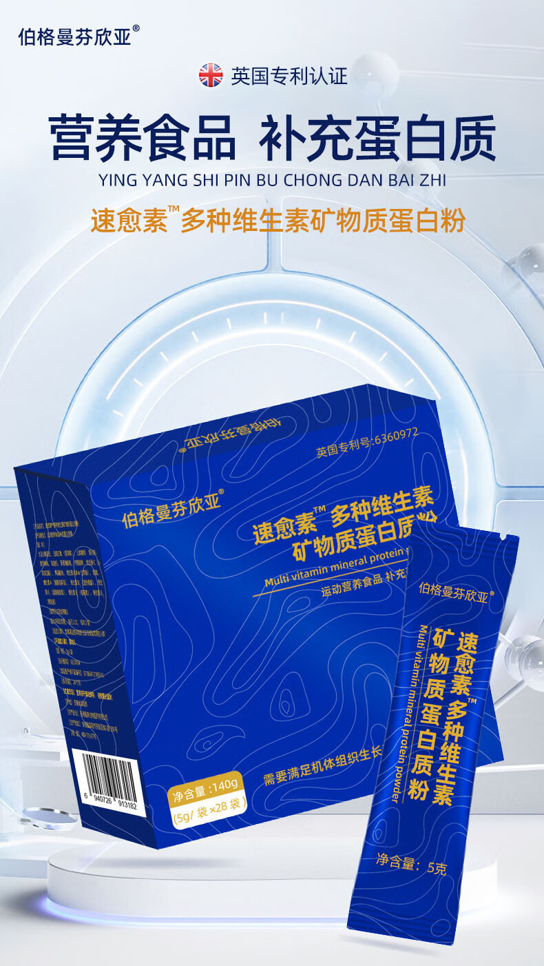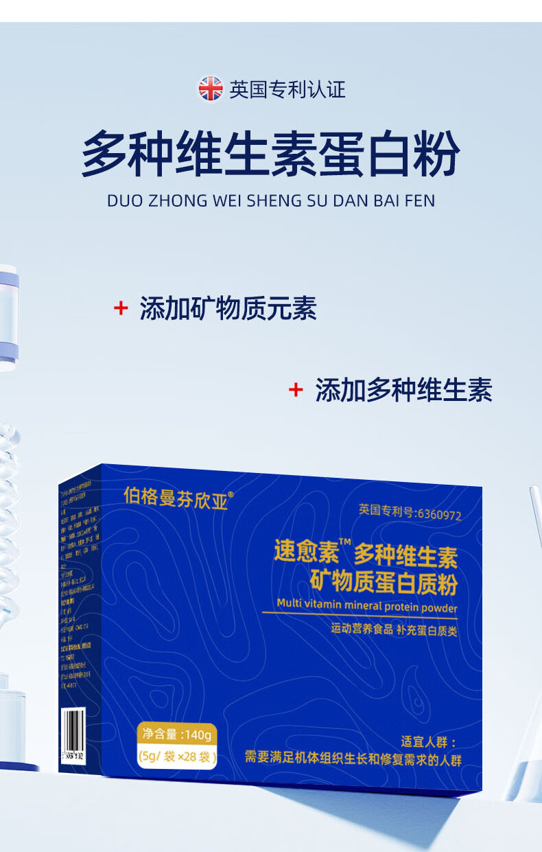 伯格曼芬欣亚维生素矿物质蛋白质粉补充白蛋白肽营养食品B12维生素e钾镁钙铁wn 【5g/袋*28袋】+试喝装(拍3盒发4盒)