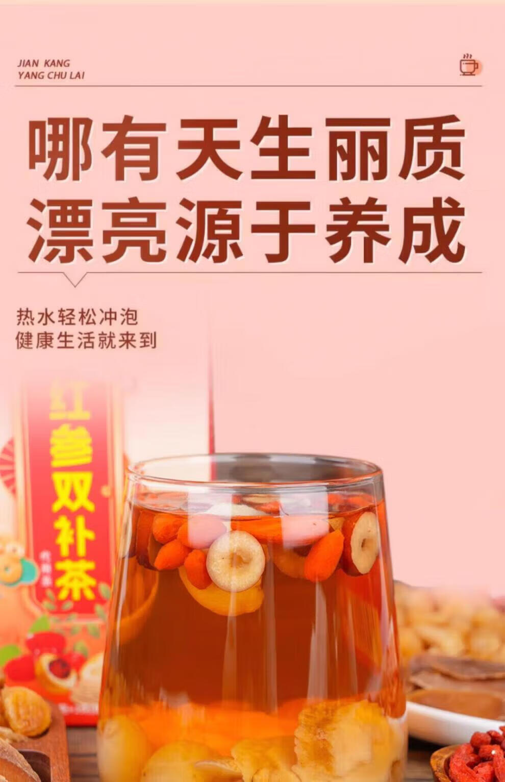 黄芪当归党参红枣茶桂圆枸杞玫瑰花人参女人养生花茶包原材料八宝 60包