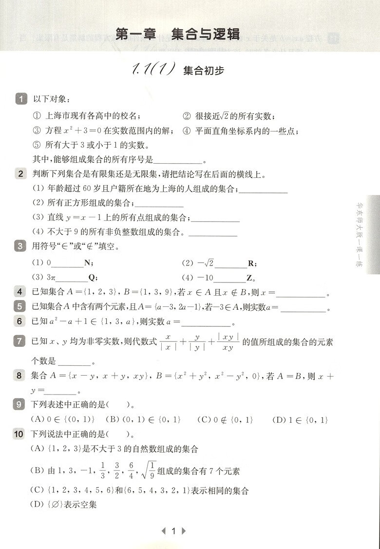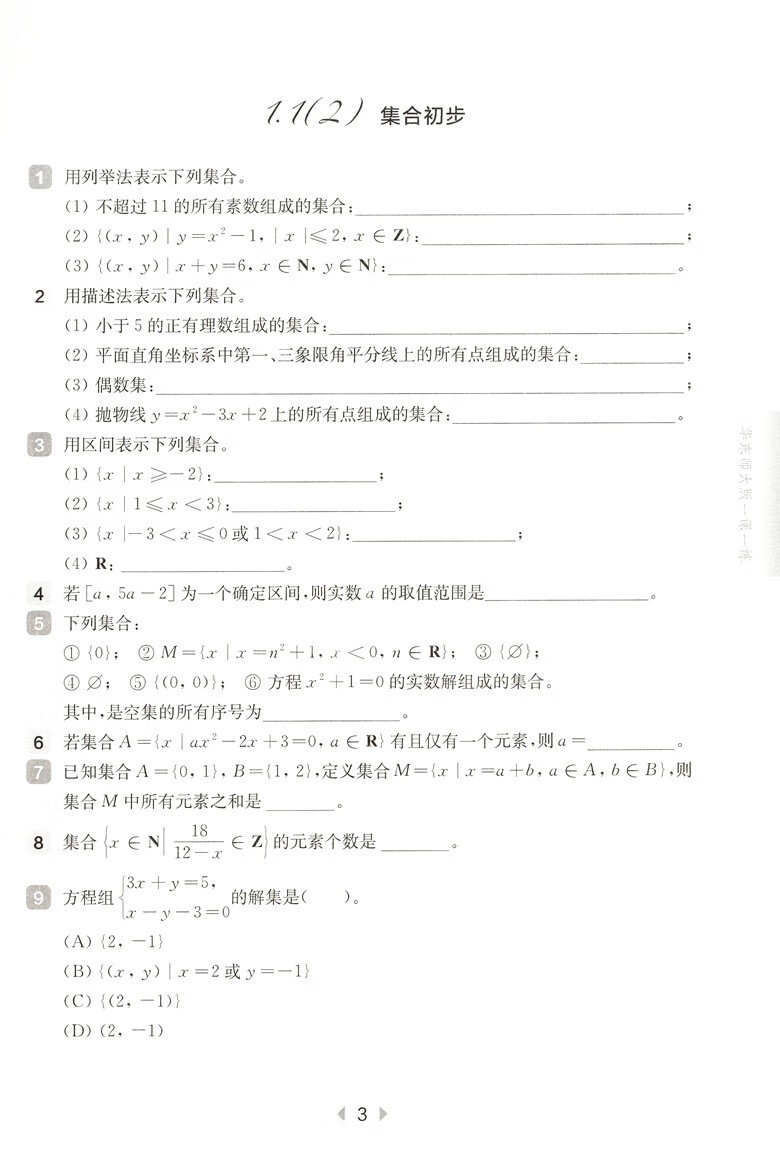 华东师大版一课一练高中数学必修123 数学必修第一二三册 上海专用 可选 华东师范大学出版社 数学 必修1