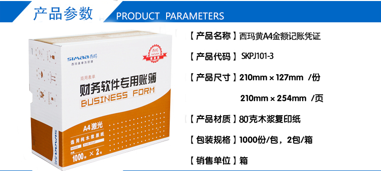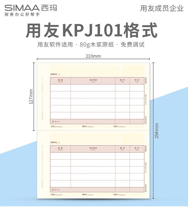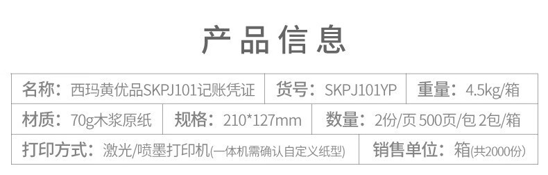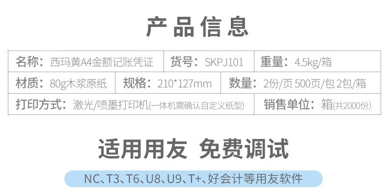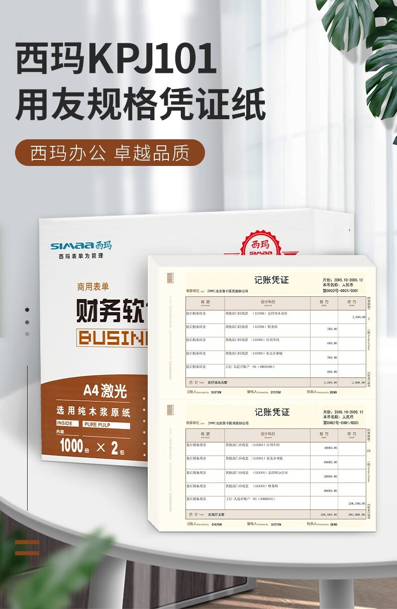 西玛SKPJ101用友凭证纸210*127mm 金额记账凭证打印纸 财务办公适用T3/2000份/箱 SKPJ101 2000份/箱(80g国产纸)