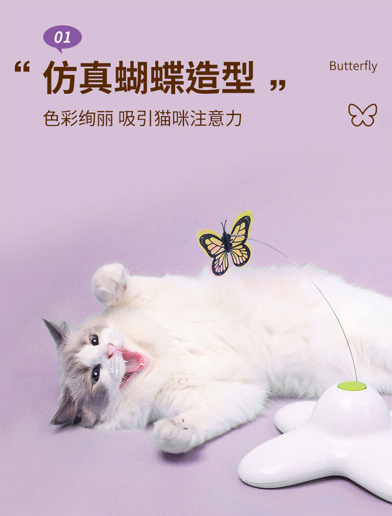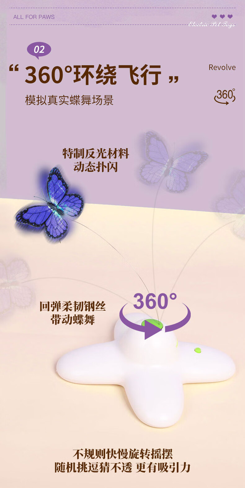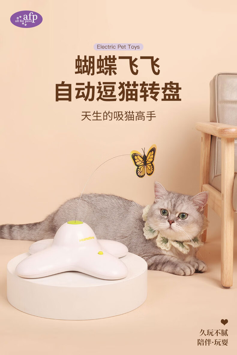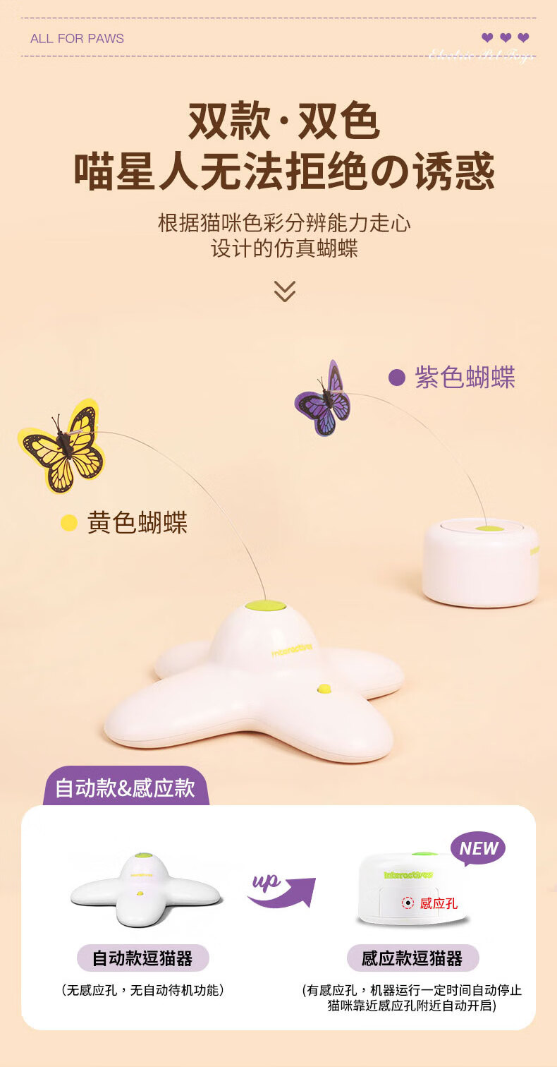 all for paws 猫玩具电动旋转蝴蝶飞飞自动感应逗猫棒智能玩具猫咪蝴蝶可替换 感应式蝴蝶飞飞(含2蝴蝶)