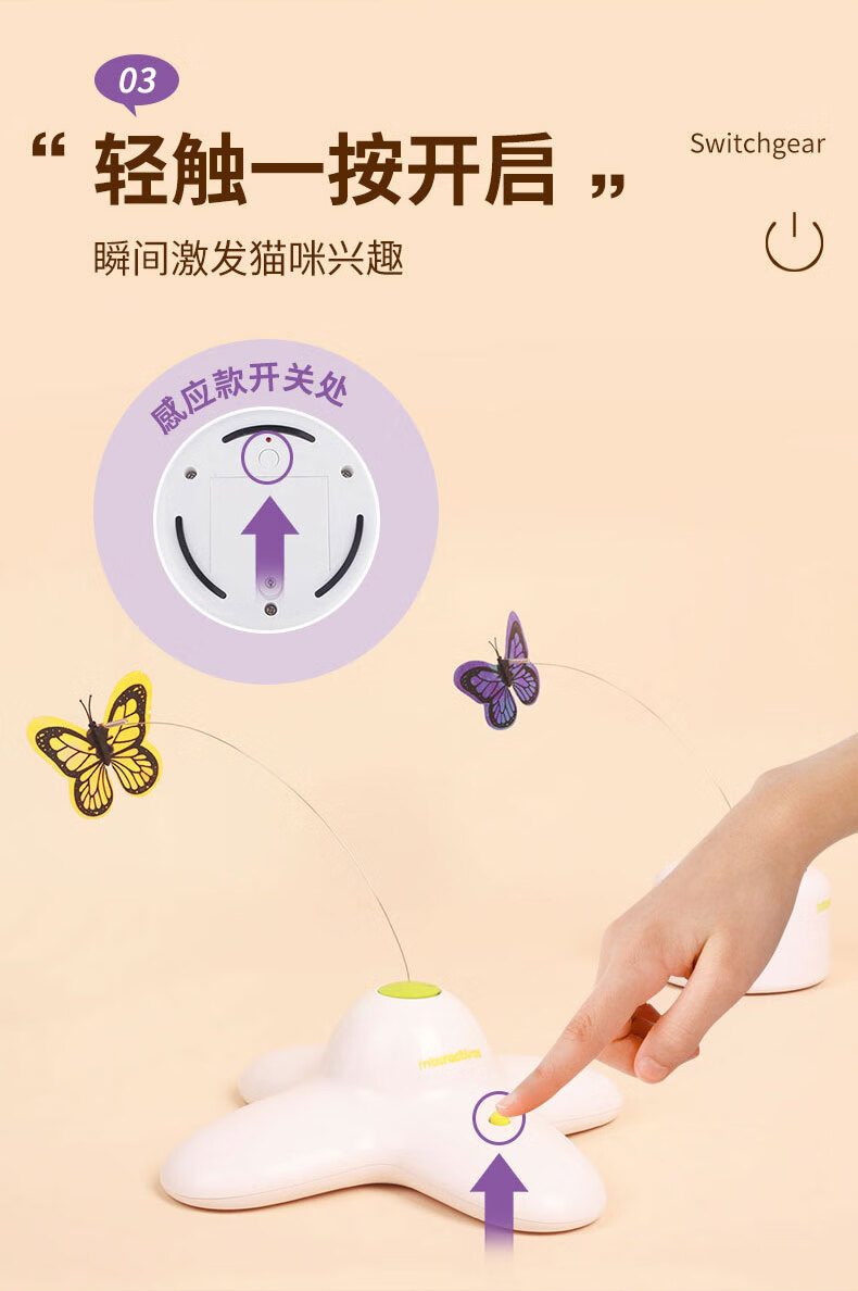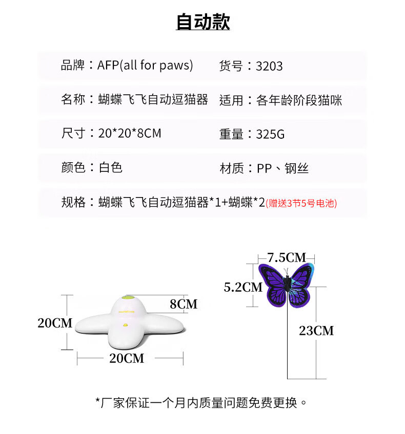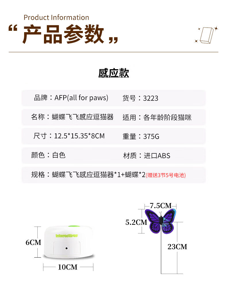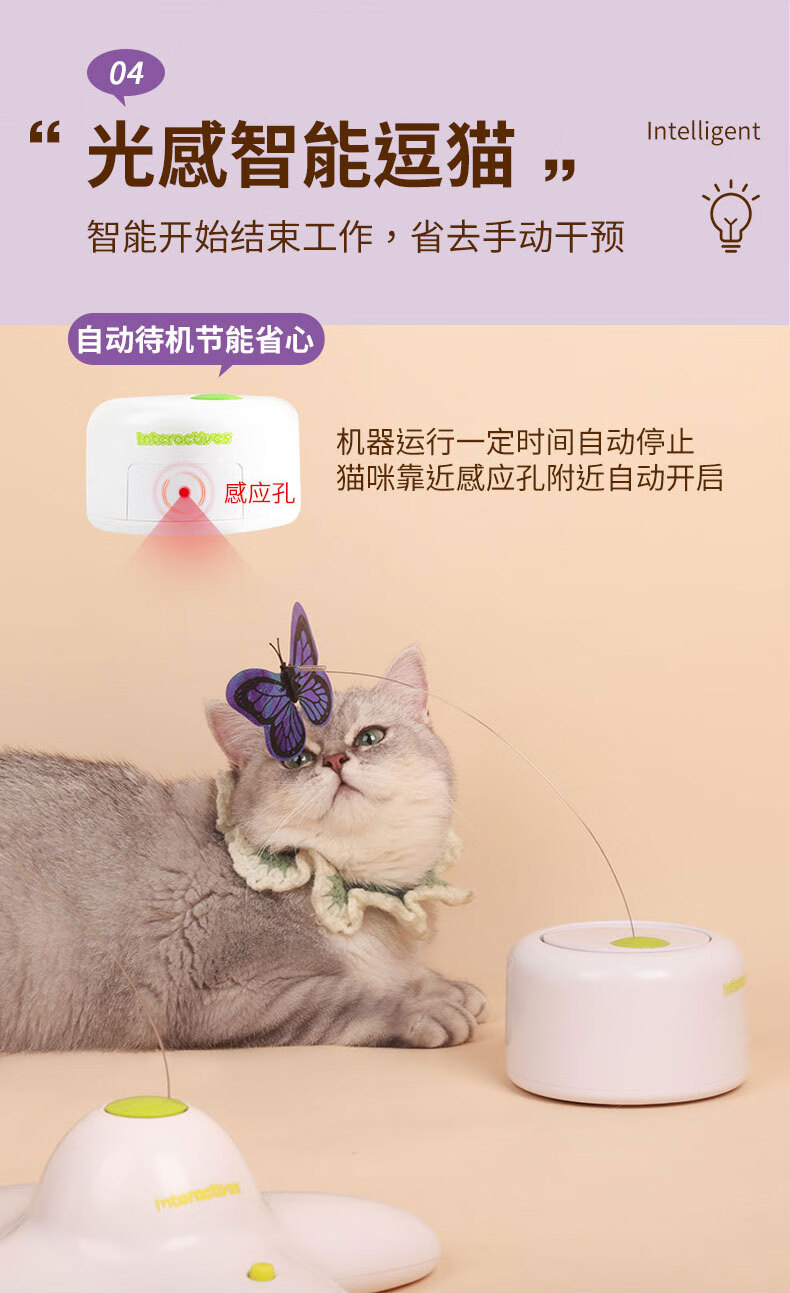 all for paws 猫玩具电动旋转蝴蝶飞飞自动感应逗猫棒智能玩具猫咪蝴蝶可替换 感应式蝴蝶飞飞(含2蝴蝶)