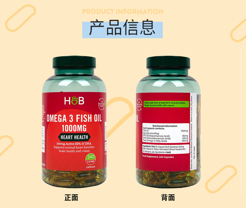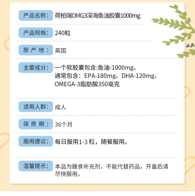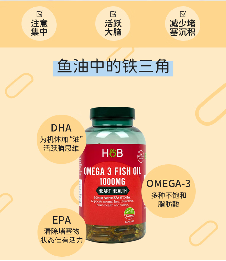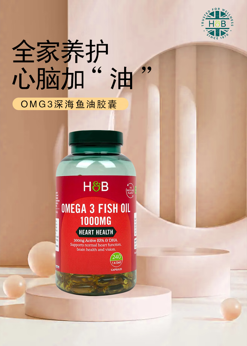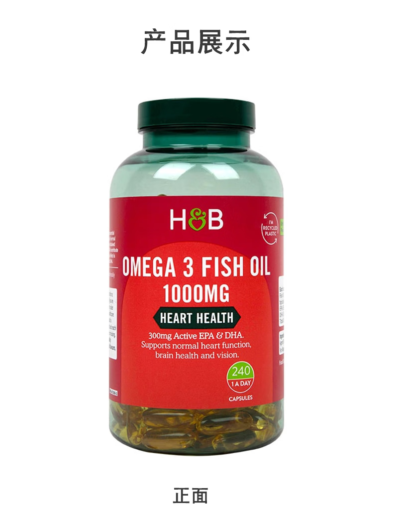 荷柏瑞HB深海鱼油软胶囊成人Omega-3DHA调节护心脑血管英国进口240粒/瓶 深海鱼油高含量 240粒*5盒