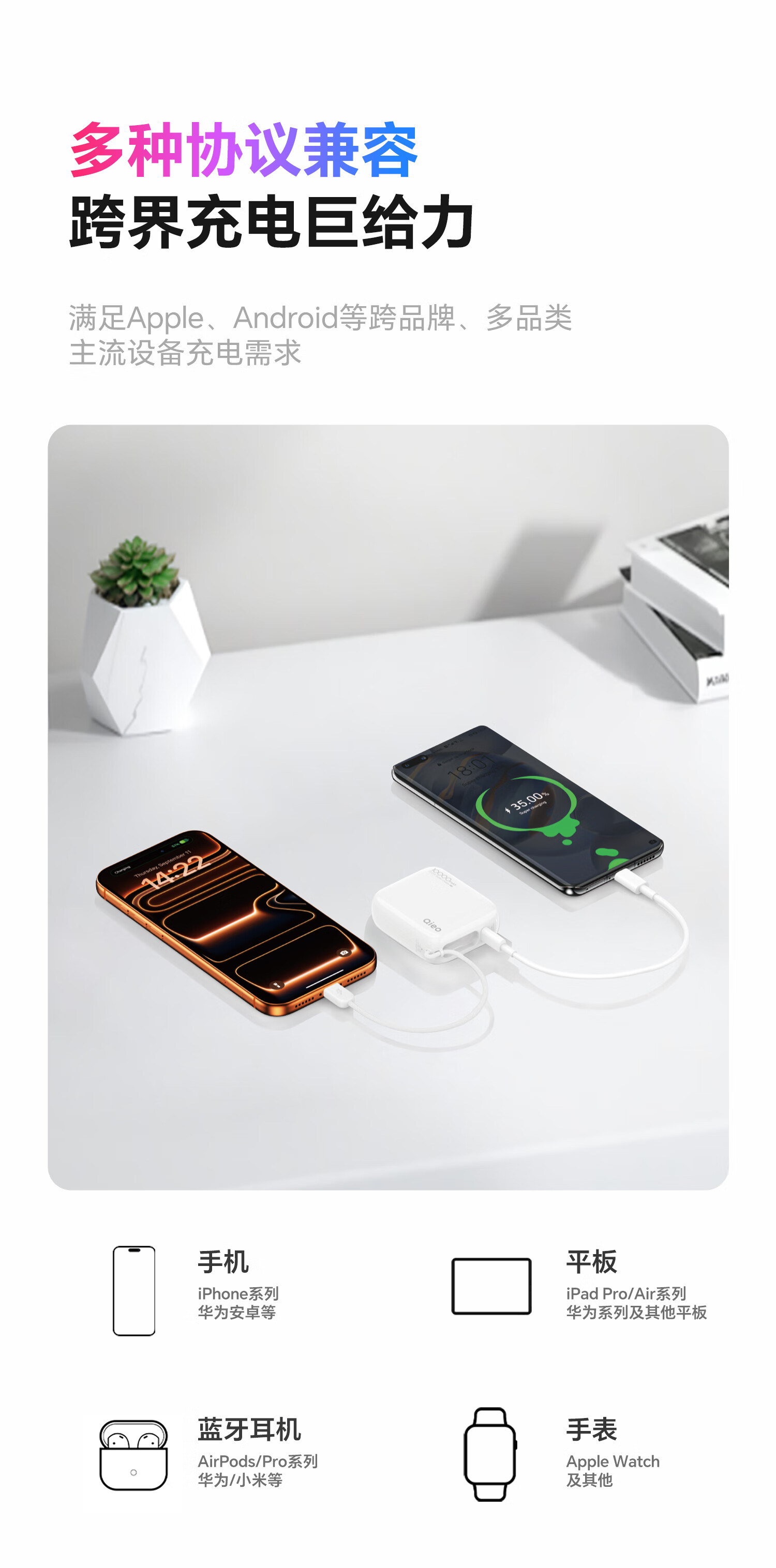 IDMIX磁吸式充电宝自带线支架适用iwatch手表苹果iPhone16/15/14/13/12 钛金色 Q10PROIII