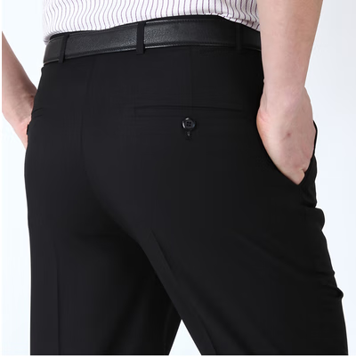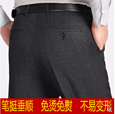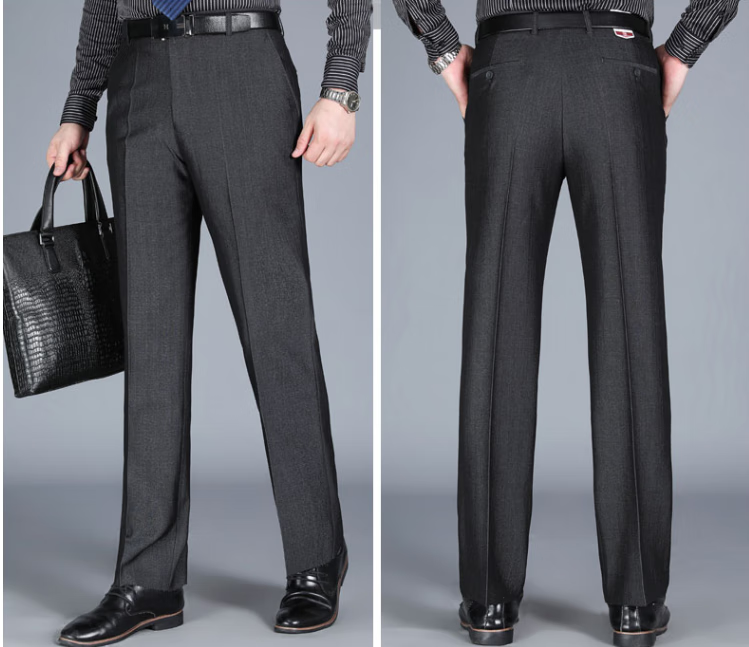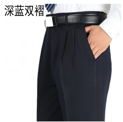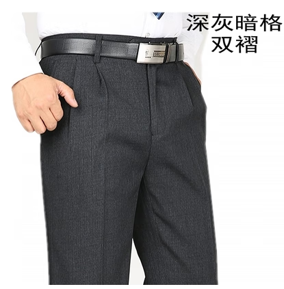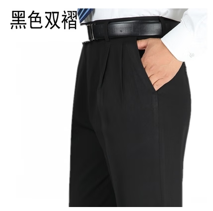 花花公子(PLAYBOY)秋冬厚款毛料西裤男宽松免烫西装裤中老年男裤高腰深档双褶长裤子 春秋款/黑色 37 【腰围三尺】