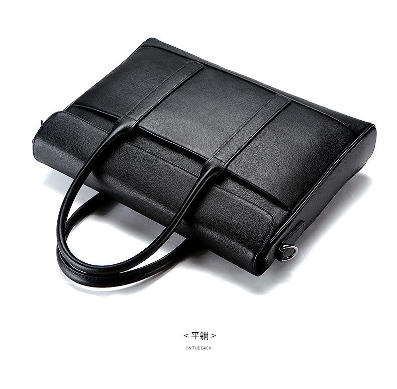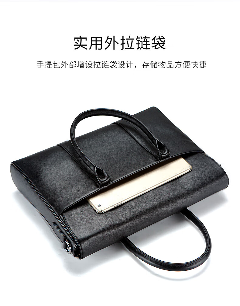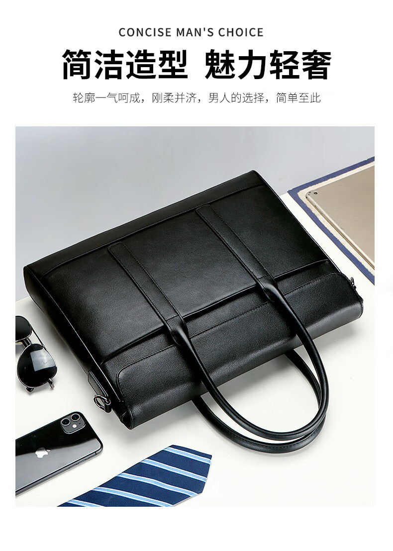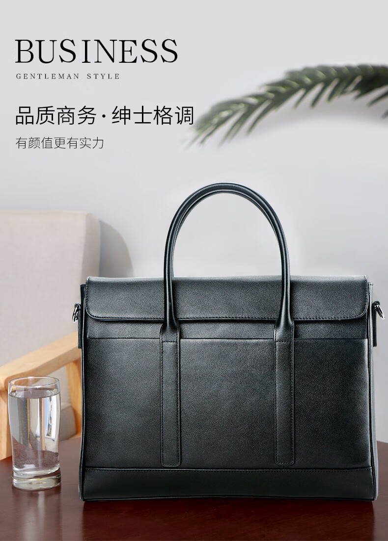 斐格男士手提包真皮商务公文包男单肩斜挎包上班通勤包电脑包轻奢防水 经典黑(真皮) 横款13英寸