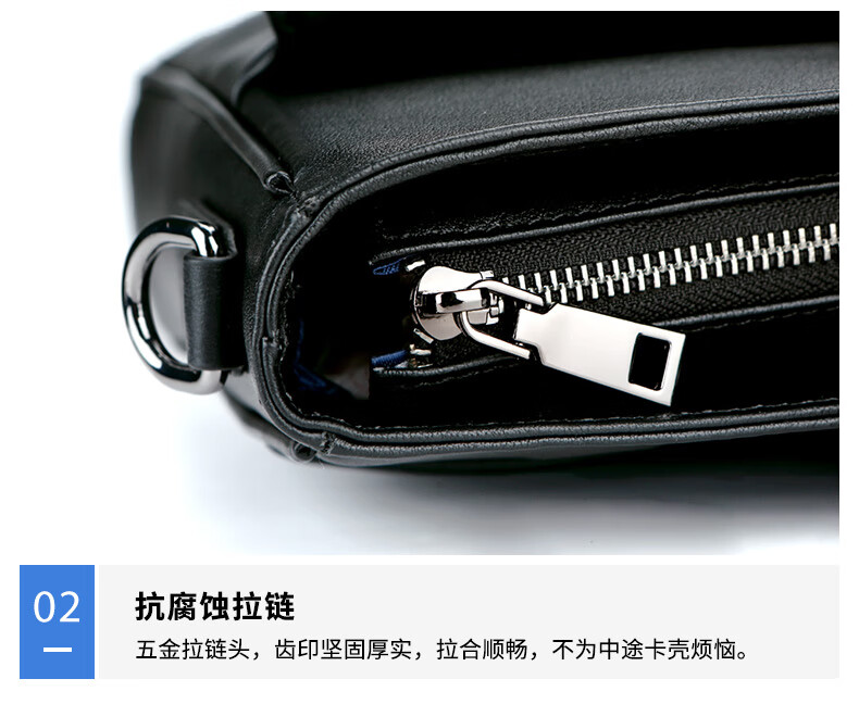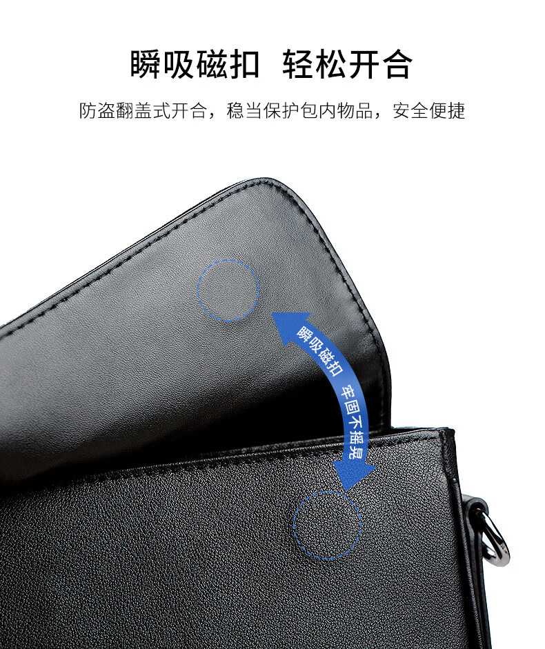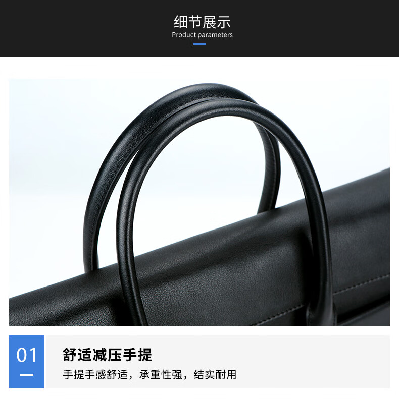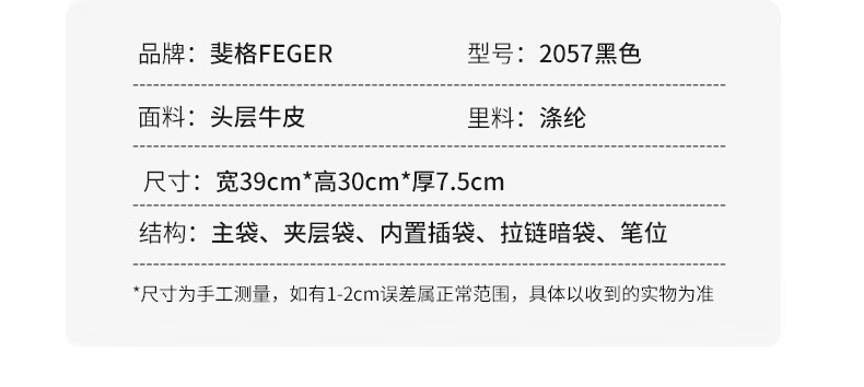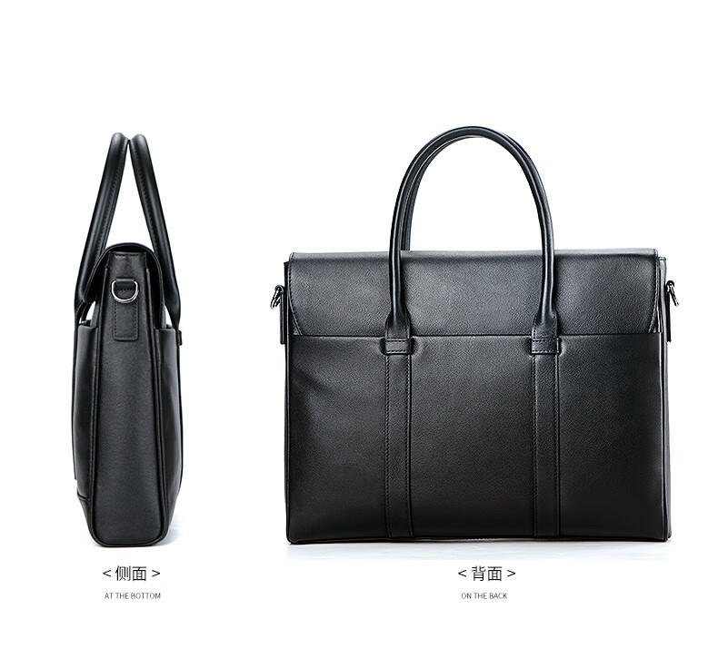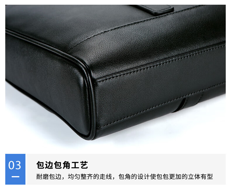 斐格男士手提包真皮商务公文包男单肩斜挎包上班通勤包电脑包轻奢防水 经典黑(真皮) 横款13英寸