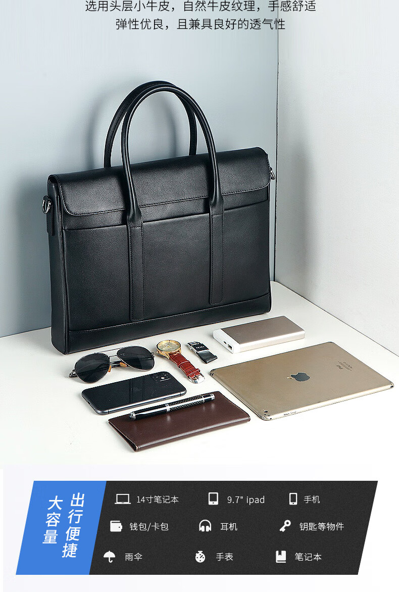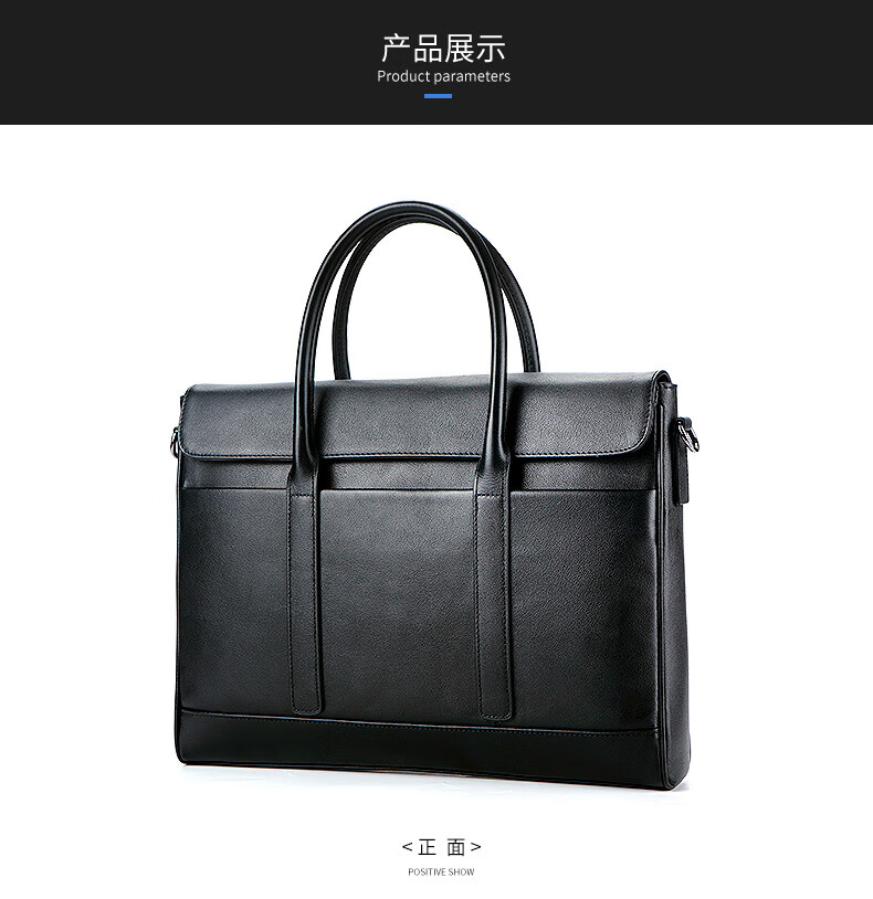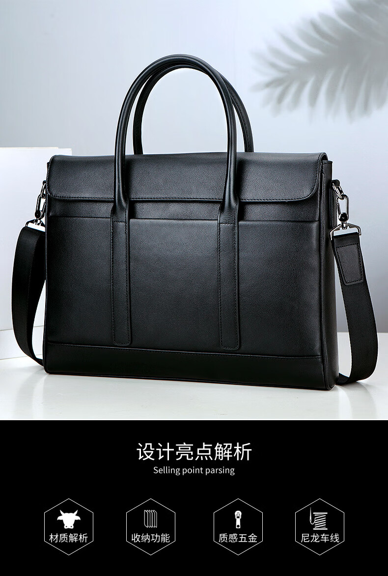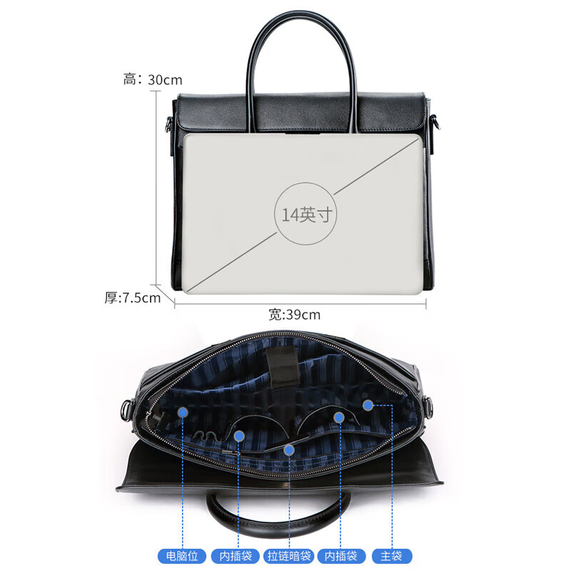 斐格男士手提包商务公文包男真皮斜挎包电脑包轻奢牛皮单肩包大容量 经典黑(14英寸头层牛皮) 14英寸