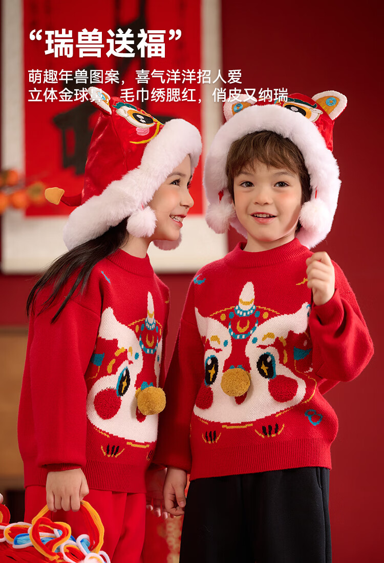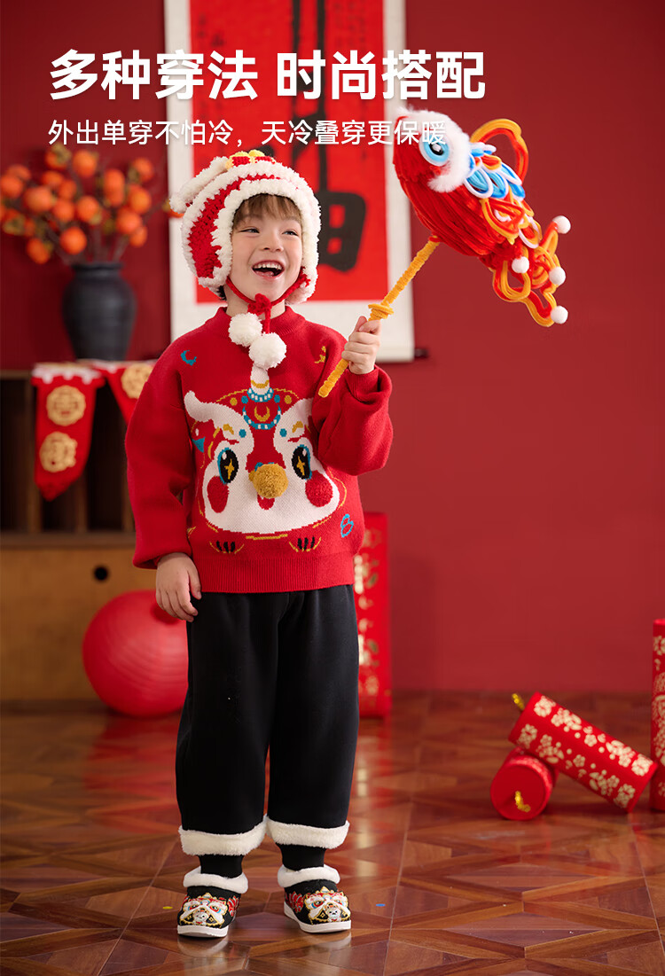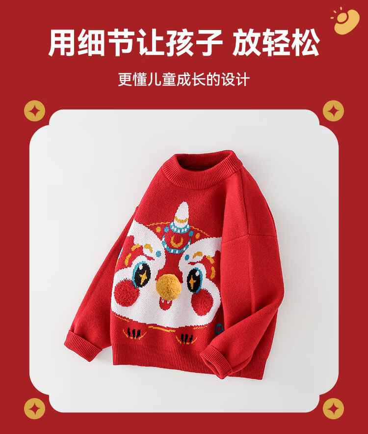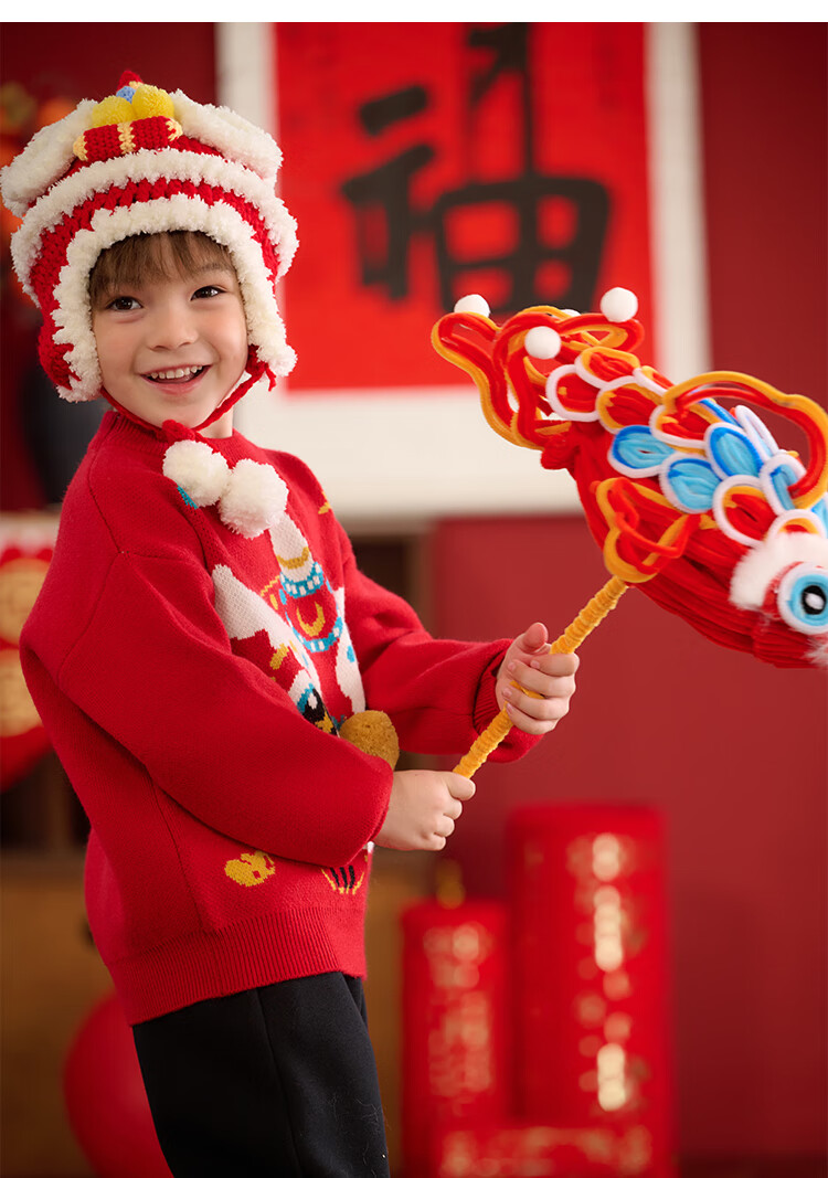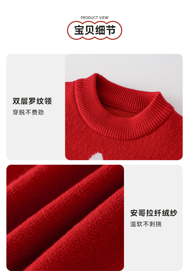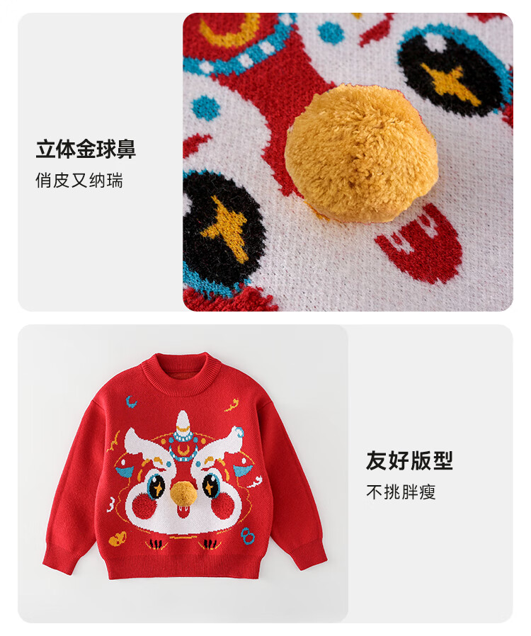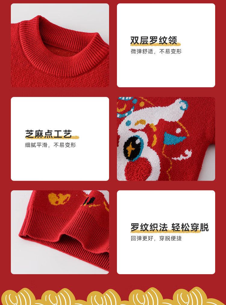 棉花堂拜年服男童毛衣冬季新年儿童毛线衣宝宝红色针织衫过年xt 新年红 130