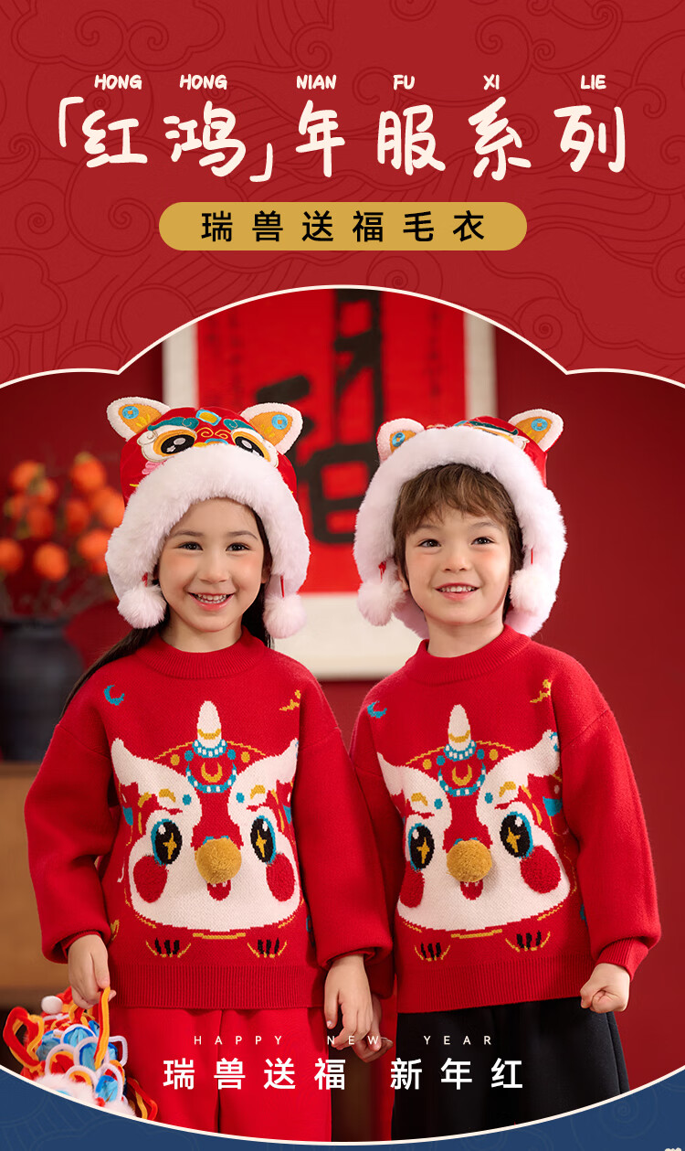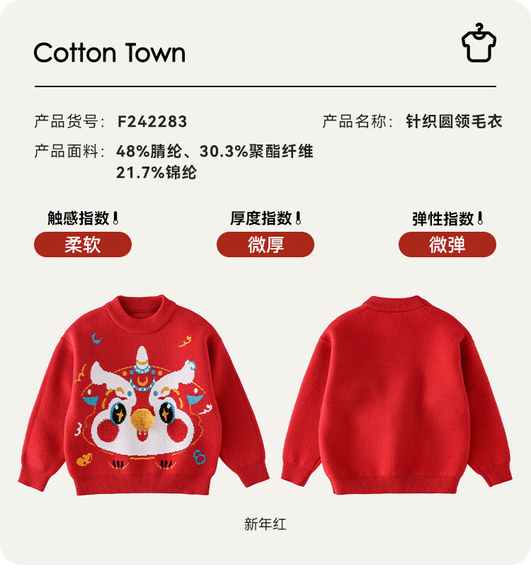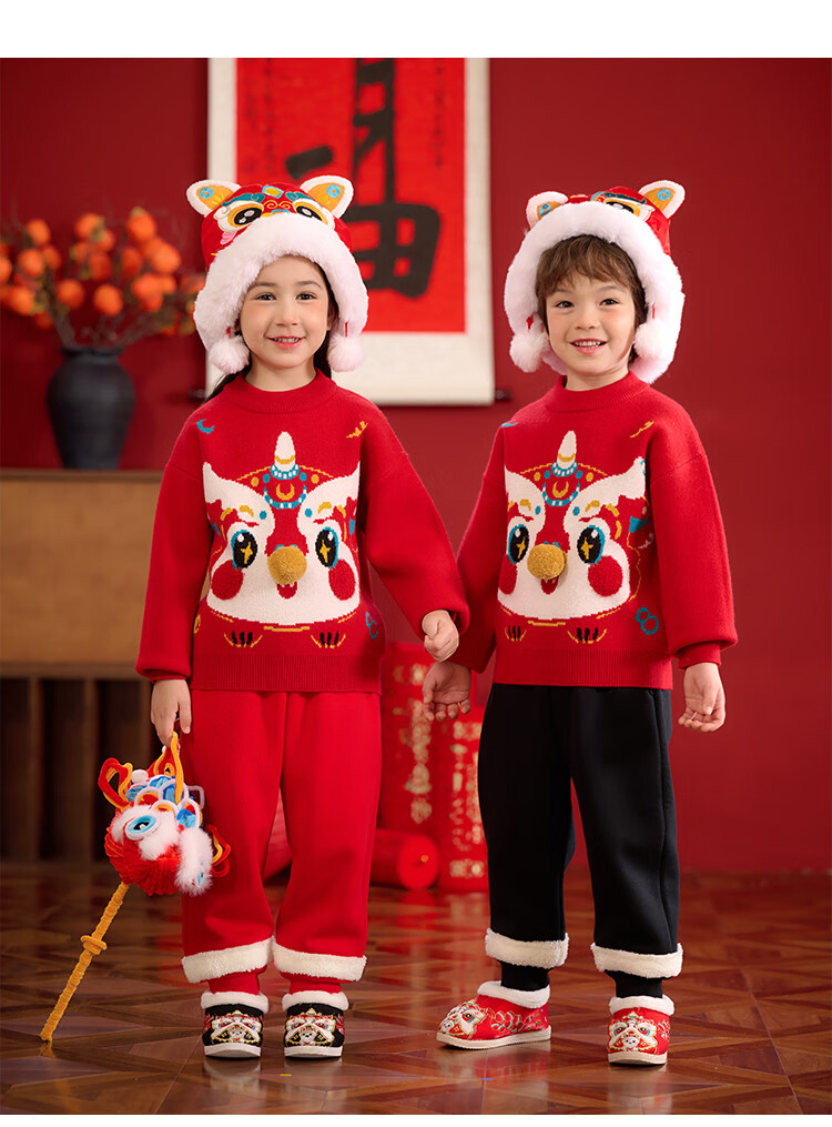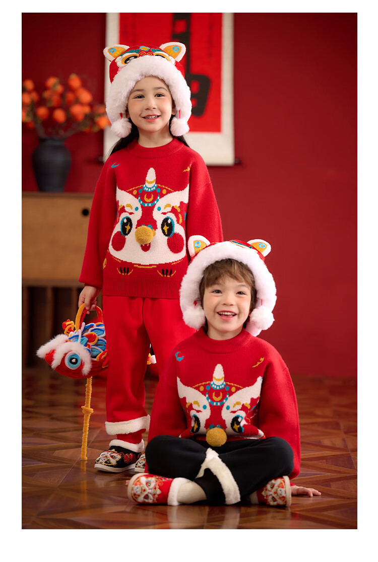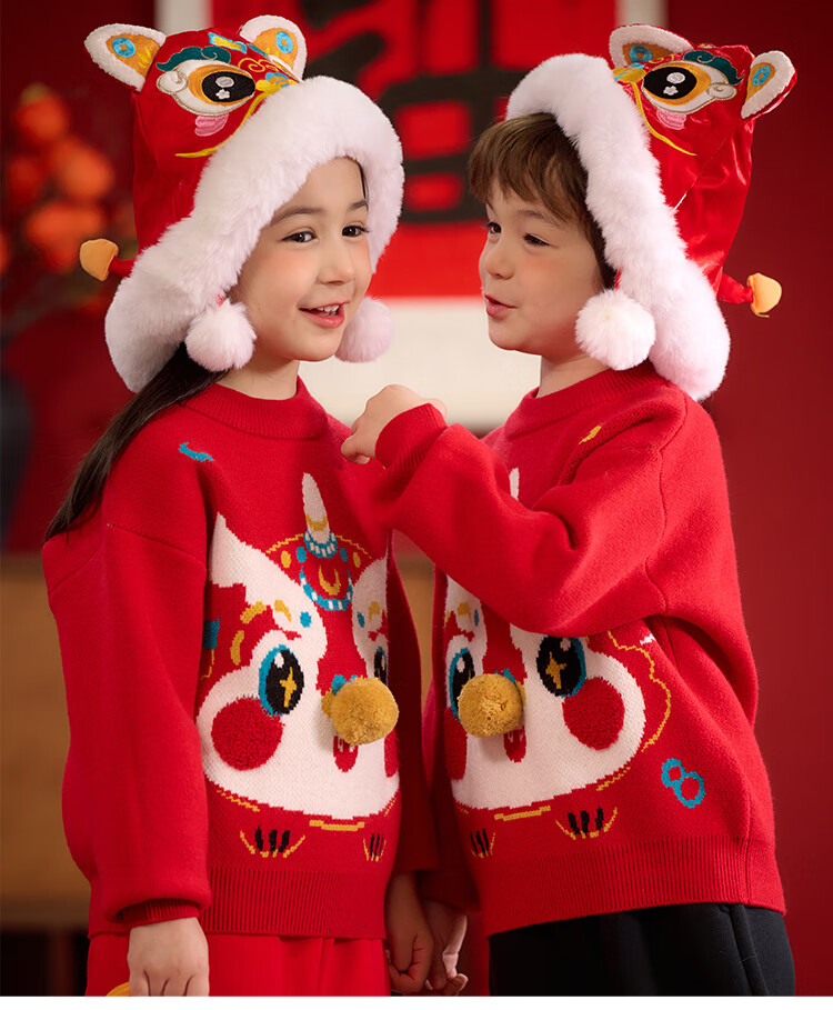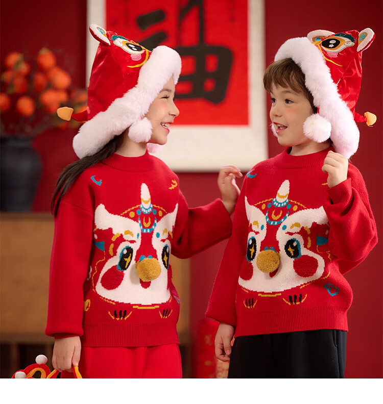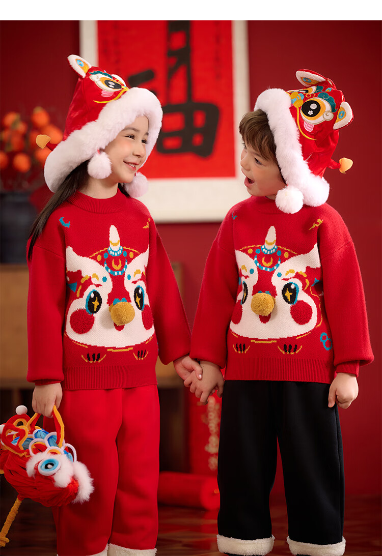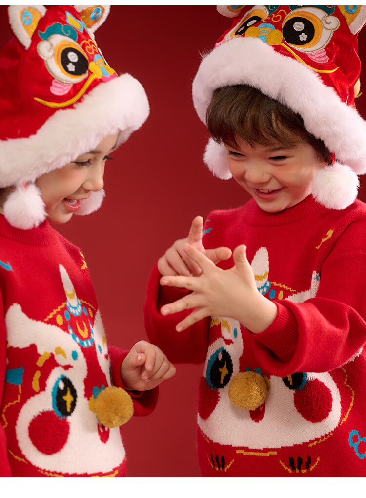 棉花堂拜年服男童毛衣冬季新年儿童毛线衣宝宝红色针织衫过年xt 新年红 130