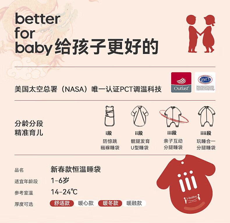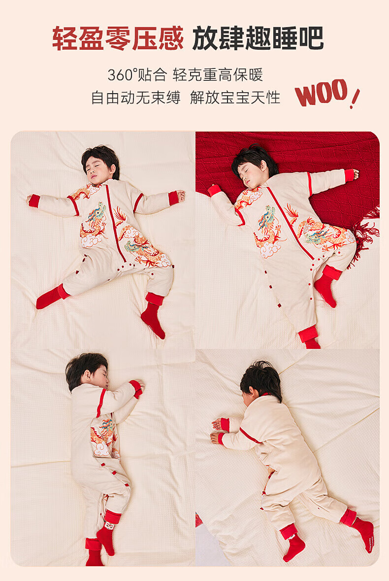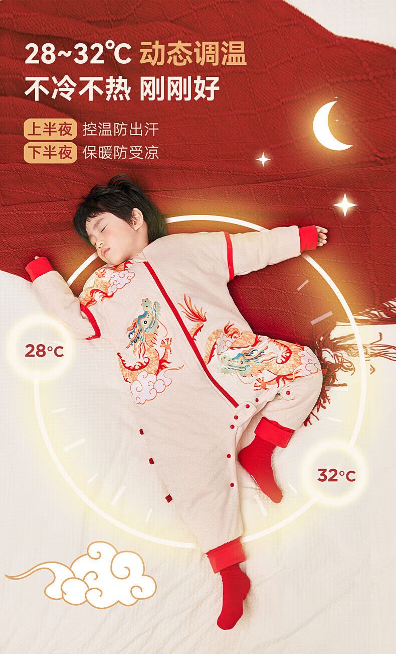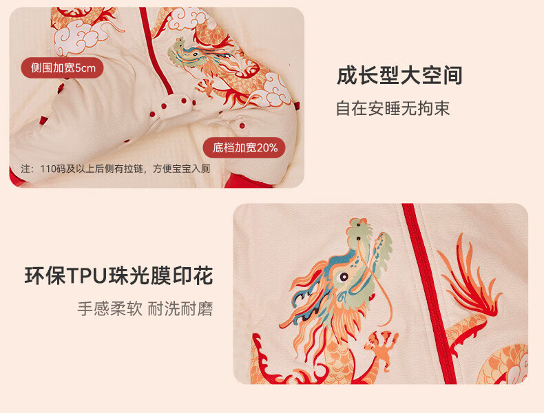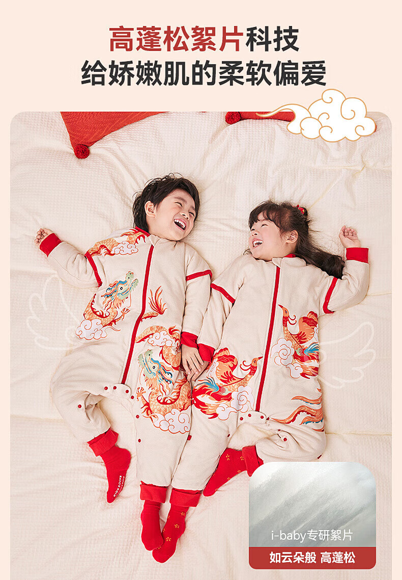 ibaby新春款恒温宝宝分腿睡袋儿童防踢被子冬季夹棉婴儿睡袋龙风睡衣 【暖冬】飞龙在天 (适用14~18℃) 110码
