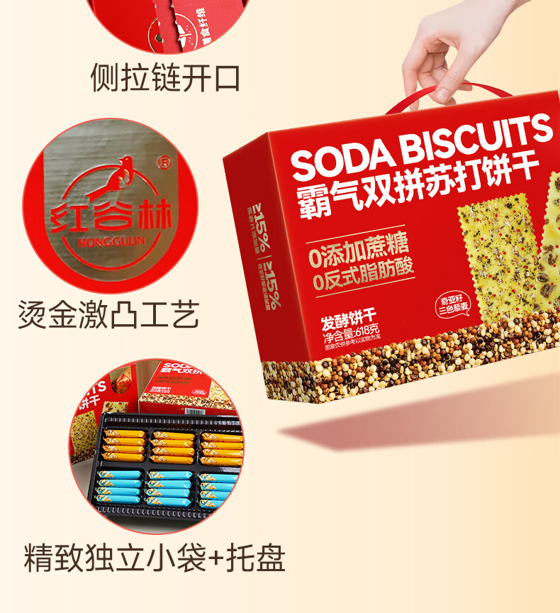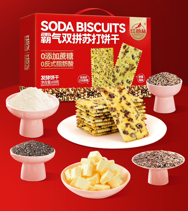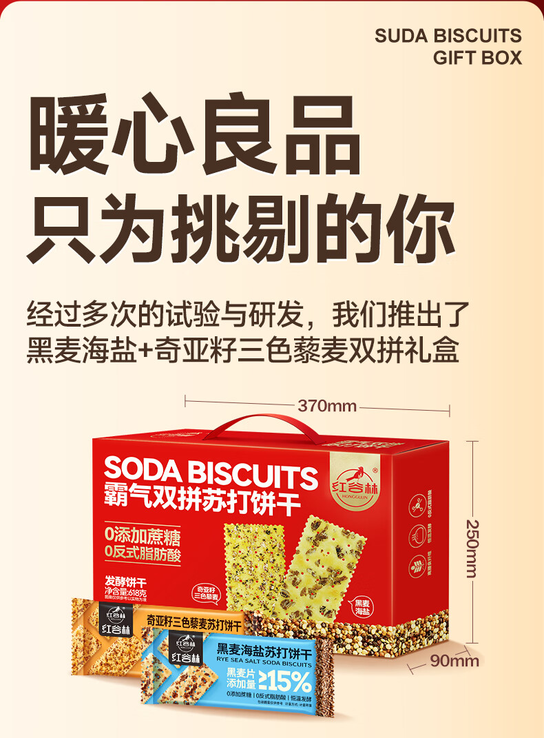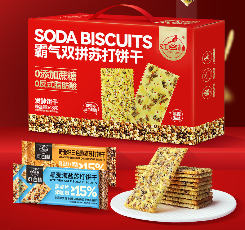 红谷林霸气双拼苏打饼干礼盒梳打咸味饼干休闲零食发酵饼干零食大礼包 霸气双拼苏打饼干礼盒 618g*1盒