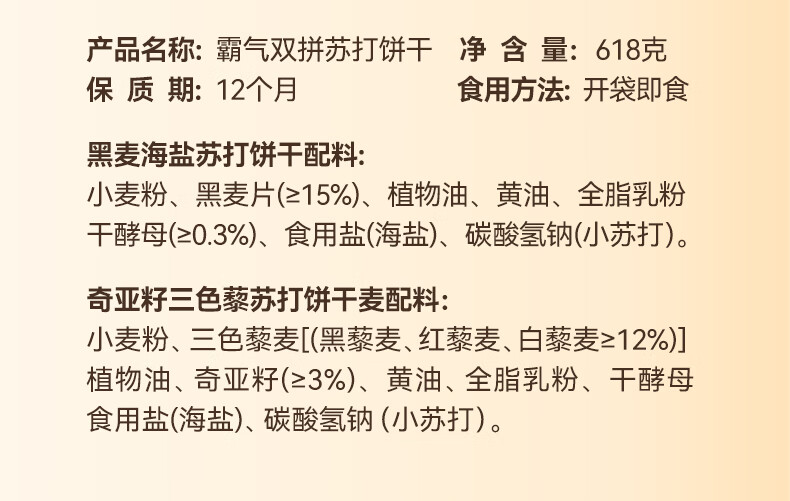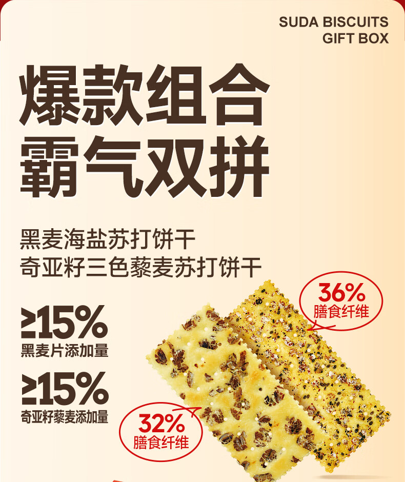 奇亚籽三色黎麦苏打饼干网红饼干咸味零食休闲食品 30包