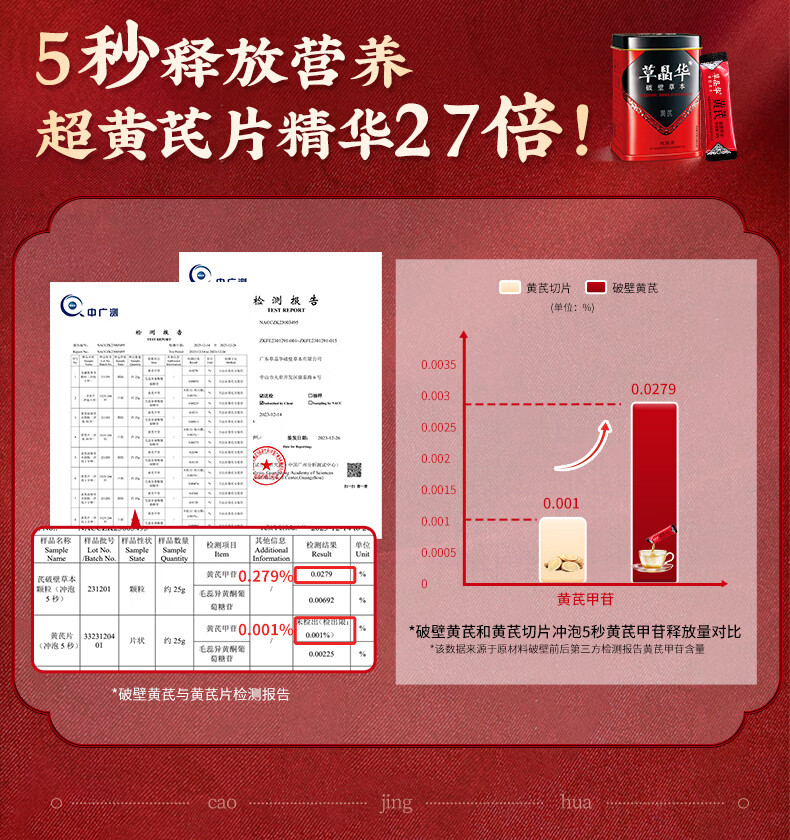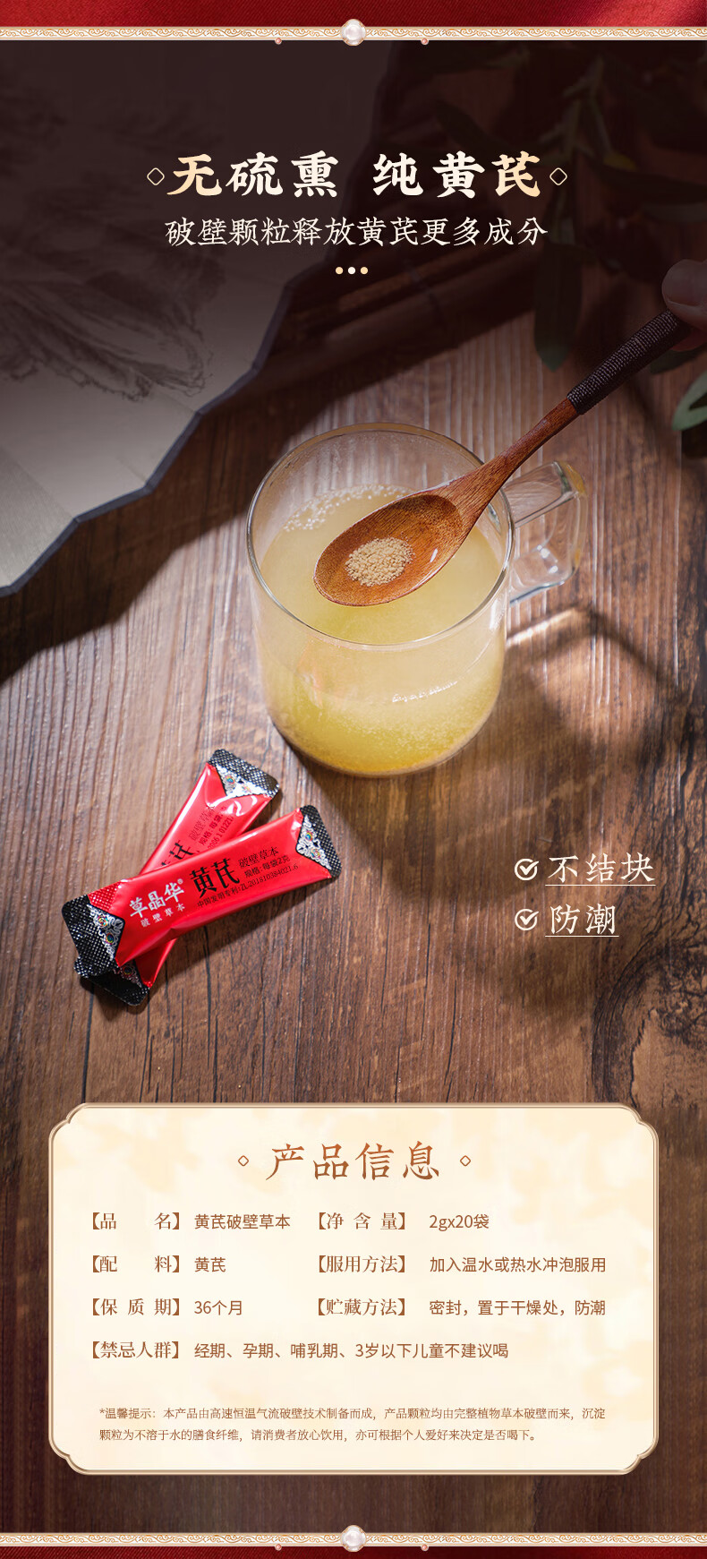 草晶华黄芪破壁草本40g(2g×20袋 代用茶 送礼送父母爸妈长辈