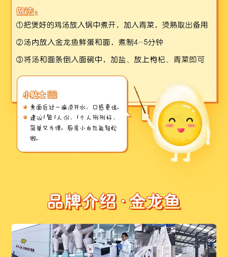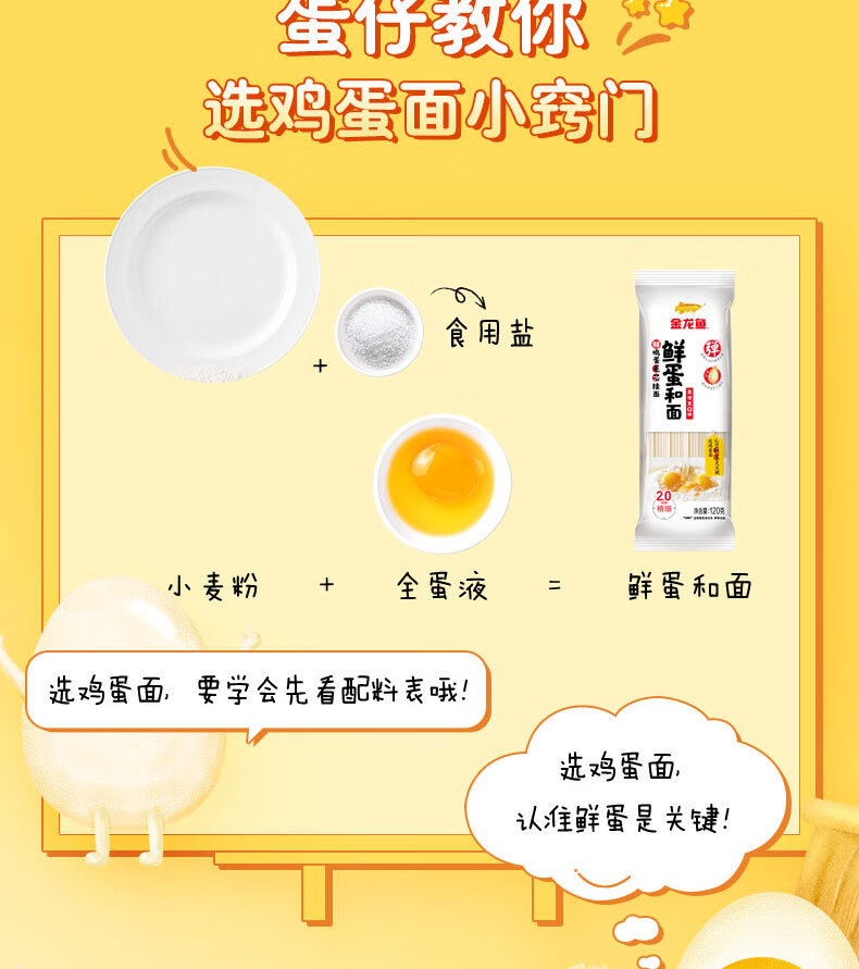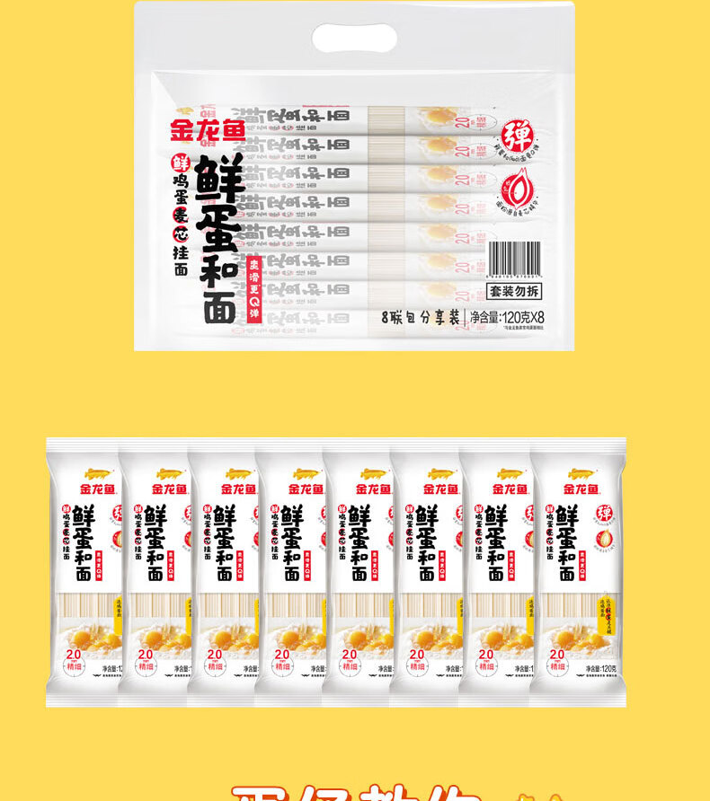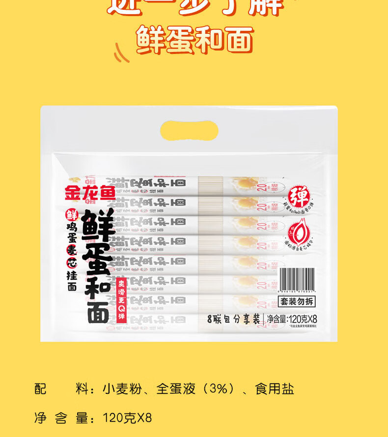 金龙鱼鲜蛋和面 鲜鸡蛋麦芯挂面 120g*8 袋装细条形劲道全蛋面早餐面