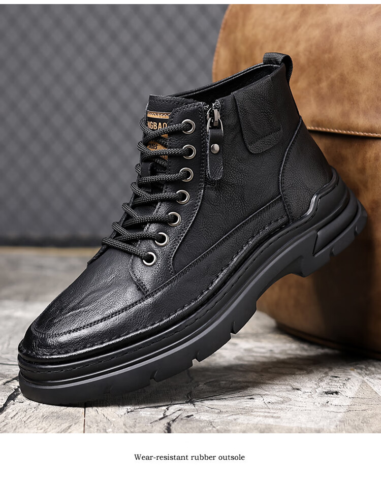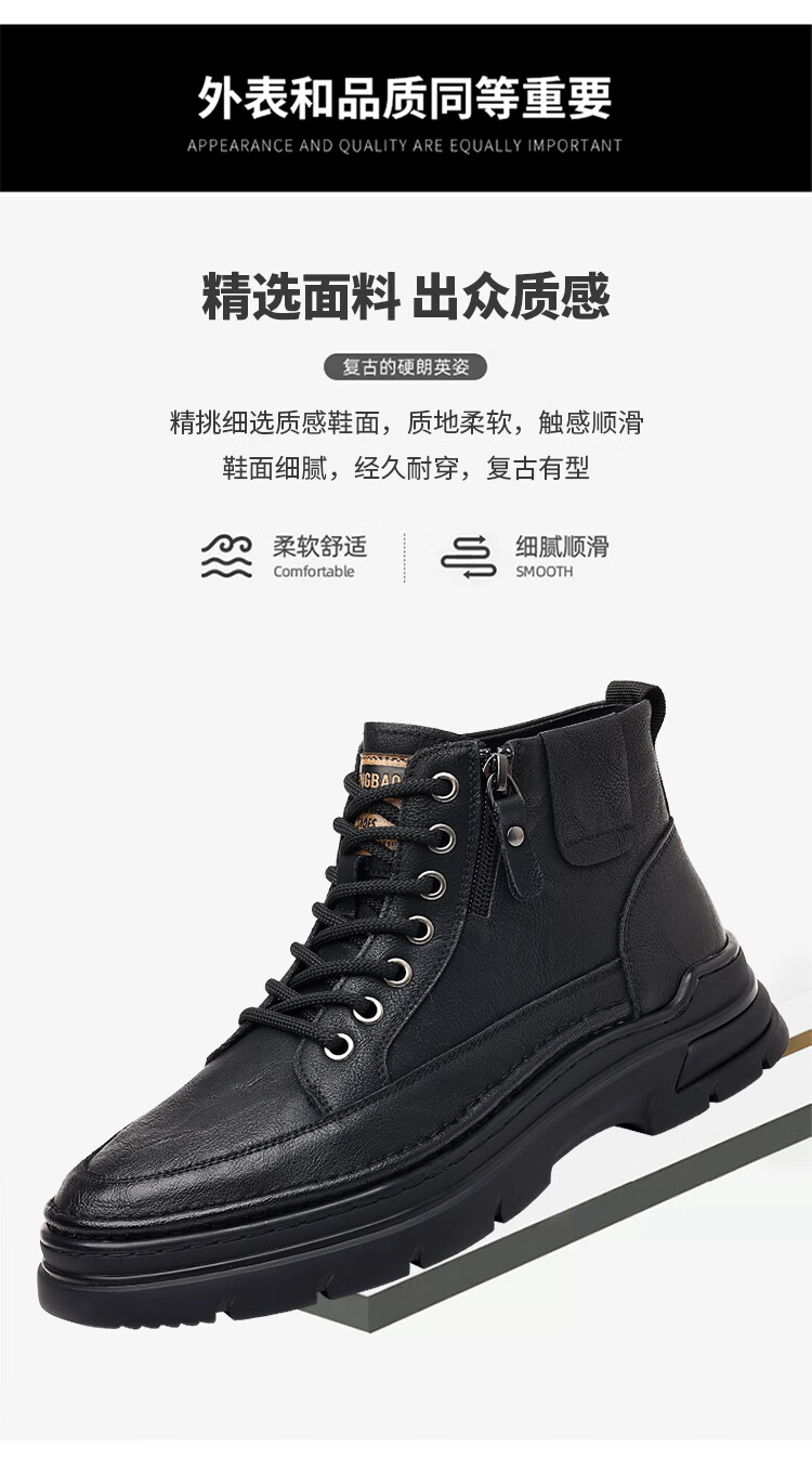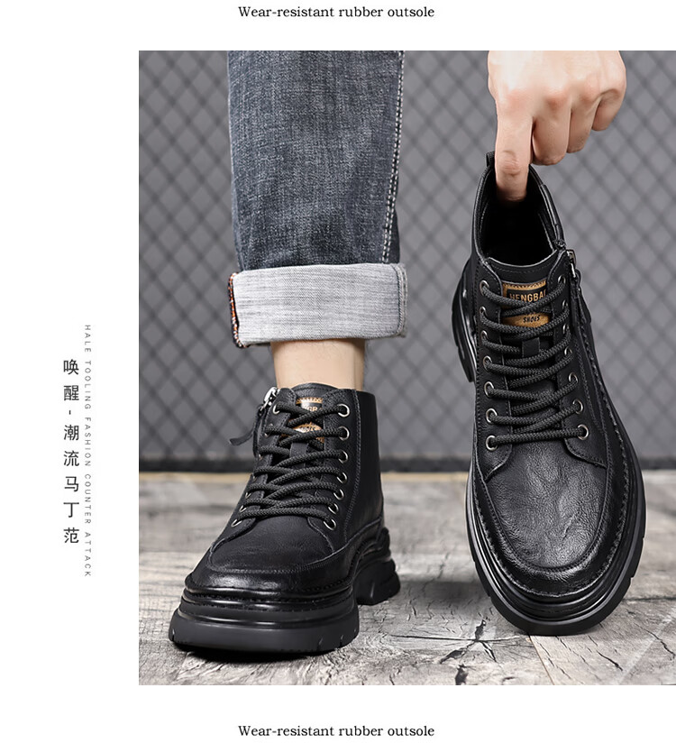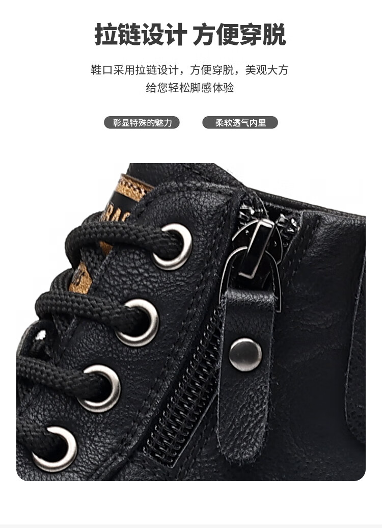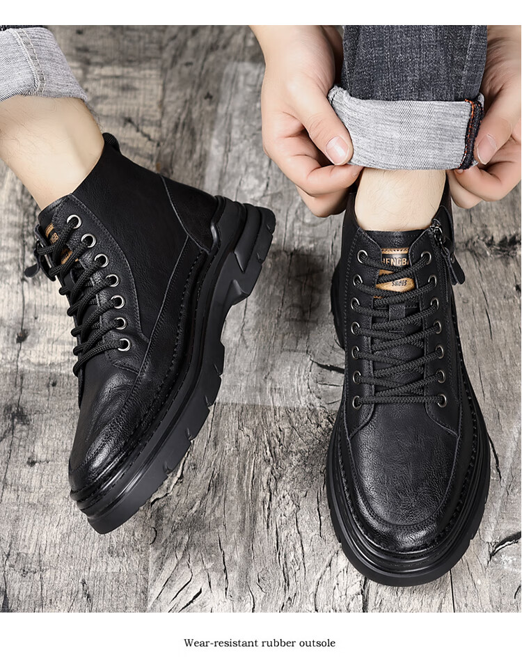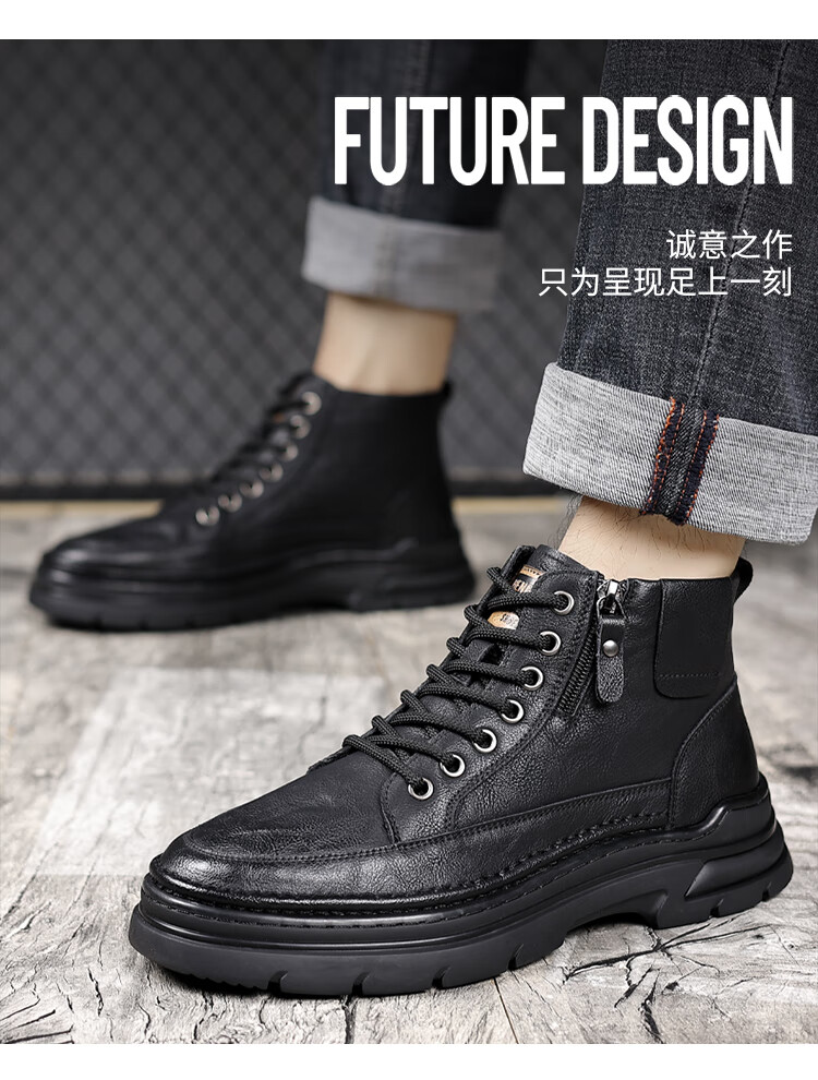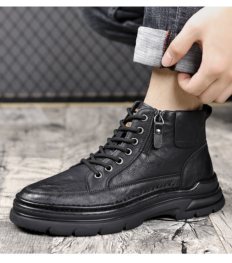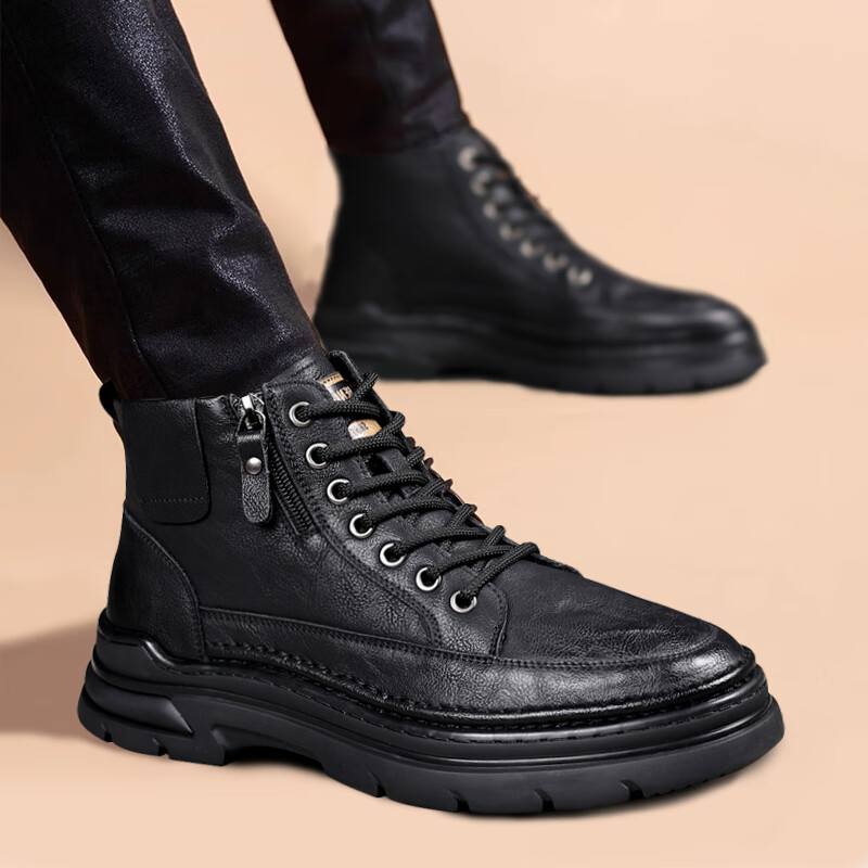 稻草人(MEXICAN)冬季马丁靴男款2026新款加绒英伦潮流中帮靴子男鞋真皮工装男靴 黑色【四季款】 9939 41