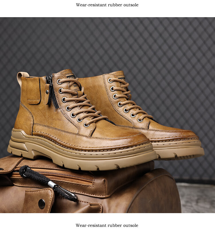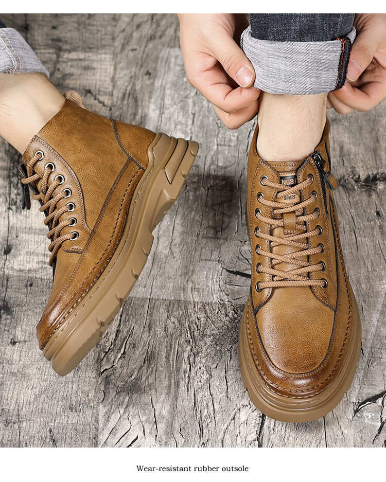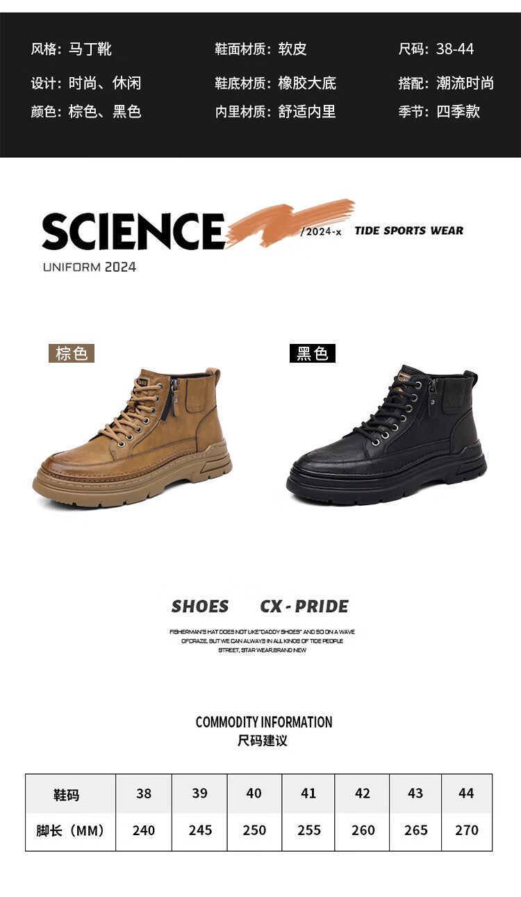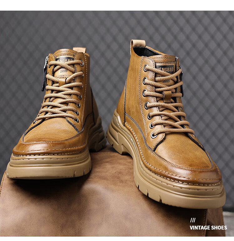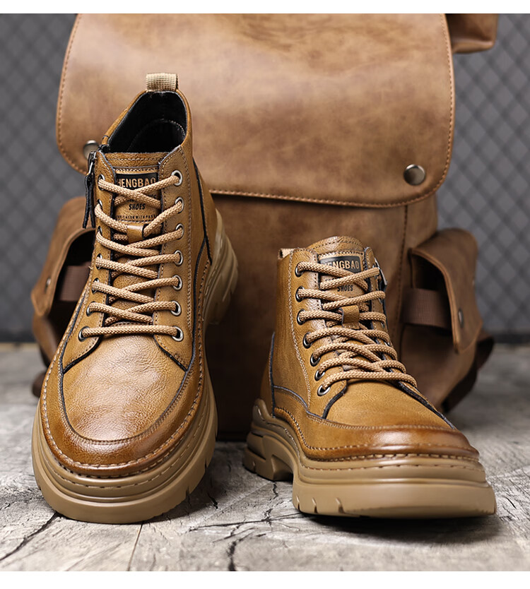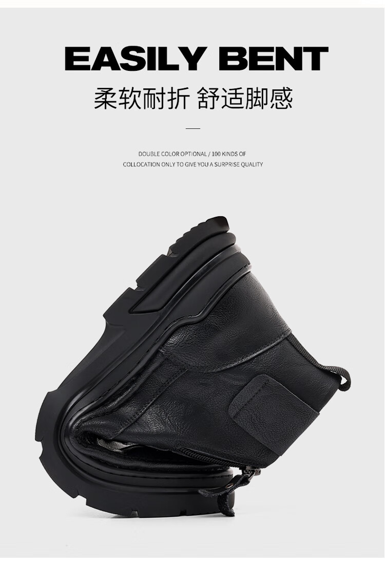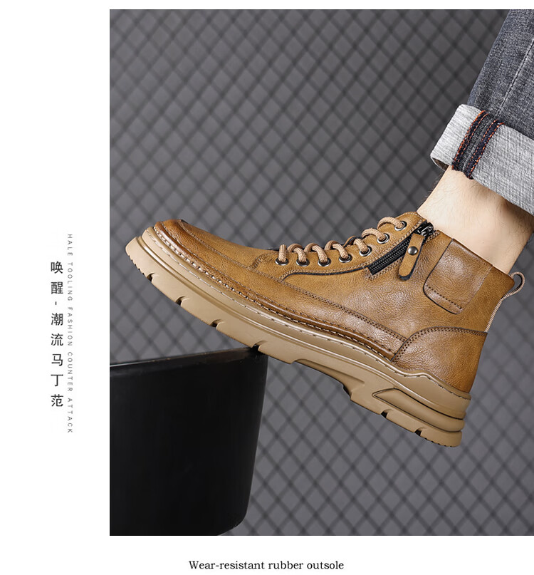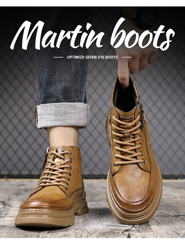稻草人(MEXICAN)冬季马丁靴男款2026新款加绒英伦潮流中帮靴子男鞋真皮工装男靴 黑色【四季款】 9939 41