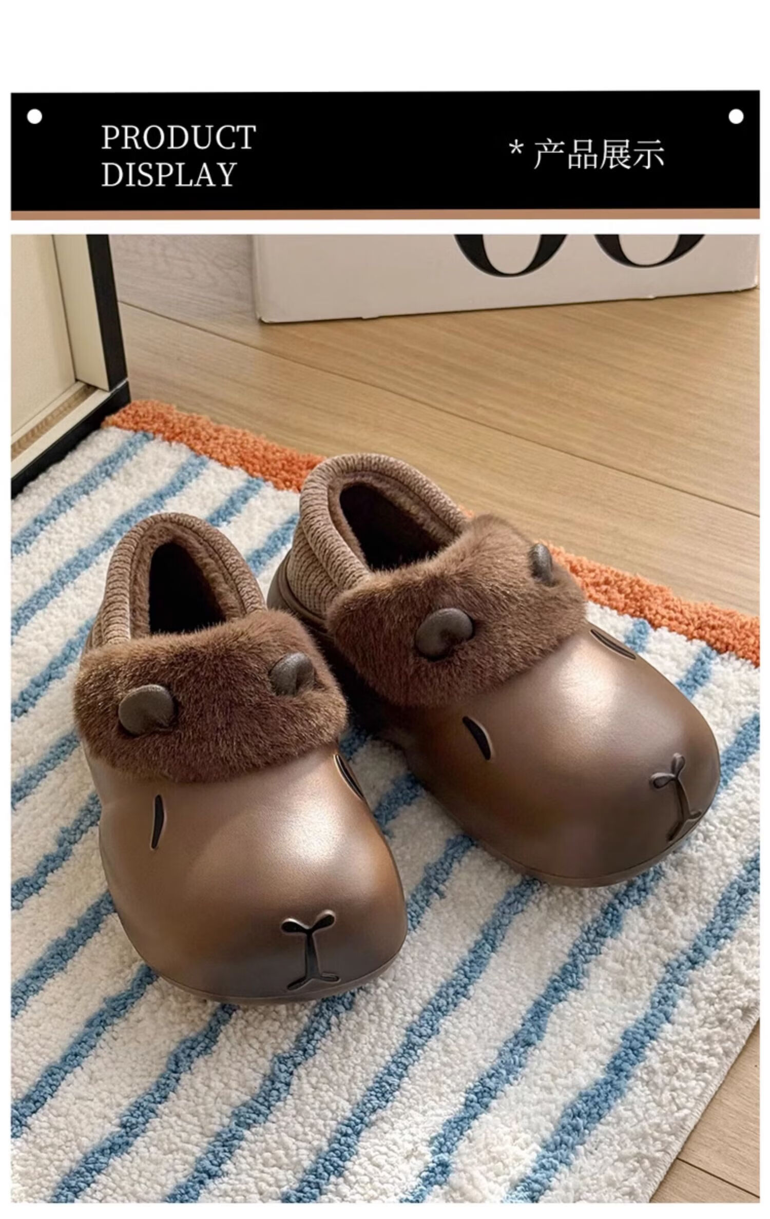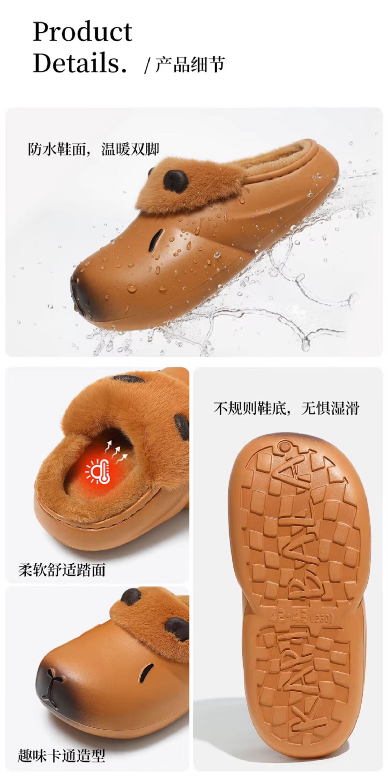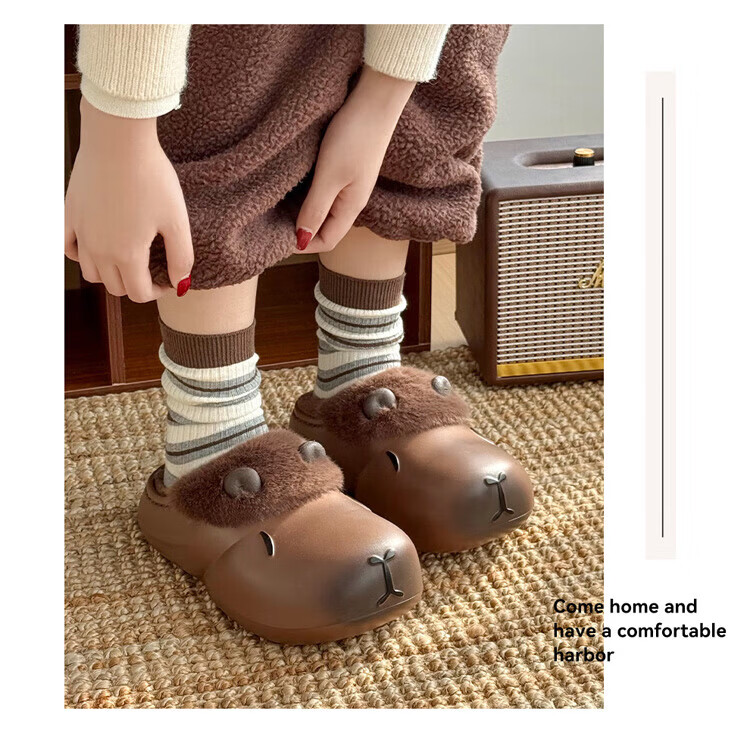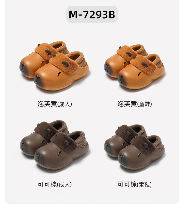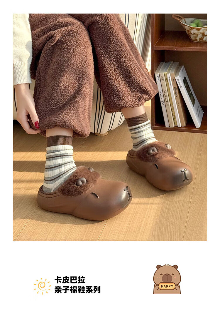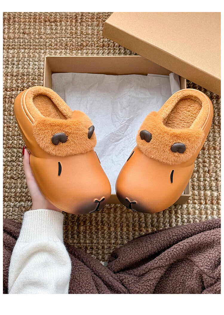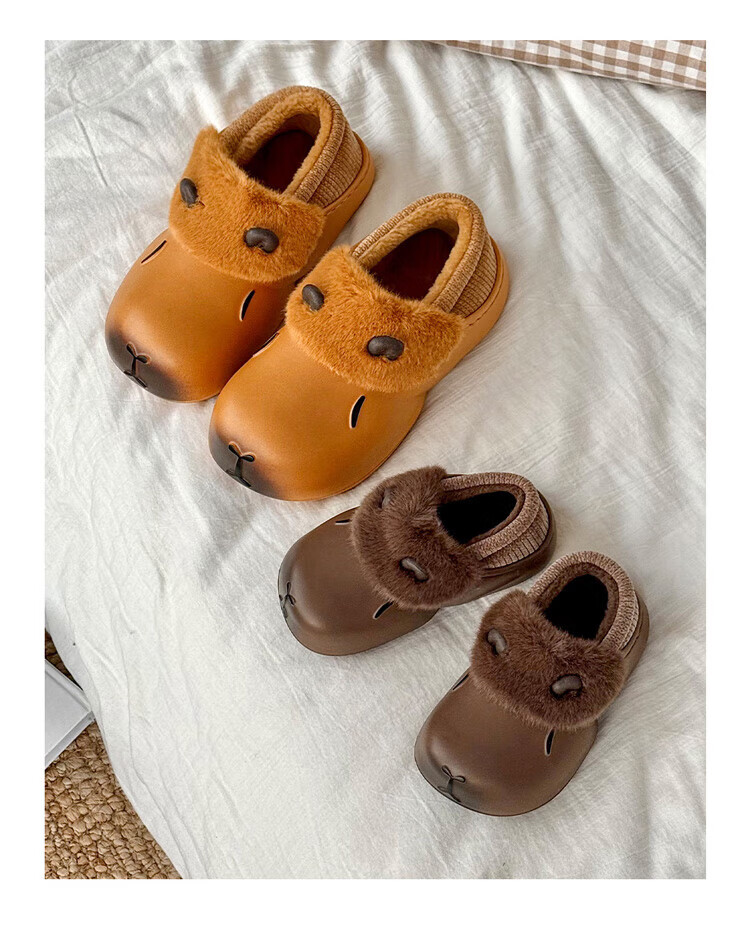 FZT卡通棉拖鞋女款冬季2025新款室内家居包跟卡皮巴拉厚底防水棉鞋女 泡芙黄 36-37 适合35-36