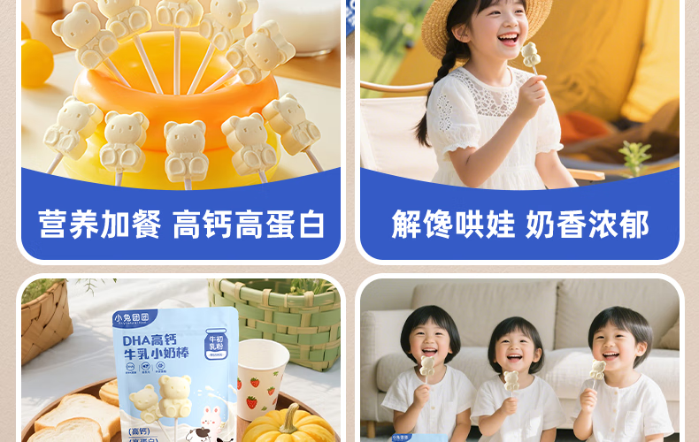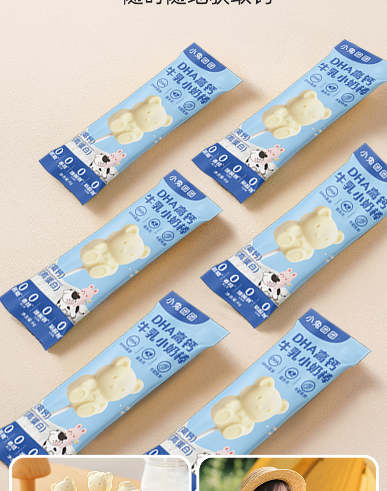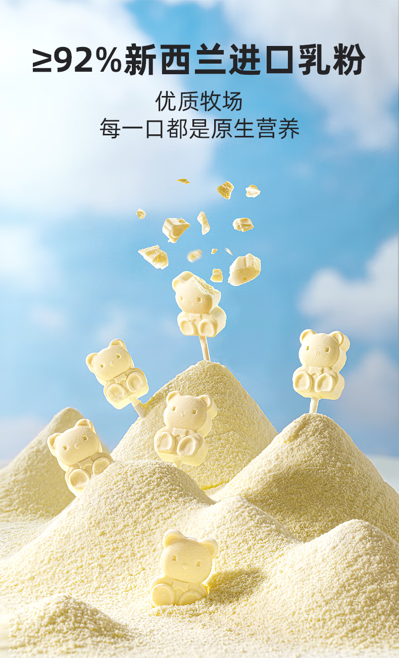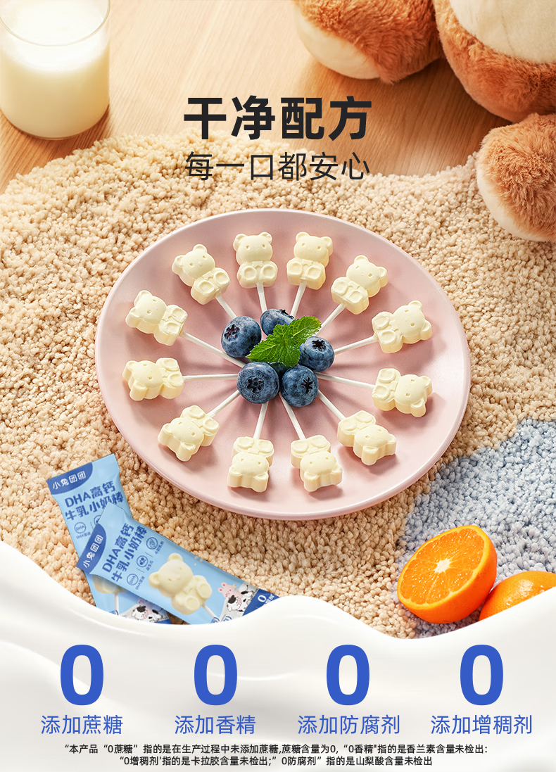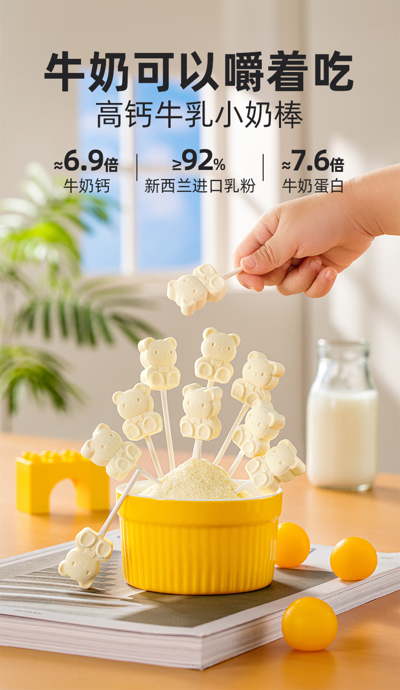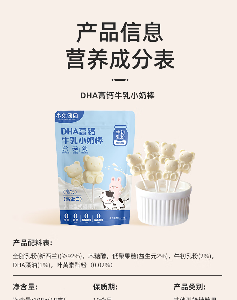 布拉粉小兔团团DHA高钙牛乳小奶棒无添加白砂糖新西兰牛初乳粉棒棒糖果 1袋