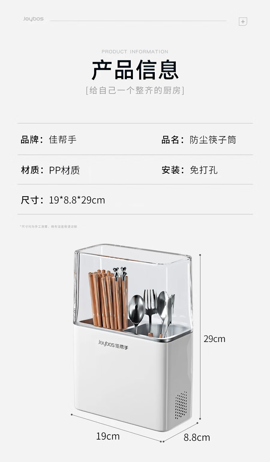 佳帮手筷子收纳盒壁挂筷筒置物架厨房带盖防尘筷篓家用筷子勺子沥水筷笼