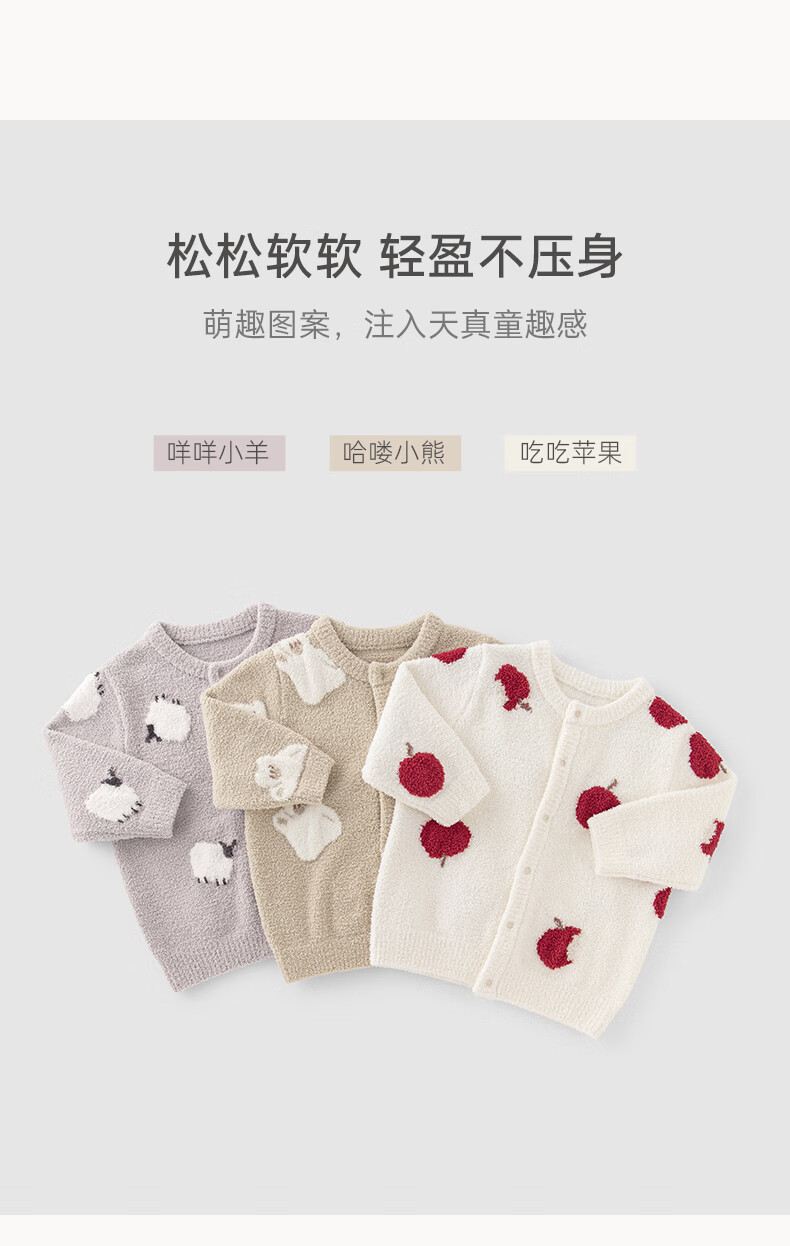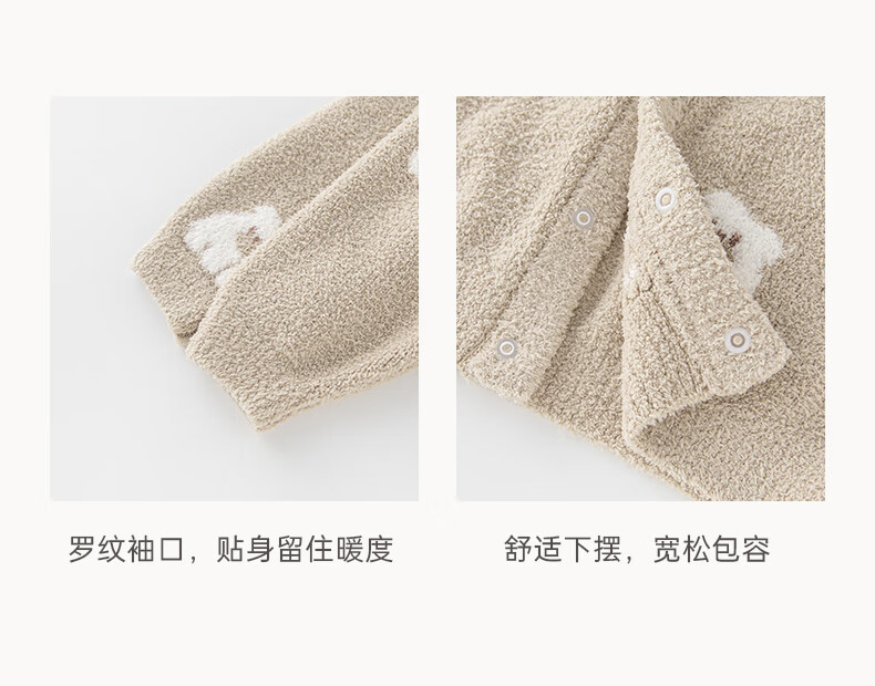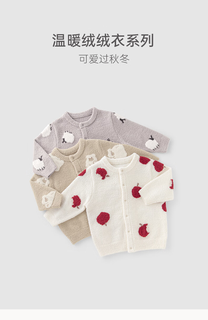 乖奇熊【半边绒】男女童外套秋冬季宝宝保暖长袖上衣服婴幼儿洋气外出服 小白杏吃吃苹果 100