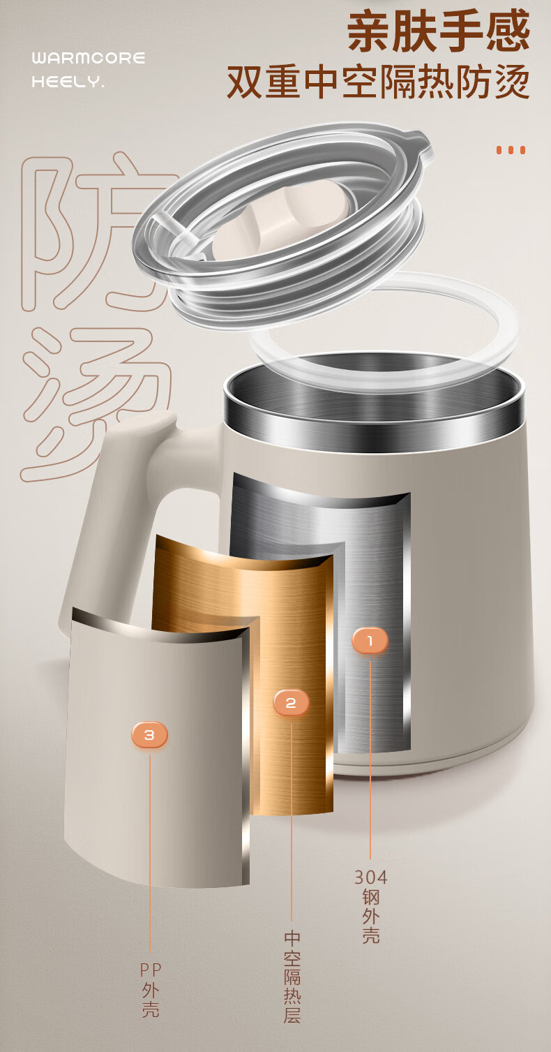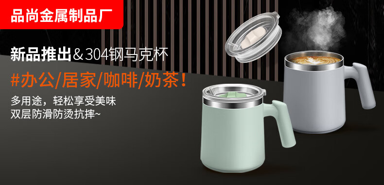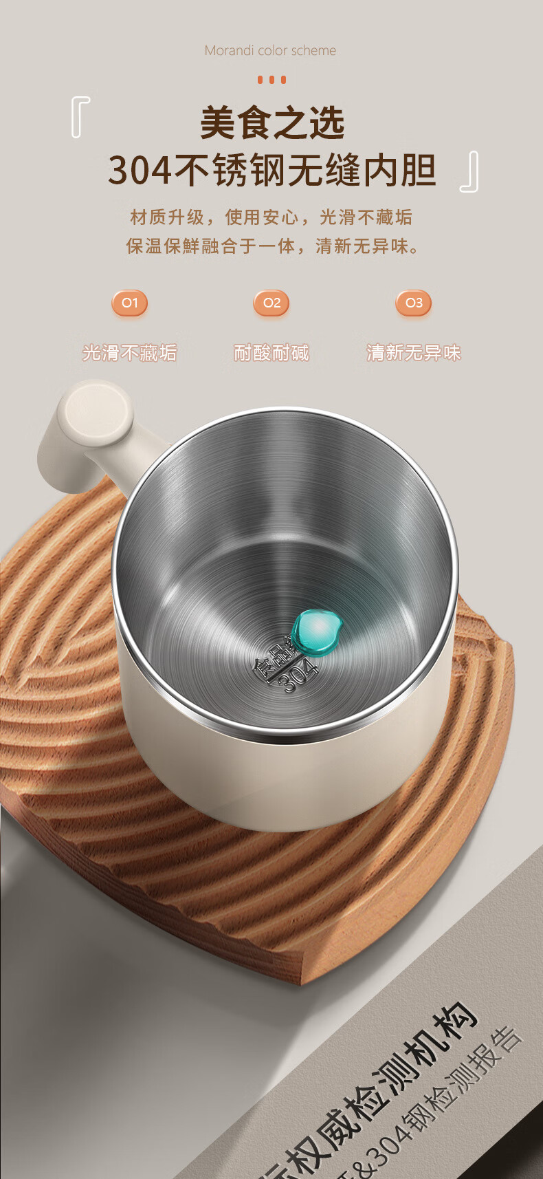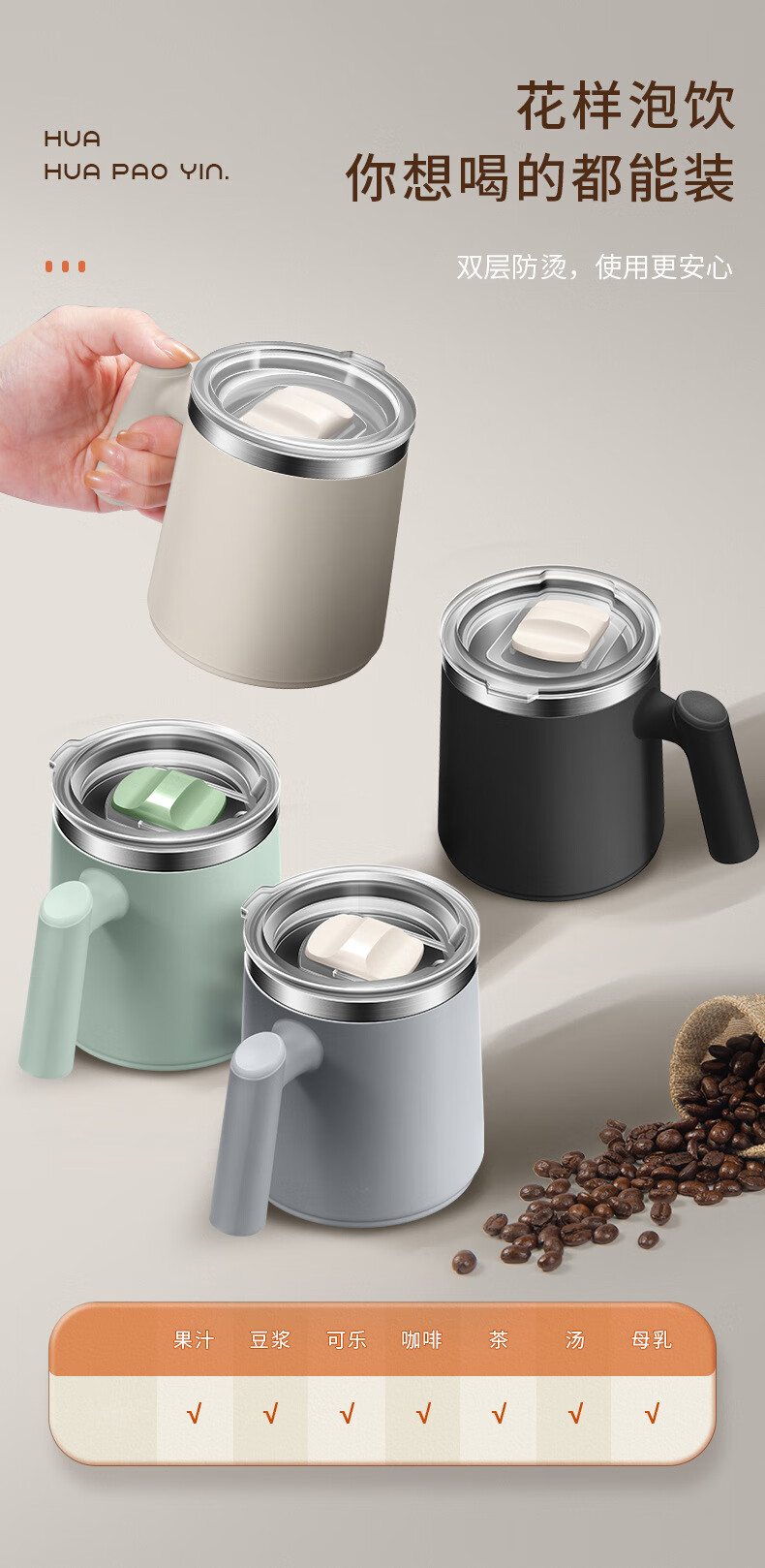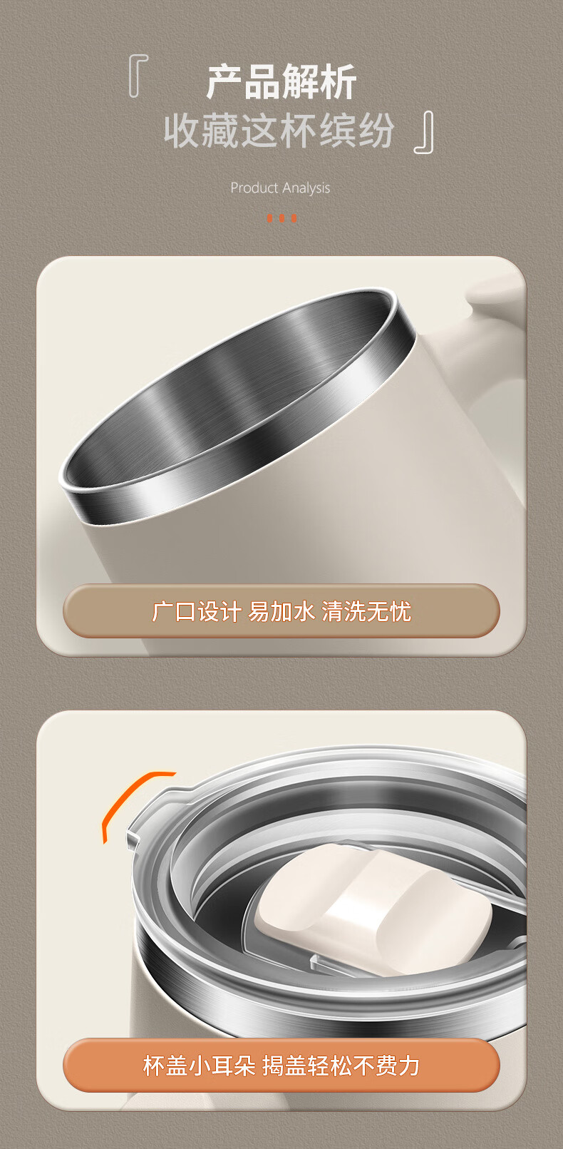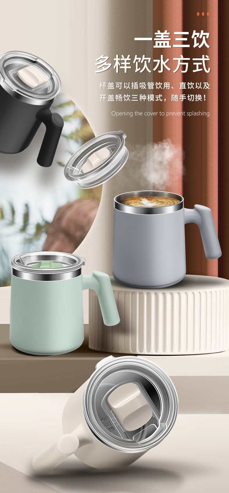 AKL【严选好物】不锈钢西瓜马克杯便携带盖办公室茶杯双层防烫咖啡杯 【米白色-斜身款】双层防烫马克杯 430ml