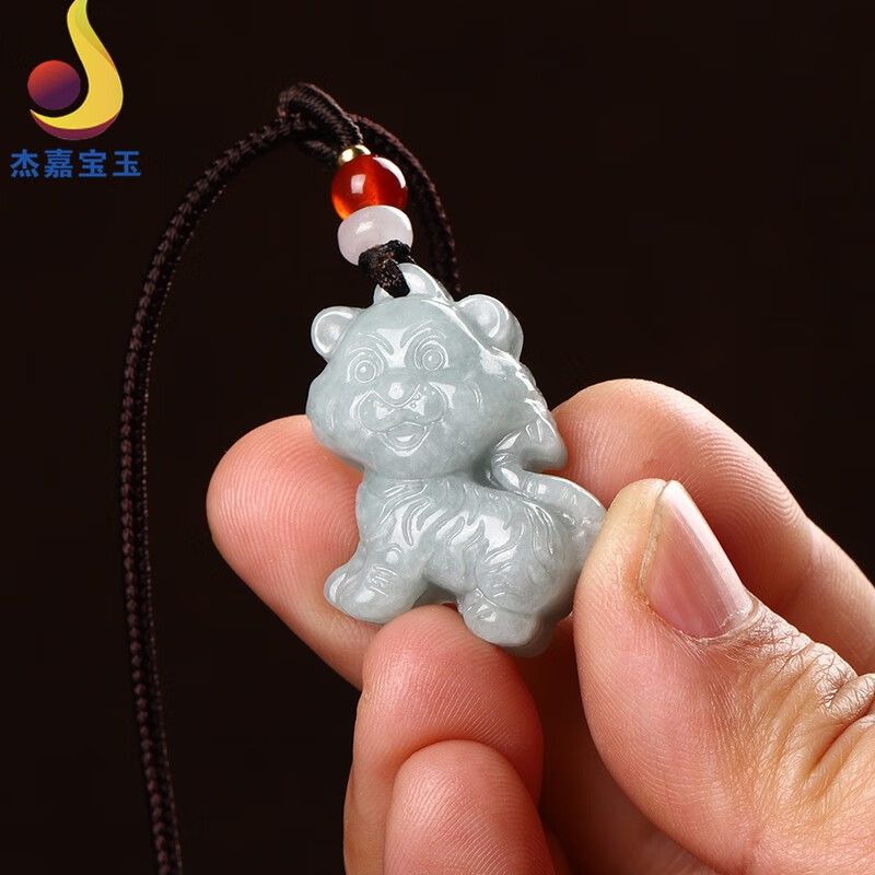 杰嘉宝玉 原创新款真品翡翠生肖虎玉坠男女礼物卡通虎吉祥立体玉吊坠玉石玉挂件玉器配饰带证书免费刻字