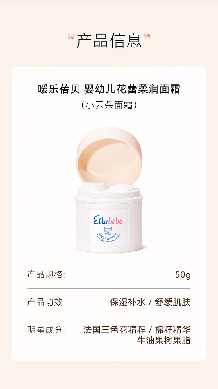 嗳乐蓓贝Ellabebe婴幼儿宝宝小云朵面霜清爽补水滋润舒缓轻薄面霜50g 小云朵面霜50g(旋钮款)