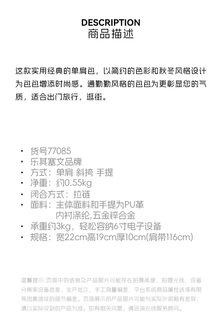 乐其塞文LuckySeven秋冬PU菜篮子手提手拎包斜挎包女生新年礼物通勤 77085 黑色