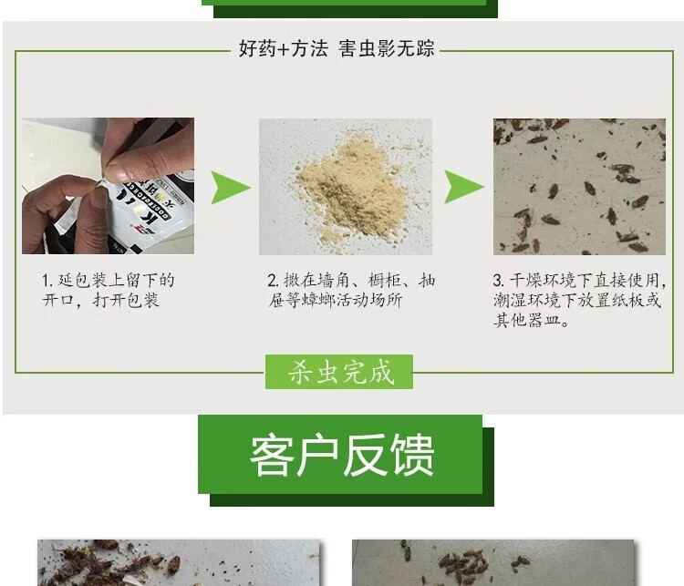 CNDK蟑螂药家用灭蟑螂无毒卧室厨房家用宠物孕妇婴儿室内蟑螂屋一扫光 开袋就死+传染死亡(50袋灭蟑药)