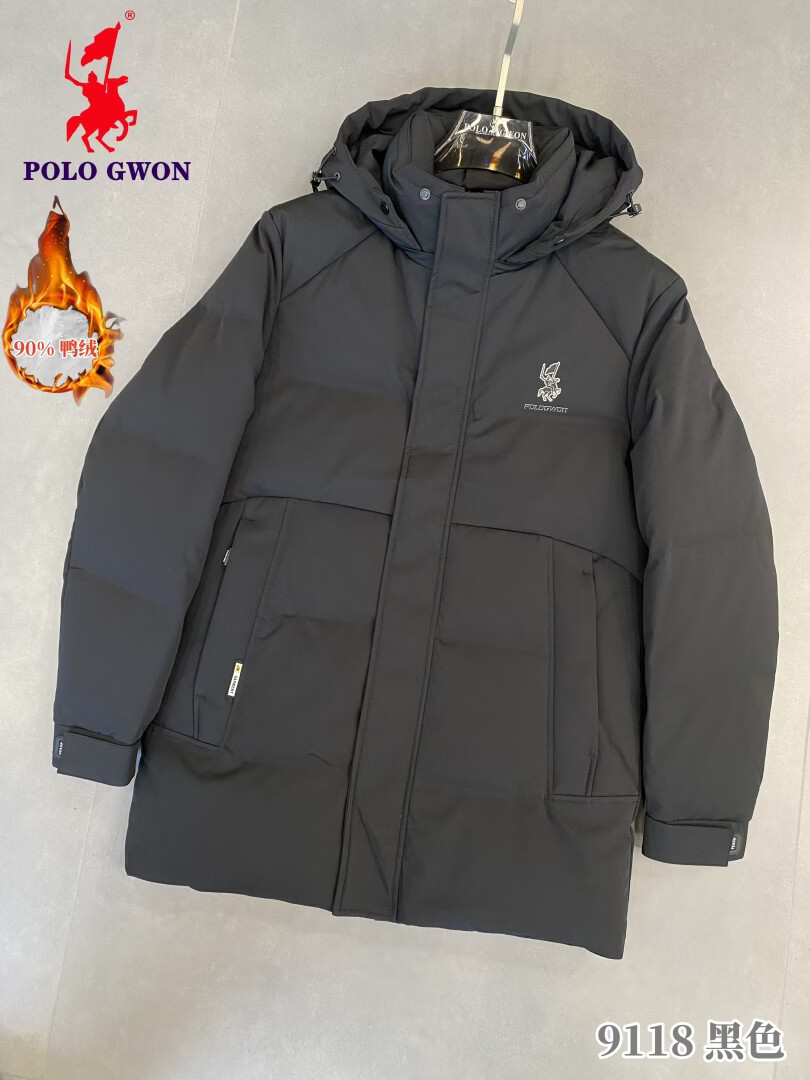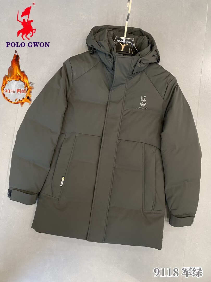 POLOGWON保罗羽绒服男士连帽宽松男休闲时尚鸭绒冬季保暖防寒男装 军绿色 4XL (195)