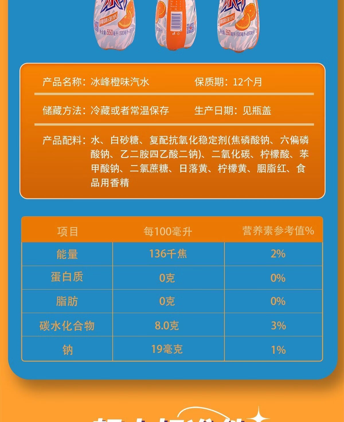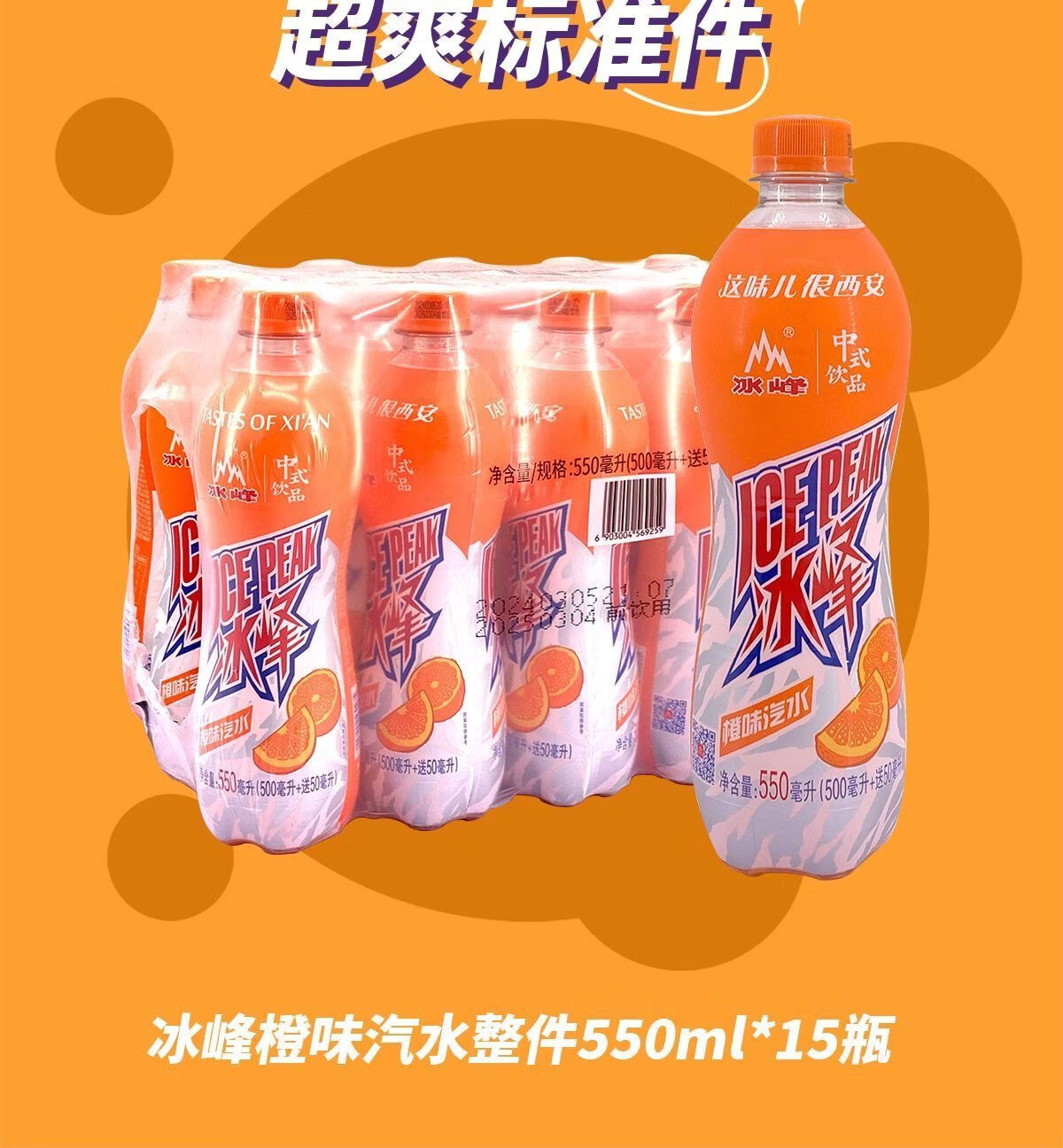 冰峰汽水碳酸饮料西安老汽水中华老字号果味饮品陕西特产 550ml*15 橙味