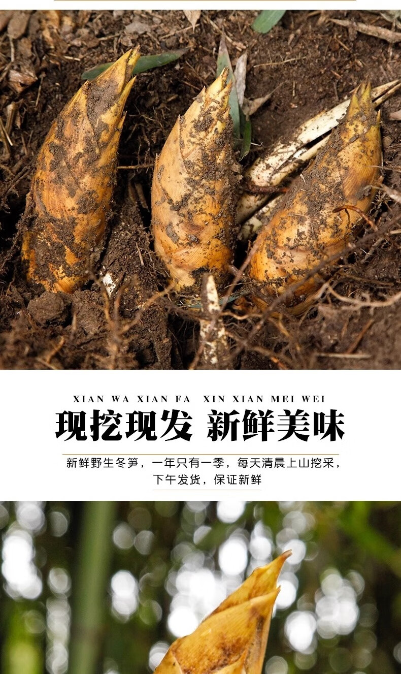 dengdaiziran【顺丰冷链】杭州发货冬笋新鲜笋现挖竹笋正宗高山野生当季两头尖 3斤鲜笋【中号】