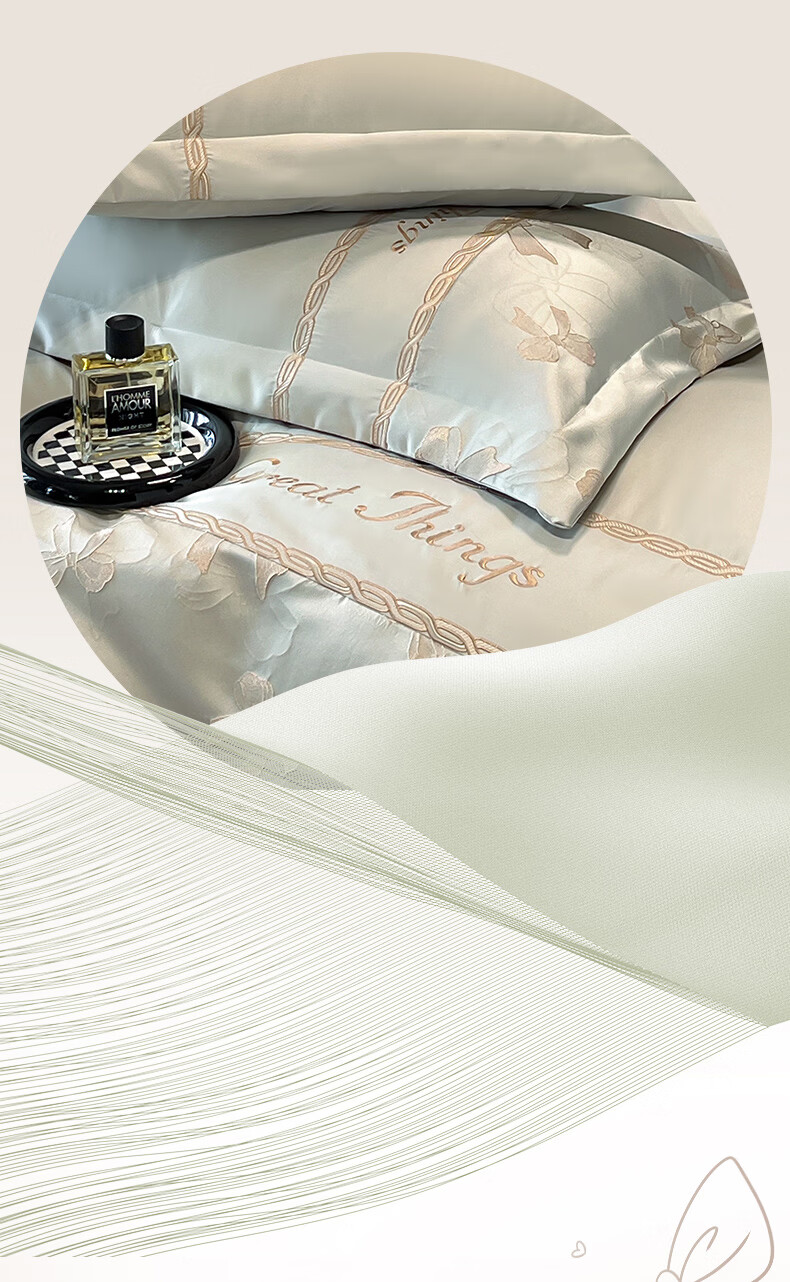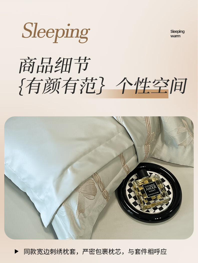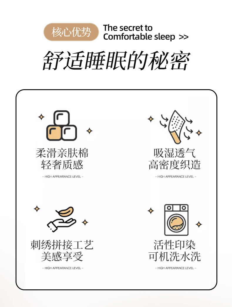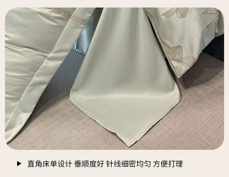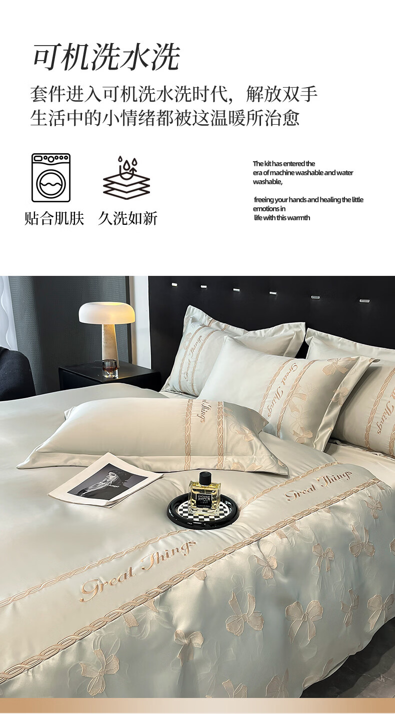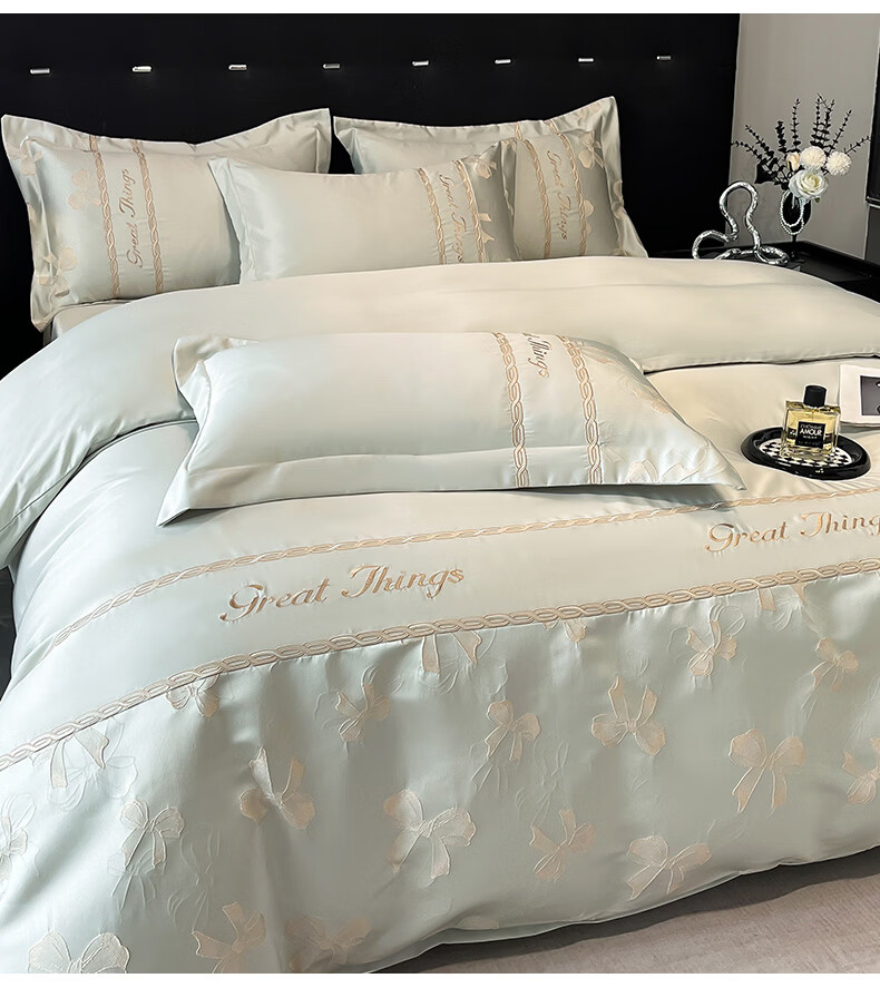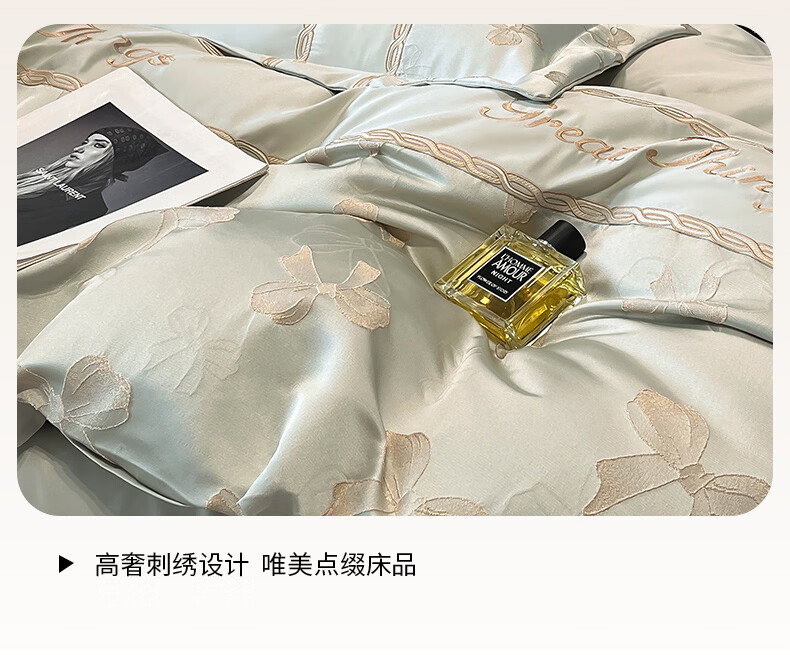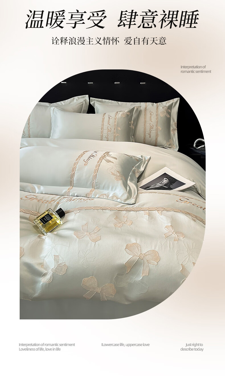 VJE轻奢裸睡床上四件套亲肤棉刺绣拼接床单被套金丝提花床上用品4件 情结-繁星蓝 四件套1.5m 床单款 (被套200*230cm)