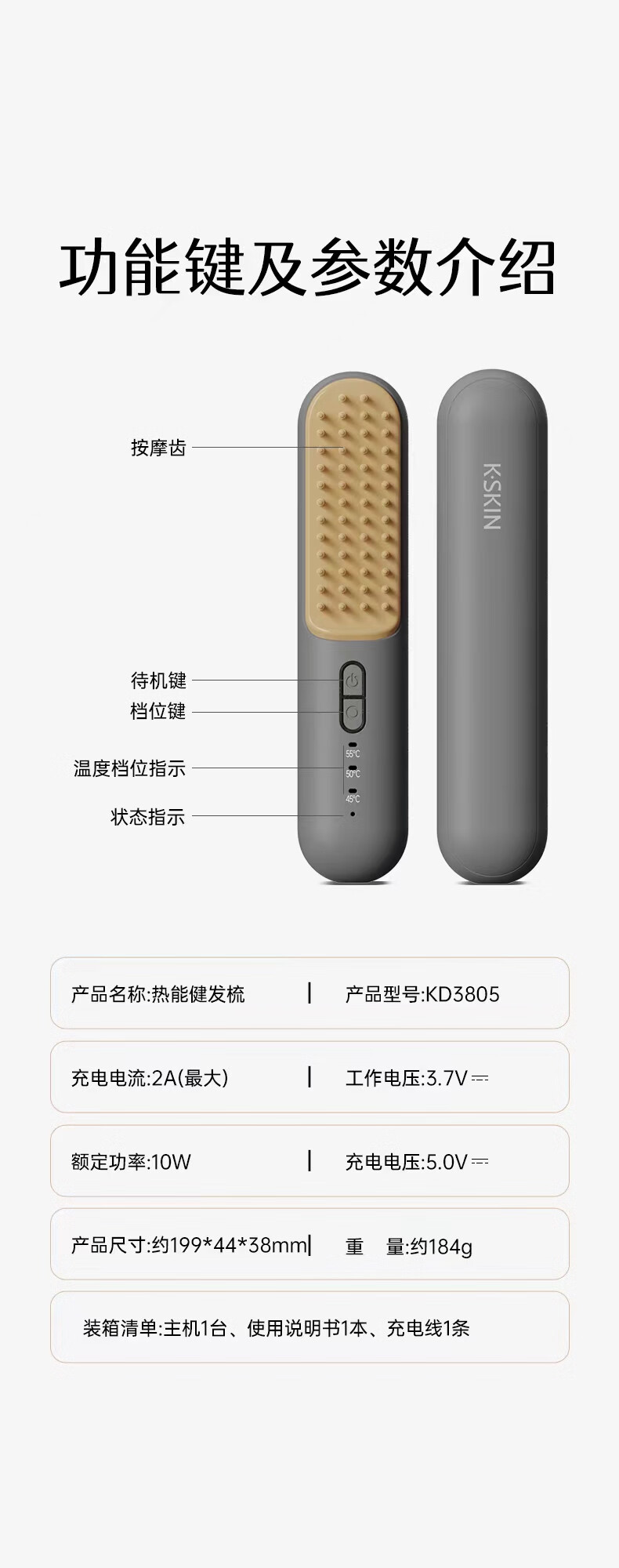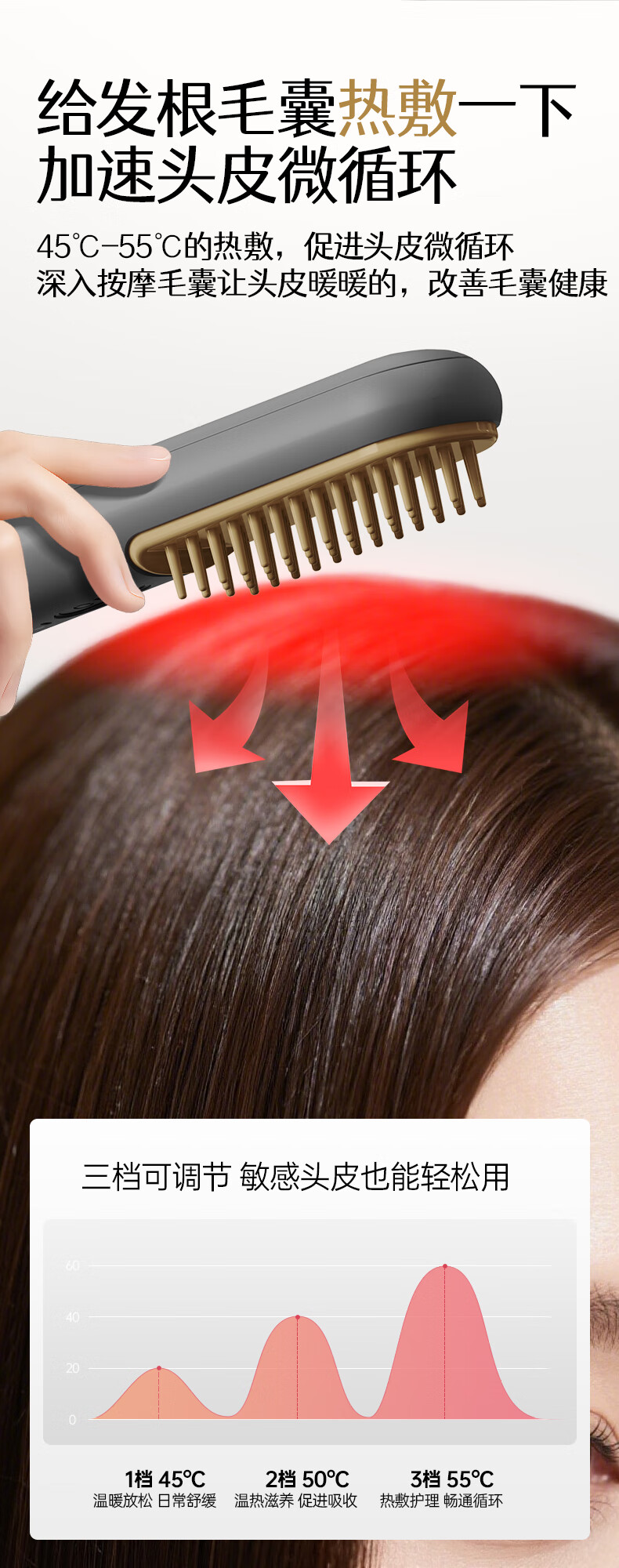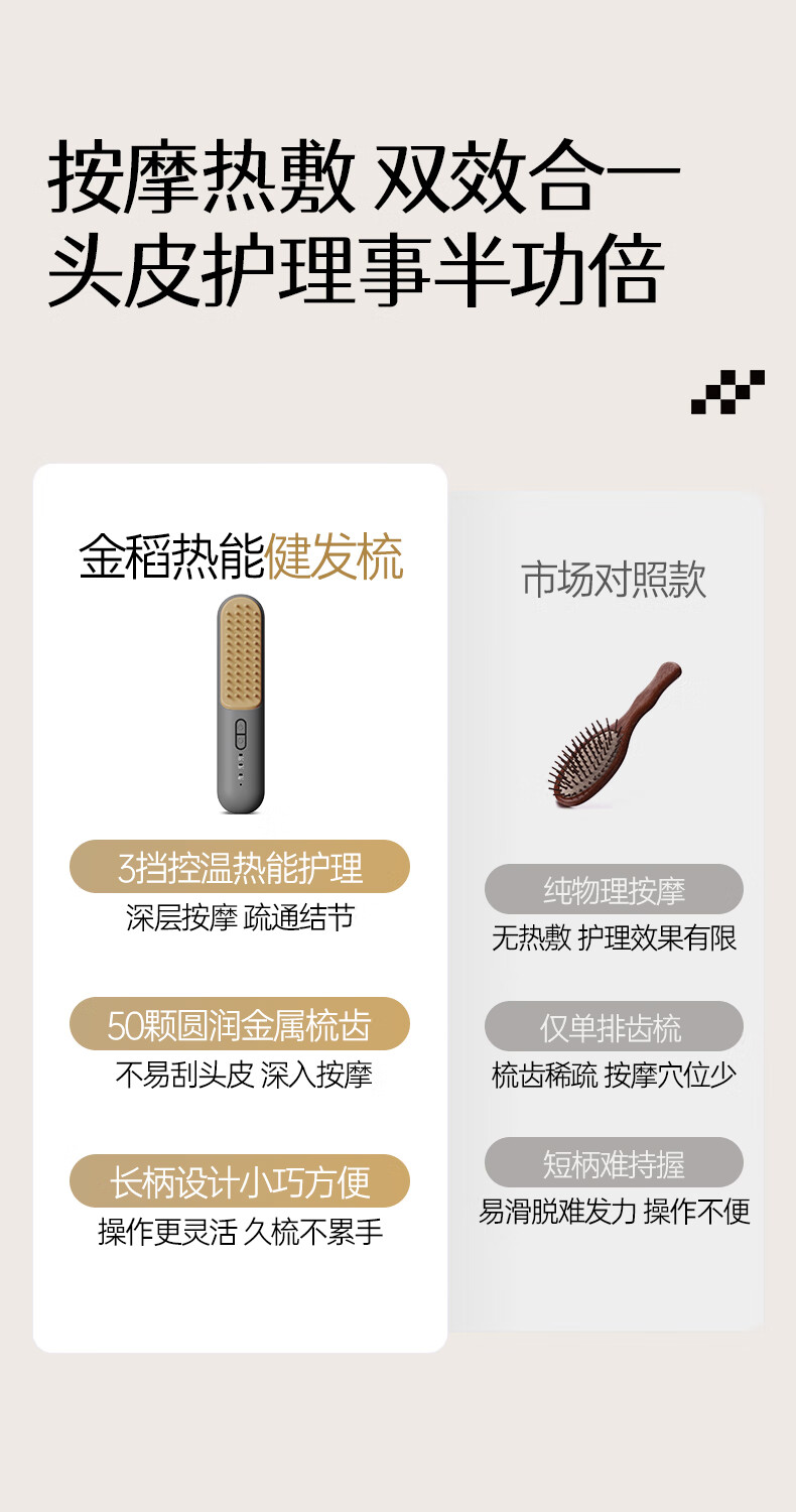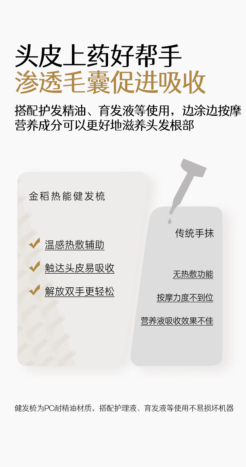 金稻头皮按摩梳热能健发梳头皮护理仪头部疏通按摩器电动 金稻全身可用按摩经络梳【送礼首选】