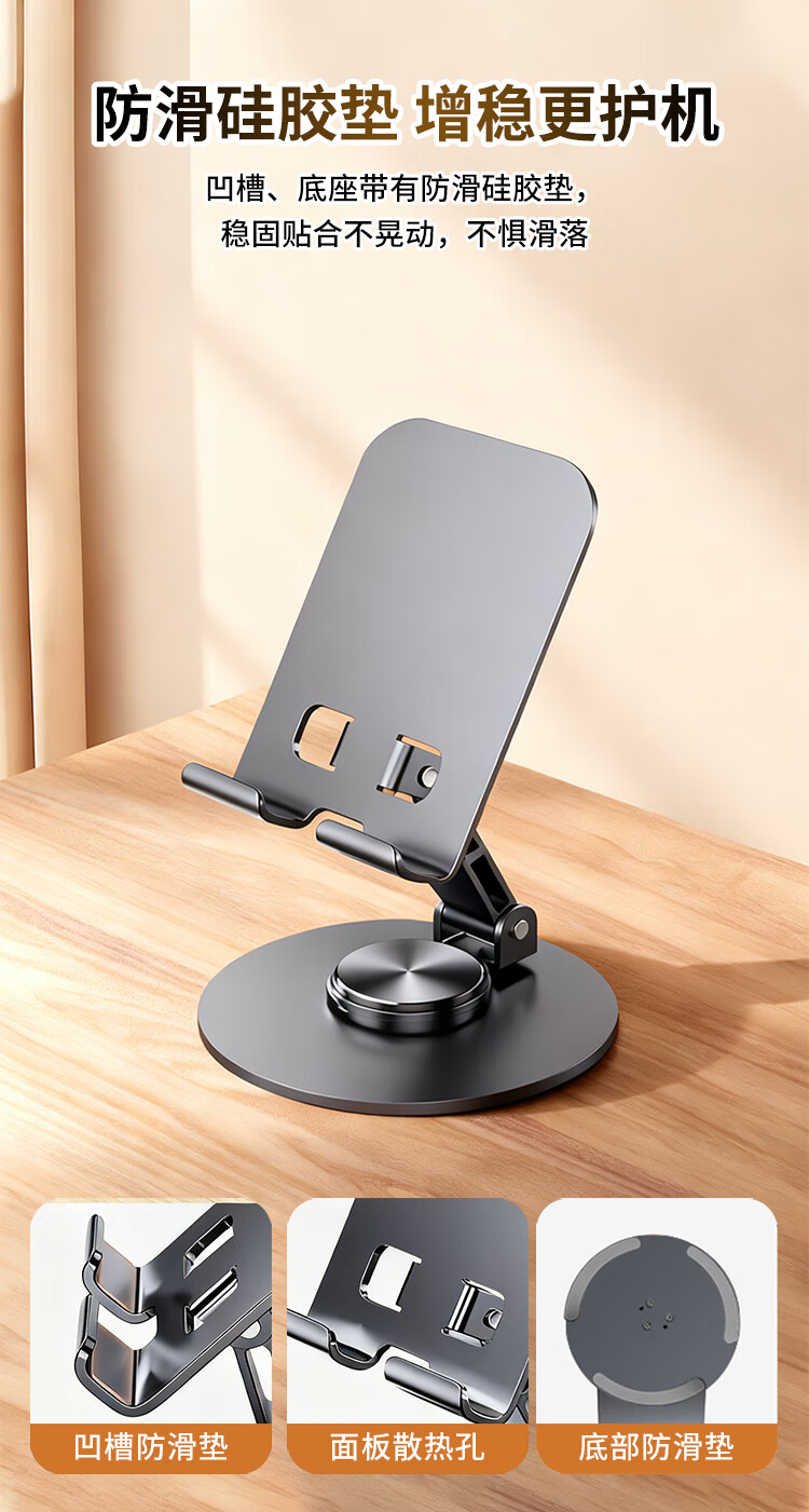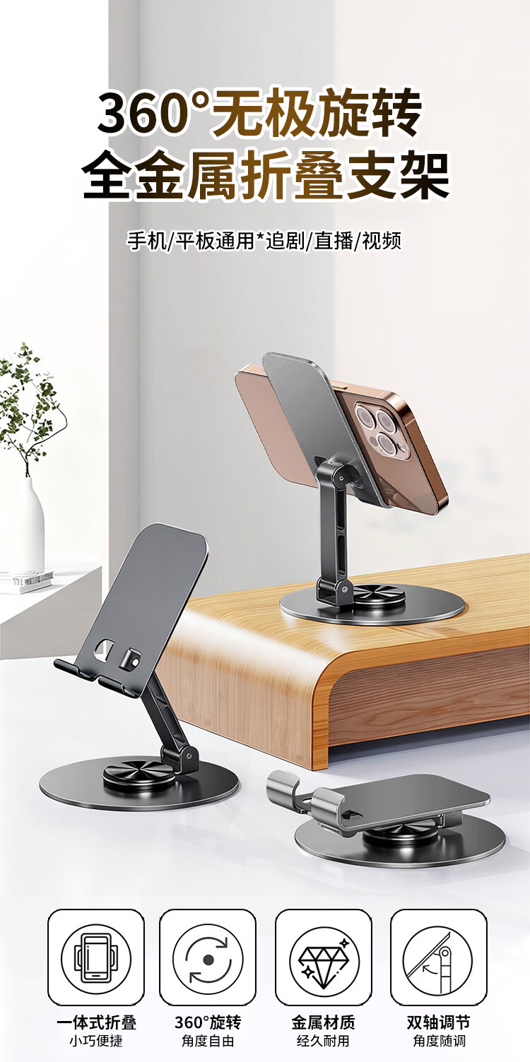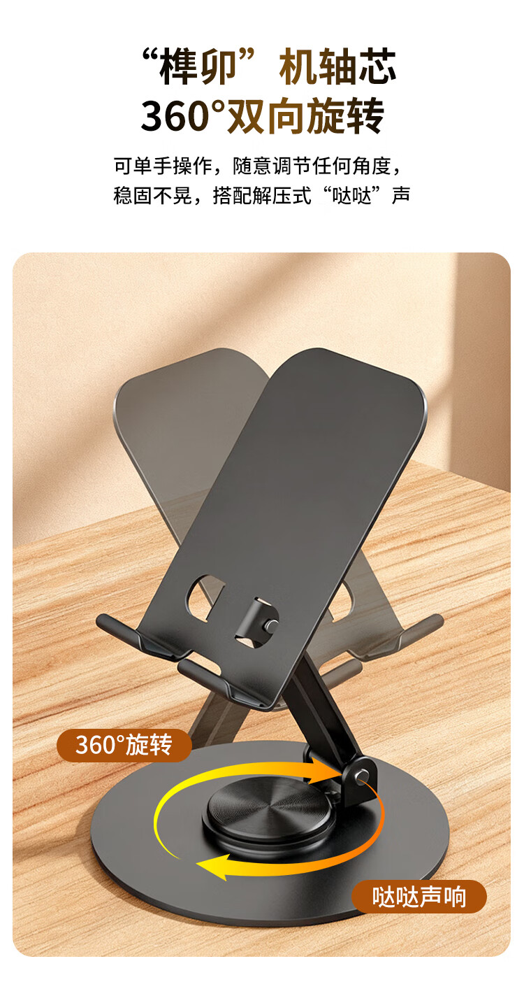 BZBC【升级碳钢板】手机支架平板iPad桌面支架360度旋转可折叠直播手机架拍摄拍照办公多功能支撑架